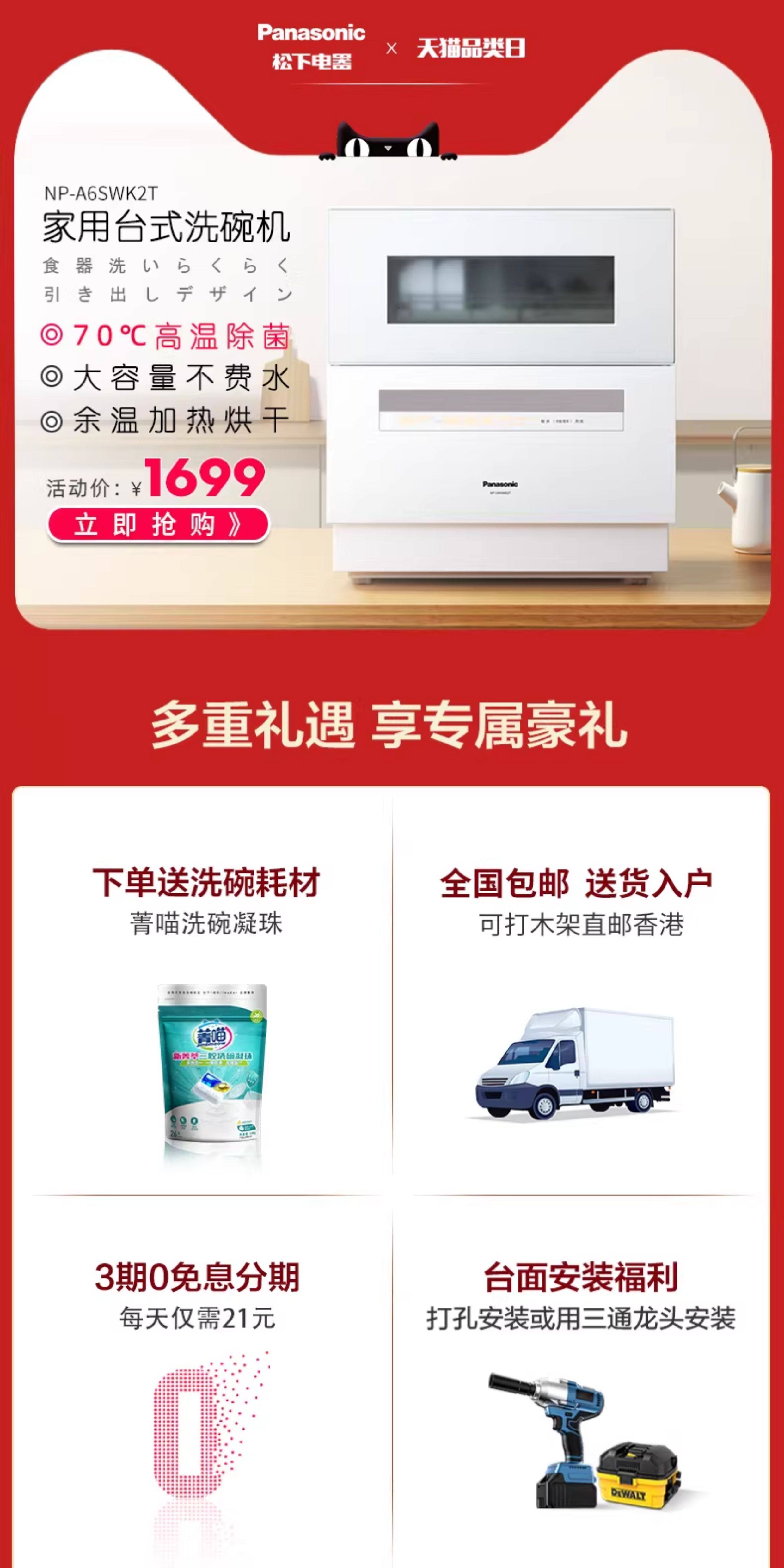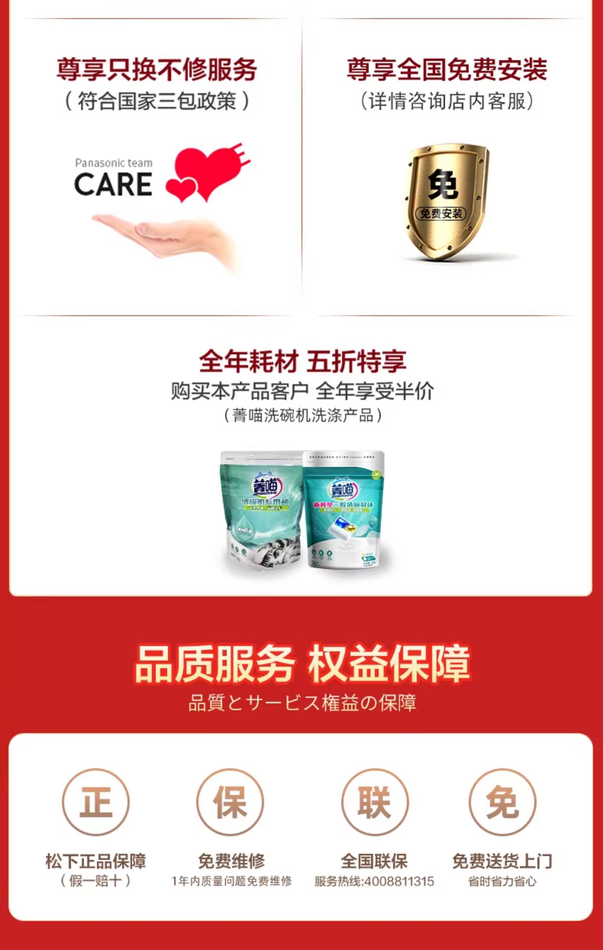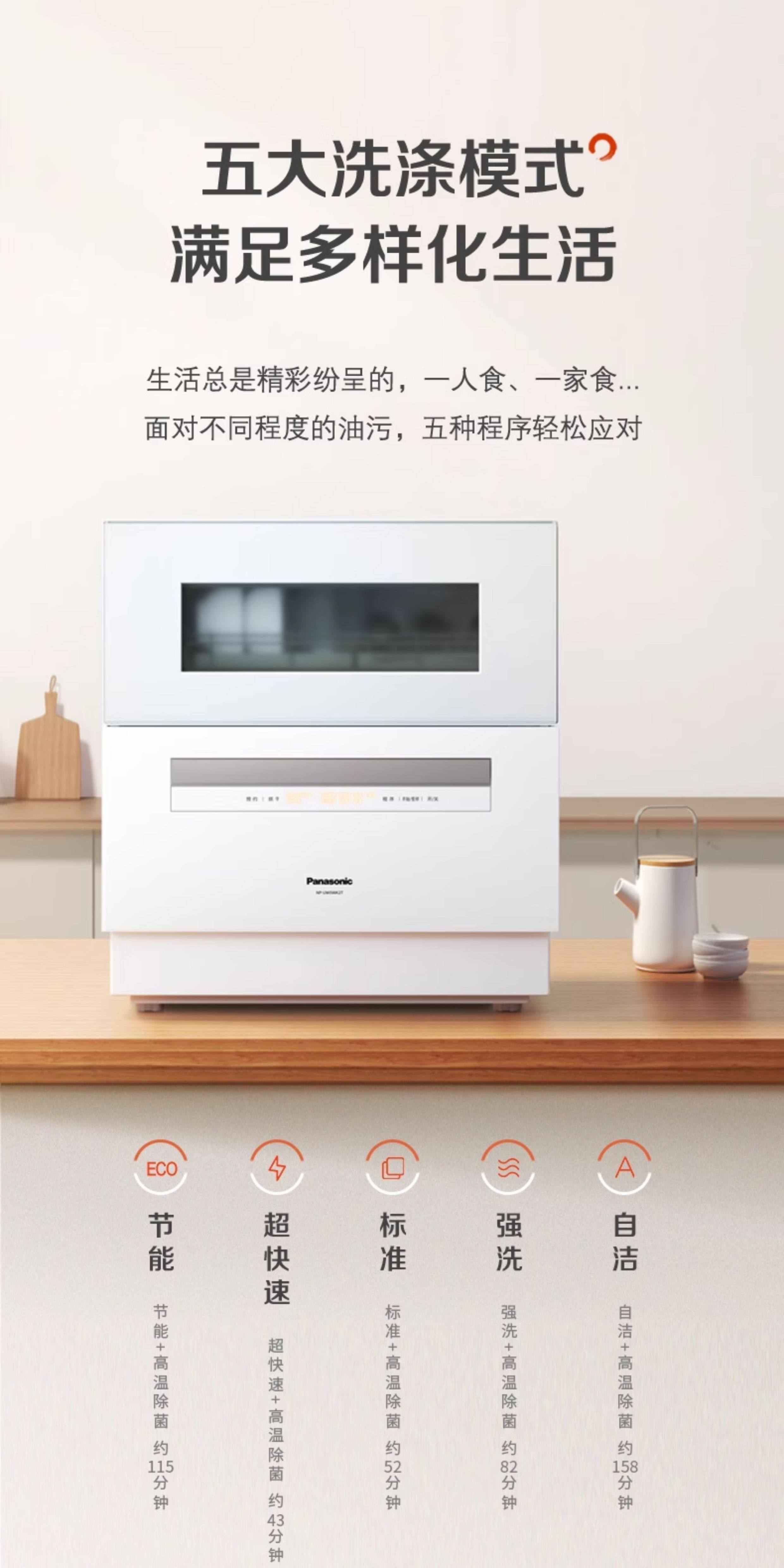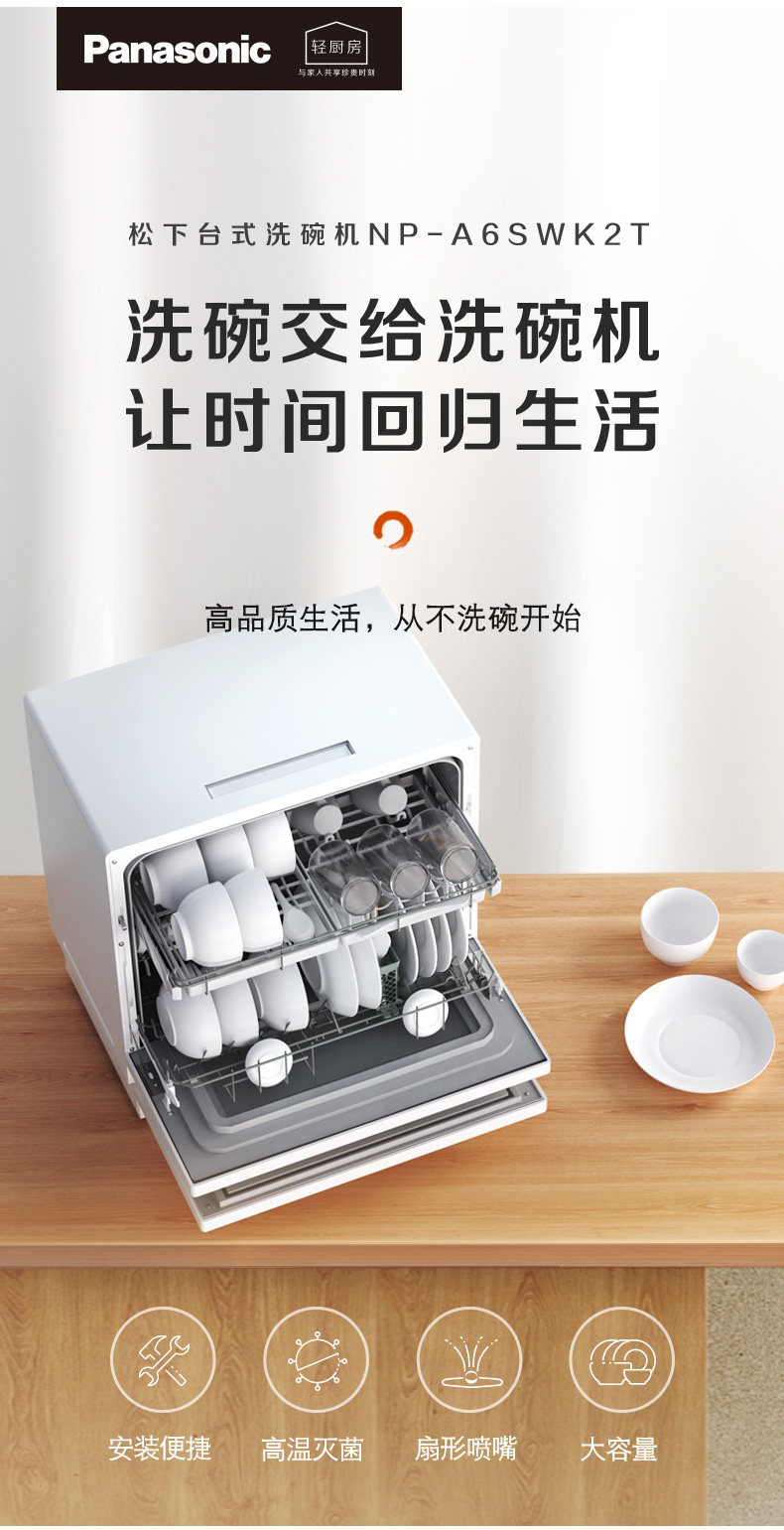 Panasonic Dishwasher Np-A6Swk2T Sterilization Household 5-Set Small Fully Automatic Installation-Free High-Temperature Washing Countertop Model
