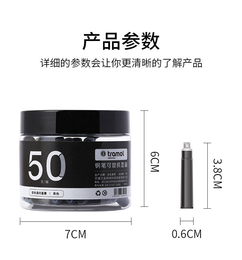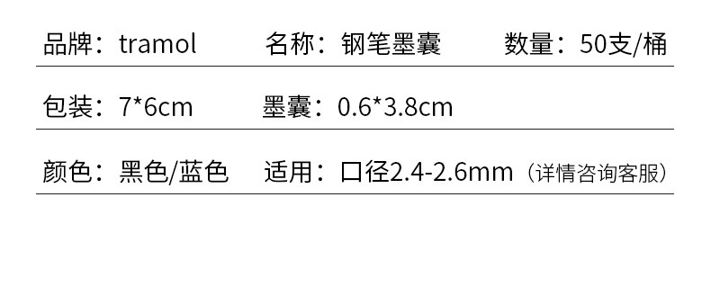 Tramol Fountain Pen Refill Ink Cartridges European Standard 2.4mm Universal Blue and Black Ink Cartridges Fountain Pen Universal Ink Cartridges