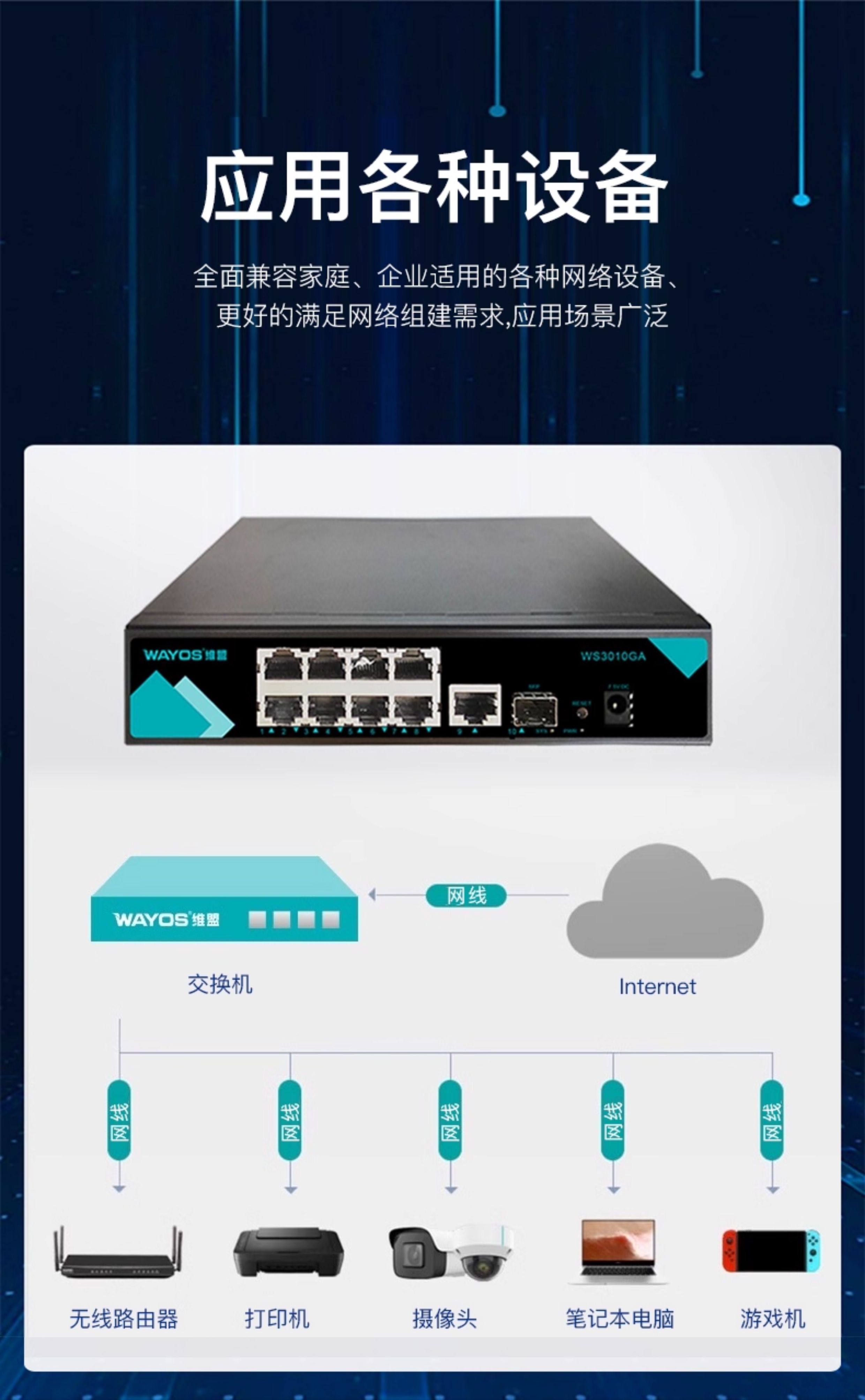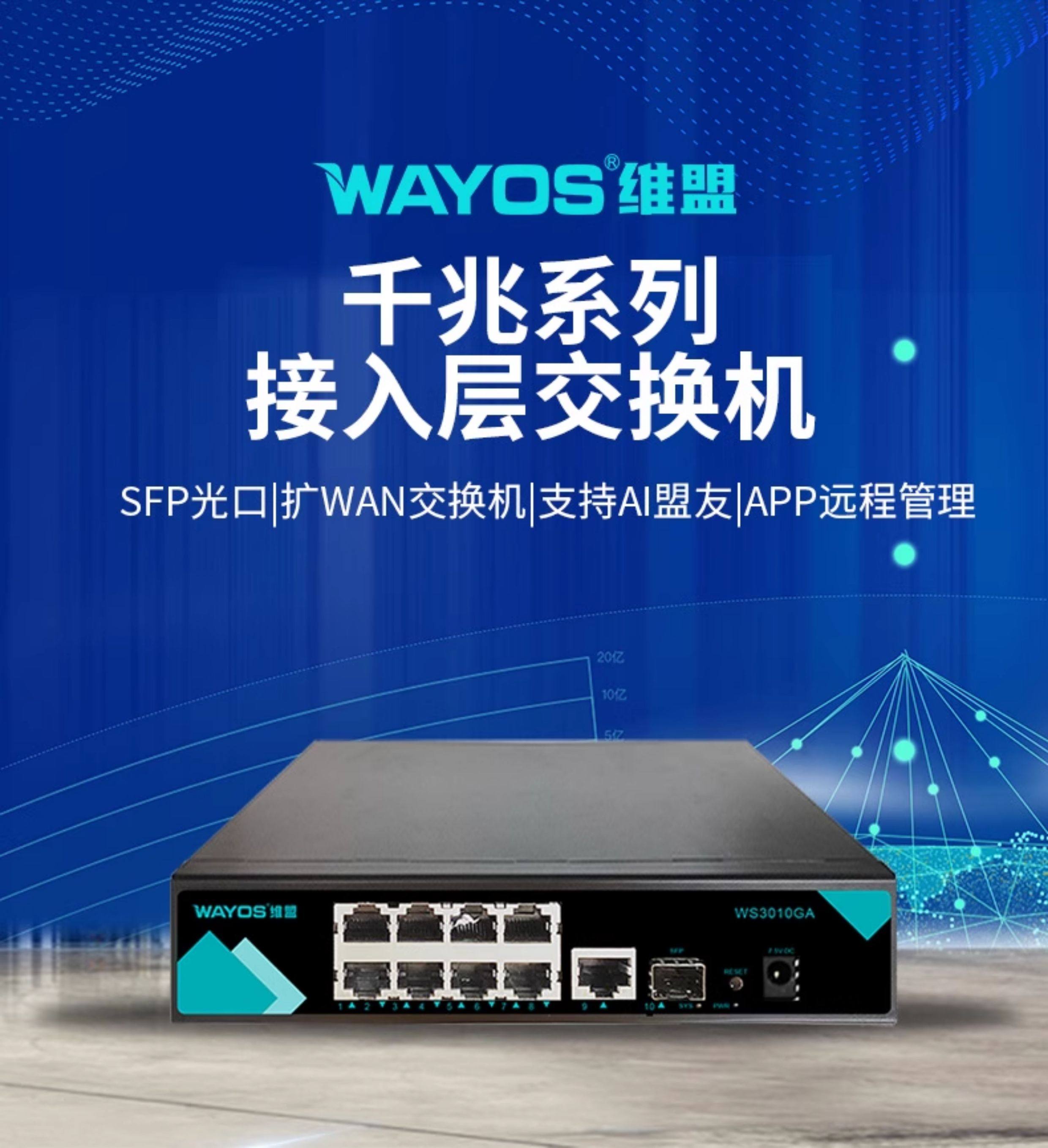 Wayos Ws3010Ga Cloud Switch 10-Port Full Gigabit Switch 8-Port Gigabit 1-Port Gigabit Sfp Optical Port/1-Port Gigabit Rj45 Port Supports Ia Ally Remote App Management