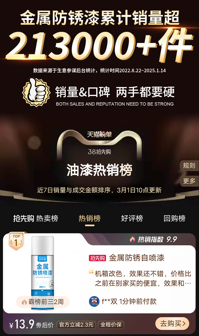 | Color Classification | ❤️Buy Three Bottles or More and Get a Free Application Spray Gun.❤️Contact Customer Service for Multiple Bottles to Enjoy a Better Price.,[Adhesion Enhanced Version] Transparent Varnish [Protect Paint Surface],[Adhesion Enhanced Model] White [Anti-Corrosion and Anti-Rust],[Adhesion Enhanced Model] Pearl White [Anti-Corrosion and Anti-Rust],[Adhesion Enhanced Model] Black [Anti-Corrosion and Anti-Rust],[Adhesion Enhanced Model] Matte Black [Anti-Corrosion and Anti-Rust],[Adhesion Enhanced Model] Light Gray [Anti-Corrosion and Anti-Rust],[Adhesion Enhanced Model] Silver [Anti-Corrosion and Anti-Rust],[Adhesion Enhanced Model] Flash Silver [Anti-Corrosion and Anti-Rust],[Adhesion Enhanced Model] Silver Gray [Anti-Corrosion and Anti-Rust],[Adhesion Enhanced Version] Chrome Plated [Anti-Corrosion and Anti-Rust],[Adhesion Enhanced Version] Galvanized [Anti-Corrosion and Anti-Rust],[Adhesion Enhanced Version] Medium Yellow [Anti-Corrosion and Anti-Rust],[Adhesion Enhanced Version] Bright Red [Anti-Corrosion and Anti-Rust],[Adhesion Enhanced Version] Matte Varnish [Protect Paint Surface],[Adhesion Enhanced Version] Matte White [Anti-Corrosion and Anti-Rust],[Adhesion Enhanced Version] Milky White [Anti-Corrosion and Anti-Rust],[Adhesion Enhanced Version] Matte Gray White [Anti-Corrosion and Anti-Rust],[Adhesion Enhanced Model] Matte Black [Anti-Corrosion and Anti-Rust],[Adhesion Enhanced Model] Dark Gray [Anti-Corrosion and Anti-Rust],[Adhesion Enhanced Model] Sky Blue [Anti-Corrosion and Anti-Rust],[Adhesion Enhanced Model] Liberation Blue [Anti-Corrosion and Anti-Rust],[Adhesion Enhanced Version] Red Brown [Anti-Corrosion and Anti-Rust],[Adhesion Enhanced Model] Rust Red [Anti-Corrosion and Anti-Rust],[Adhesion Enhanced Model] Engineering Orange [Anti-Corrosion and Anti-Rust],[Adhesion Enhanced Version] Onion Green [Anti-Corrosion and Anti-Rust],Epoxy Primer Matte White [Anti-Corrosion and Anti-Rust],Epoxy Primer Light Gray [Anti-Corrosion and Anti-Rust],Epoxy Primer Dark Gray [Anti-Corrosion and Anti-Rust],Upgraded to High Temperature Resistance 600℃Glossy Black [Anti-Corrosion and Anti-Rust],Upgraded to High Temperature Resistance 600℃Matte Black [Anti-Corrosion and Anti-Rust],Upgraded to High Temperature Resistance 600℃Pearlescent Silver [Anti-Corrosion and Anti-Rust],Upgraded to High Temperature Resistance 800℃Glossy Black [Anti-Corrosion and Anti-Rust],Upgraded to High Temperature Resistance 800℃Matte Black [Anti-Corrosion and Anti-Rust],Upgraded to High Temperature Resistance 800℃Pearlescent Silver [Anti-Corrosion and Anti-Rust],Upgraded to High Temperature Resistance 1200℃Glossy Black [Anti-Corrosion and Anti-Rust],Upgraded to High Temperature Resistance 1200℃Matte Black [Anti-Corrosion and Anti-Rust],Upgraded to High Temperature Resistance 1200℃Pearlescent Silver [Anti-Corrosion and Anti-Rust],Paint Remover 450ml (Tools Included),Self-Painting Power Spray Gun*1 |