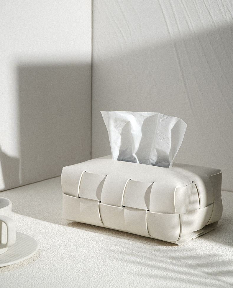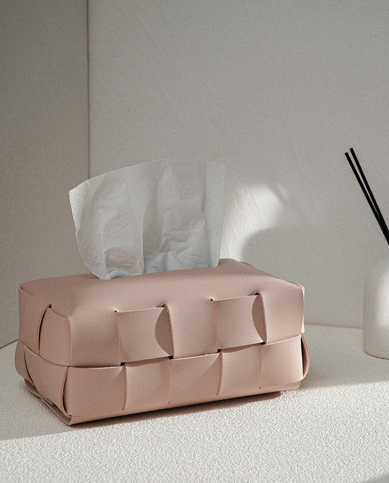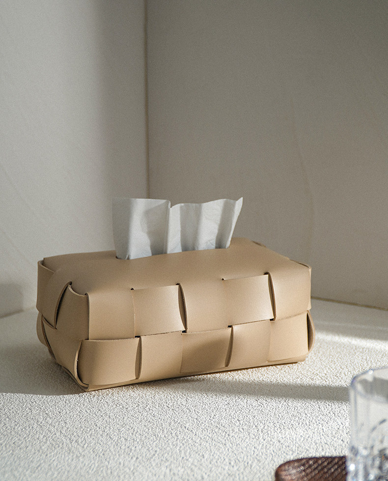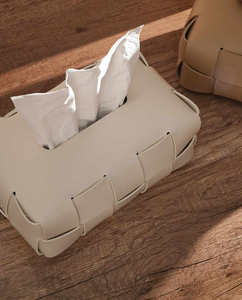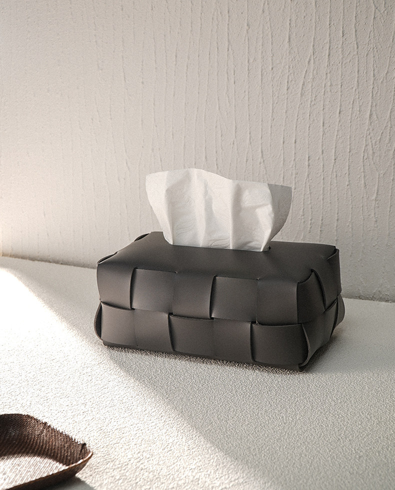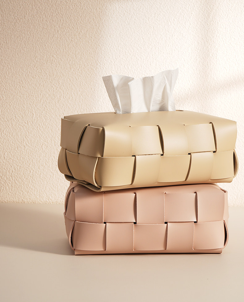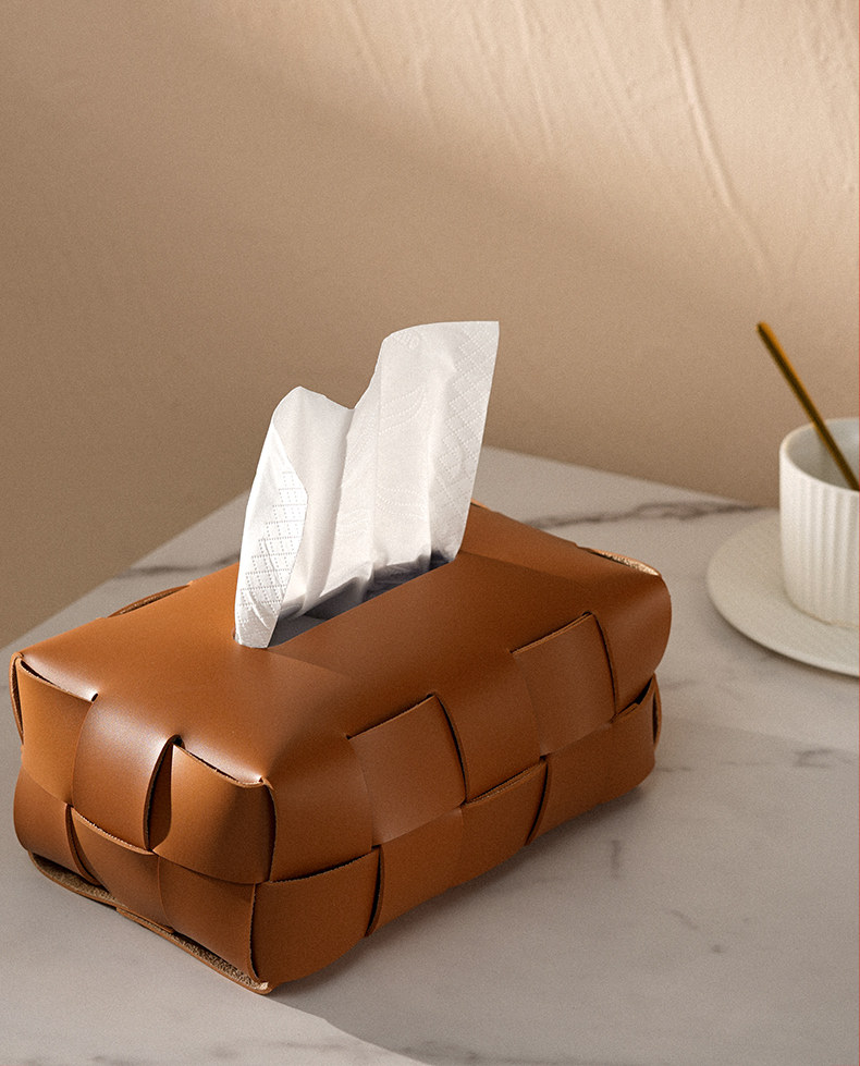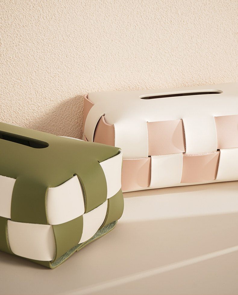 Checkerboard Pattern Light Luxury Woven Leather Tissue Box, High-End Modern Living Room Home Decoration, Creative Car Tissue Box