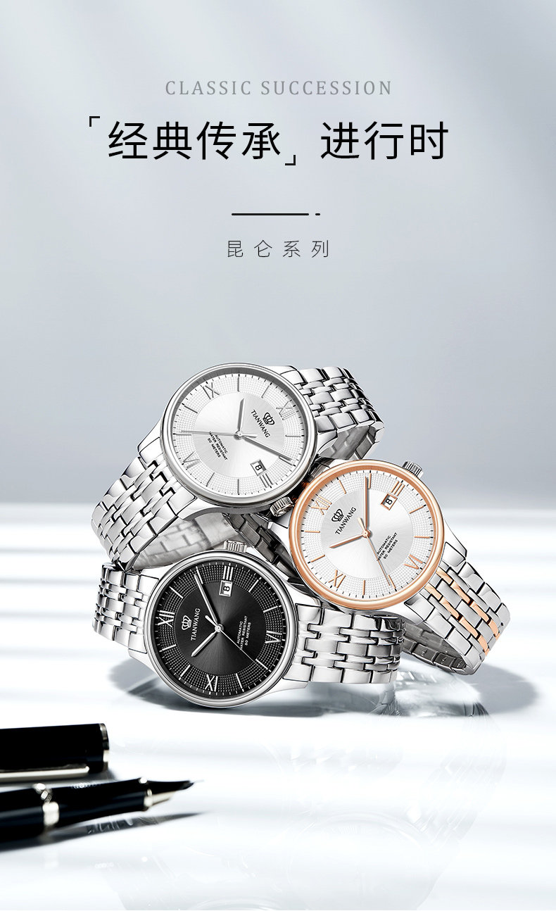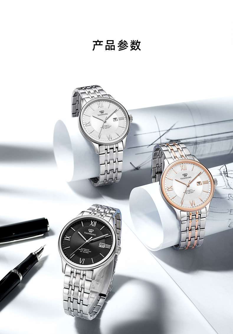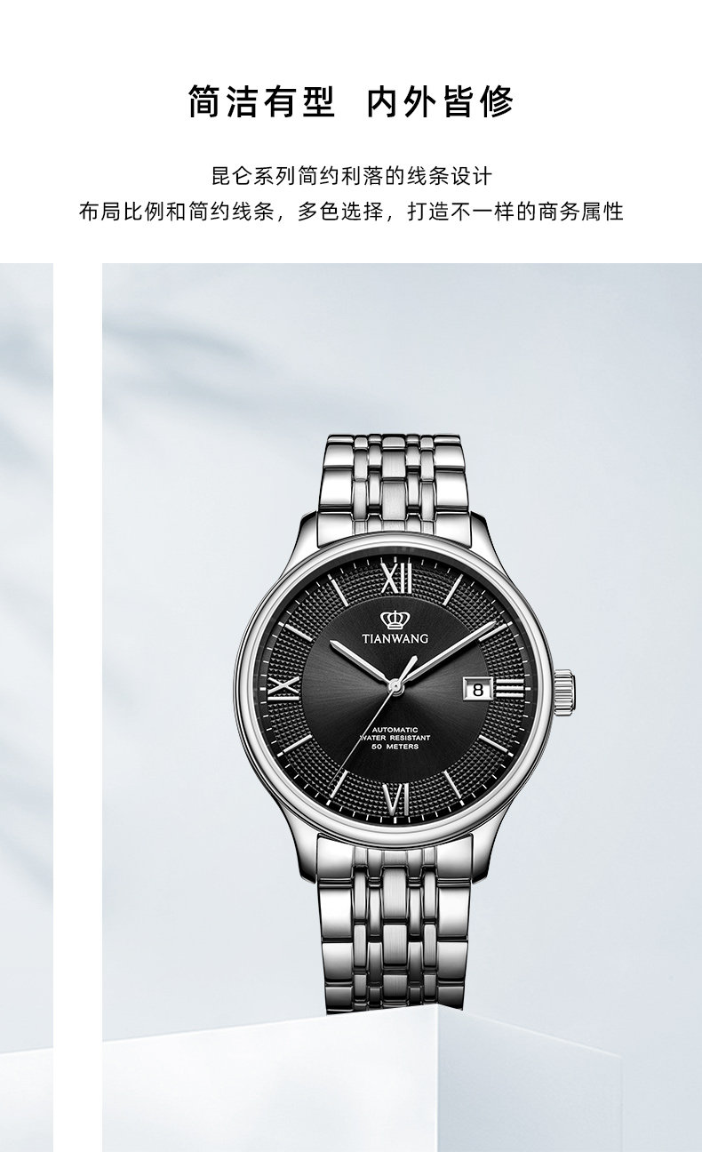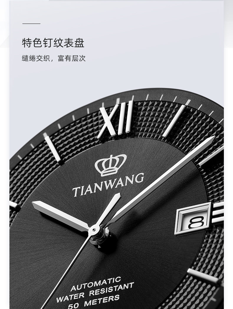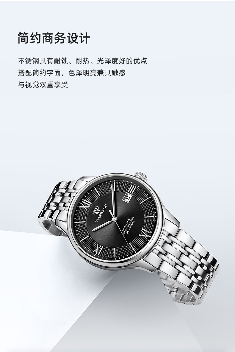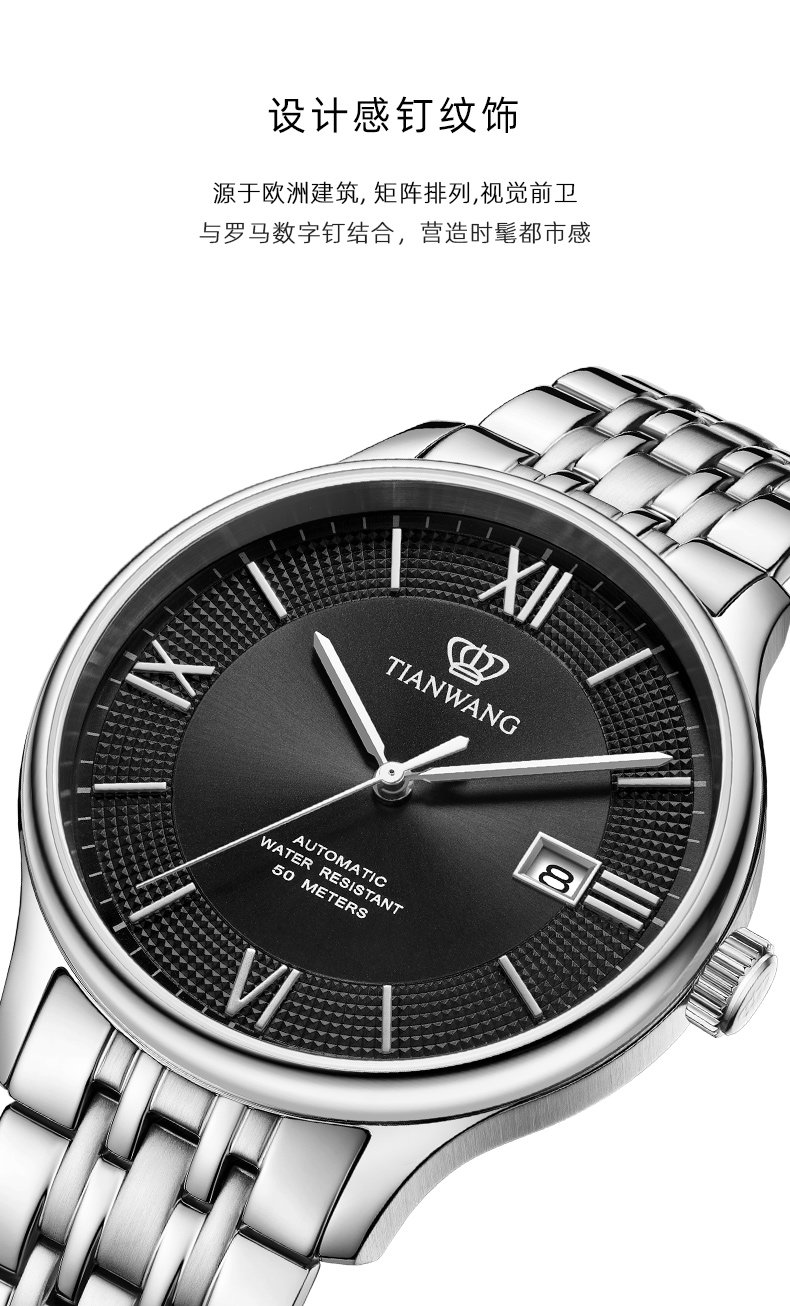 Tianwang Watch Business Large Dial Automatic Mechanical Watch 51316 Waterproof Steel Band Watch Men's New Year Gift