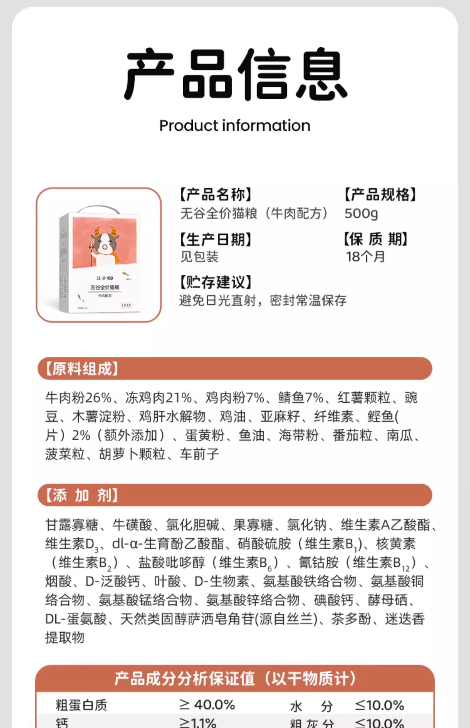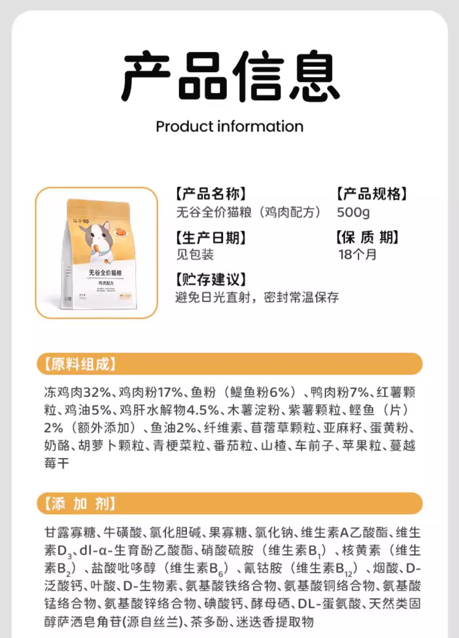 | Product Name | Jiang Xiaoao Grain-Free Complete Cat Food |