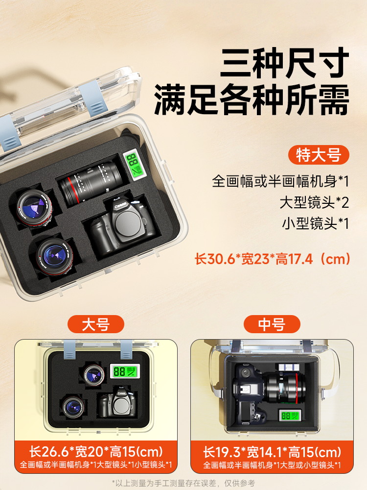 | Color Classification | ↓Extra Large Moisture-Proof Box Can Hold [Slr*1, Mirrorless Camera*1, Lens*2]↓,Extra Large Box [Second Generation Anti-Knock Liner] Comes with Moisture Absorption Box/Strap,Extra Large Box [Second Generation Anti-Bump Liner] Comes with Simple Desiccant/Hygrometer/Strap,Extra Large Box [Second Generation Anti-Bump Liner] Comes with Moisture Absorption Box/Hygrometer/Strap,Extra Large Box [Thickened Anti-Knock Liner] Comes with Moisture Absorption Box/Strap,Extra Large Box [Thickened Anti-Knock Liner] Comes with Hygrometer/Hygroscopic Box/Strap,[Extra Large Box] Comes with Upgraded Moisture-Proof Pad/Moisture-Absorbing Box/Strap,Spare 2,Do Not Purchase if This Is a Spare Sku and Will Not Be Shipped! |