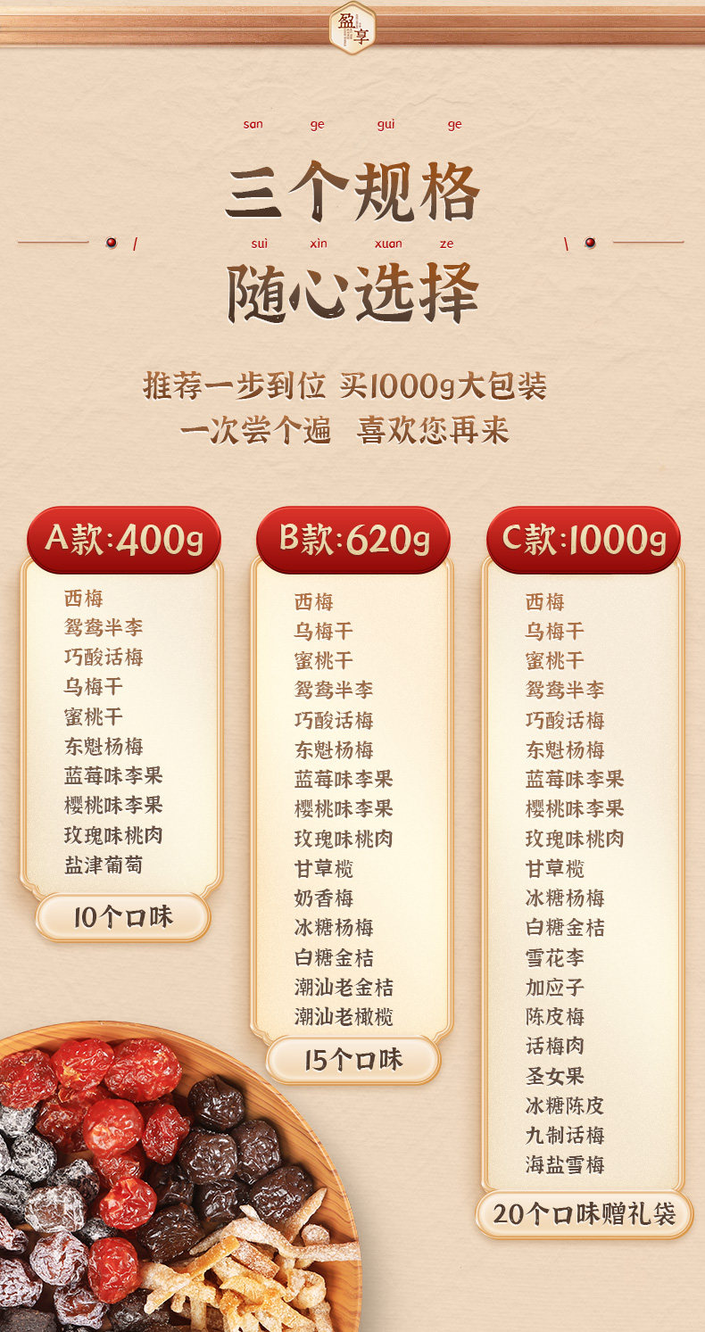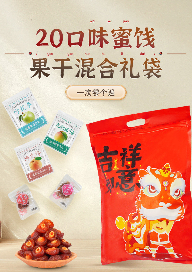 | Food Taste | [Double Gift Box] 20 Flavors 1450g*2 Boxes, Preferred for Gift Giving,[Gift Box] 20 Flavors 1450g, Preferred Gift,[Free Red Gift Bag] 20 Flavors 1000g, about 23 Small Bags,[Free Double Gift Bags] 20 Flavors, 2000g, about 46 Small Bags,15 Flavors 620g, about 15 Sachets,15 Flavors 1240g, about 30 Sachets,10 Flavors 400g, about 10 Sachets,10 Flavors 800g, about 20 Sachets,[Chinese Style Gift Box] 7 Flavors 740g,[Chinese Style Gift Box] 7 Flavors 740g*2 Boxes |