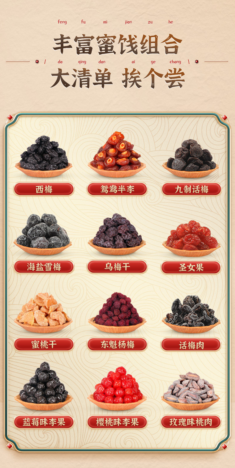 Candied Fruit Gift Pack Snacks, Mixed Prune and Plum Dried Fruits in Individual Small Packages, Sweet and Sour Preserved Green Plums, New Year's Gift for Giving