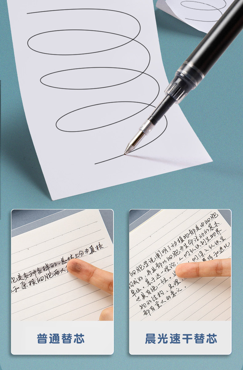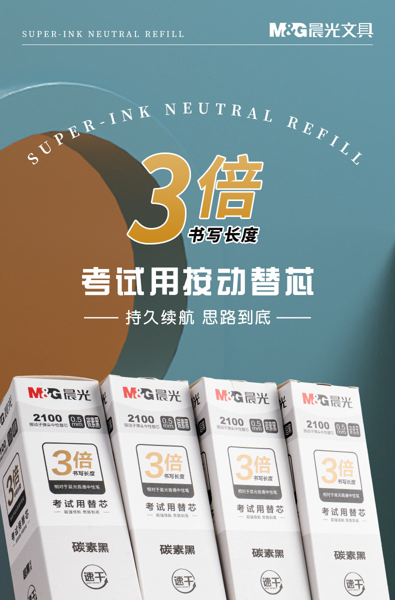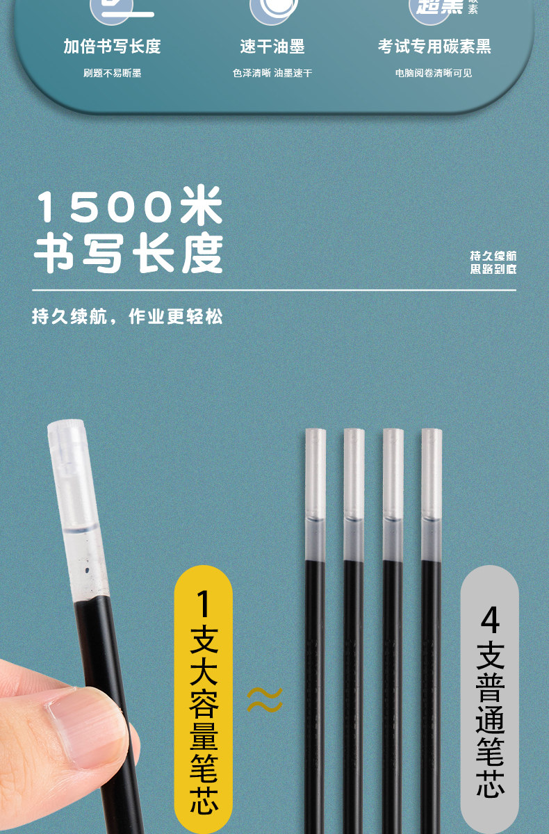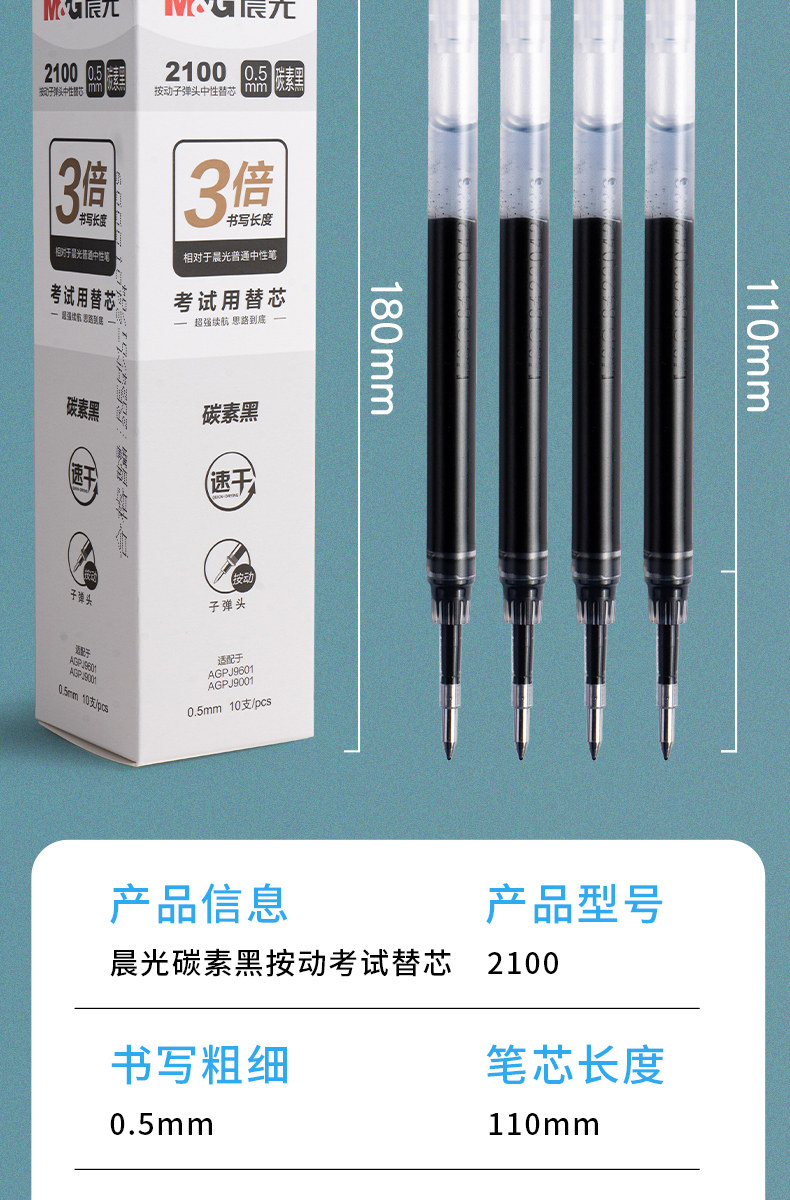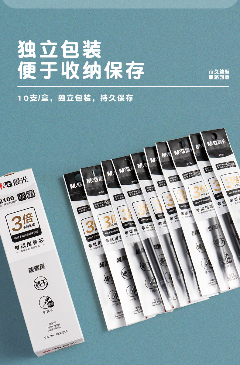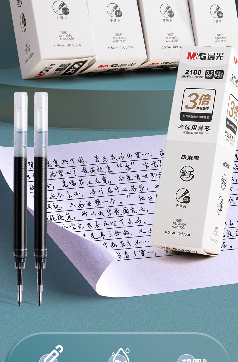 Morning Light Ultra Black Carbon Large Capacity 2100 Retractable Bullet Tip Gel Pen Refill 0.5mm Large Ink Capacity Low Noise Exam-Specific Quick-Drying Black Pen Smooth Writing Student Use Junior High School Black Signature Pen Refill