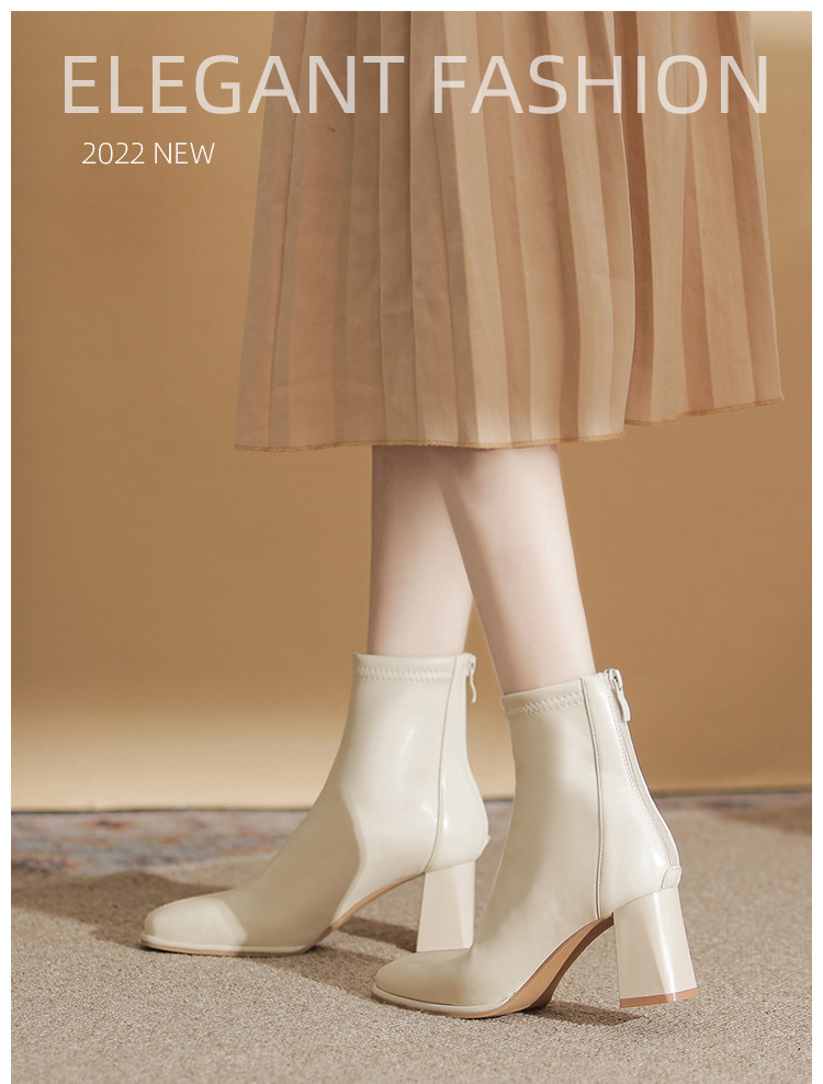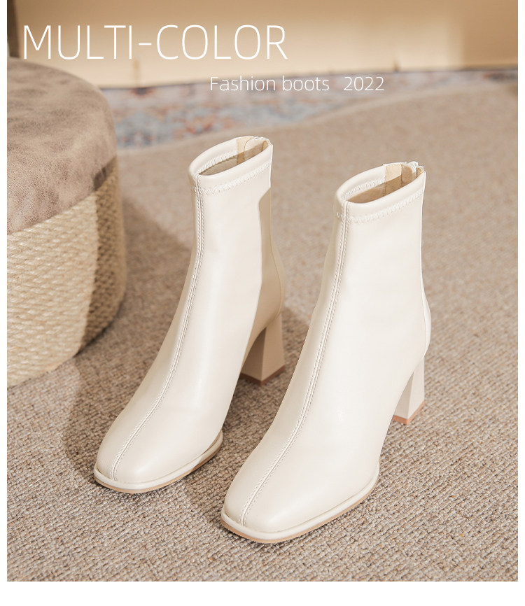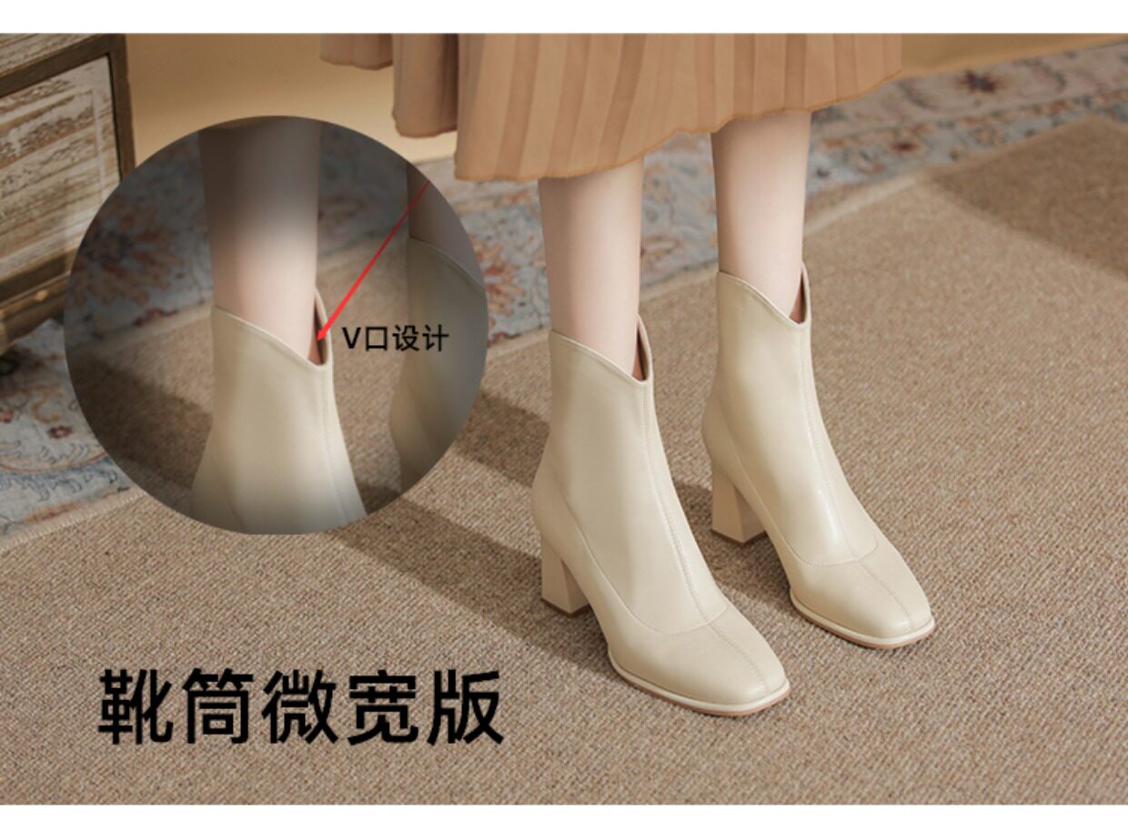 Mr. Wei Slim Boots for Women Black Martin Boots Autumn and Winter Short Boots for Women with Fleece Lining White Chunky Heel High Heel Short Boots for Women