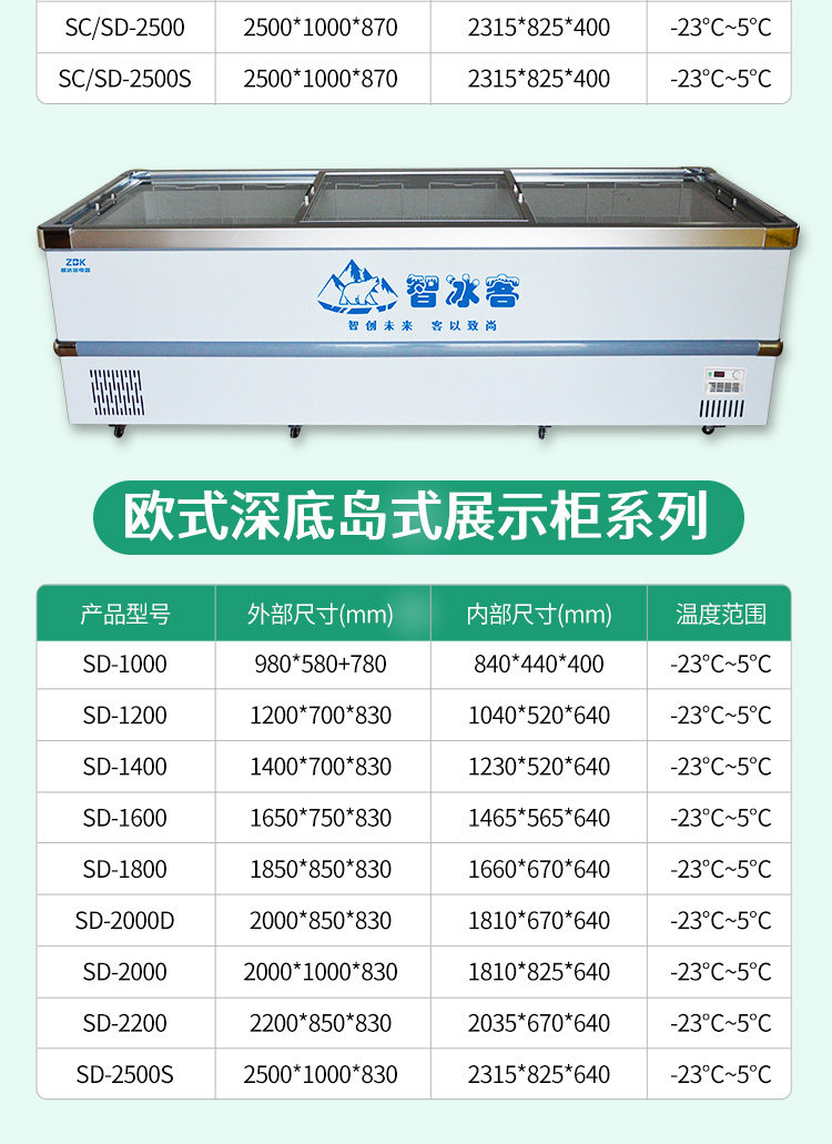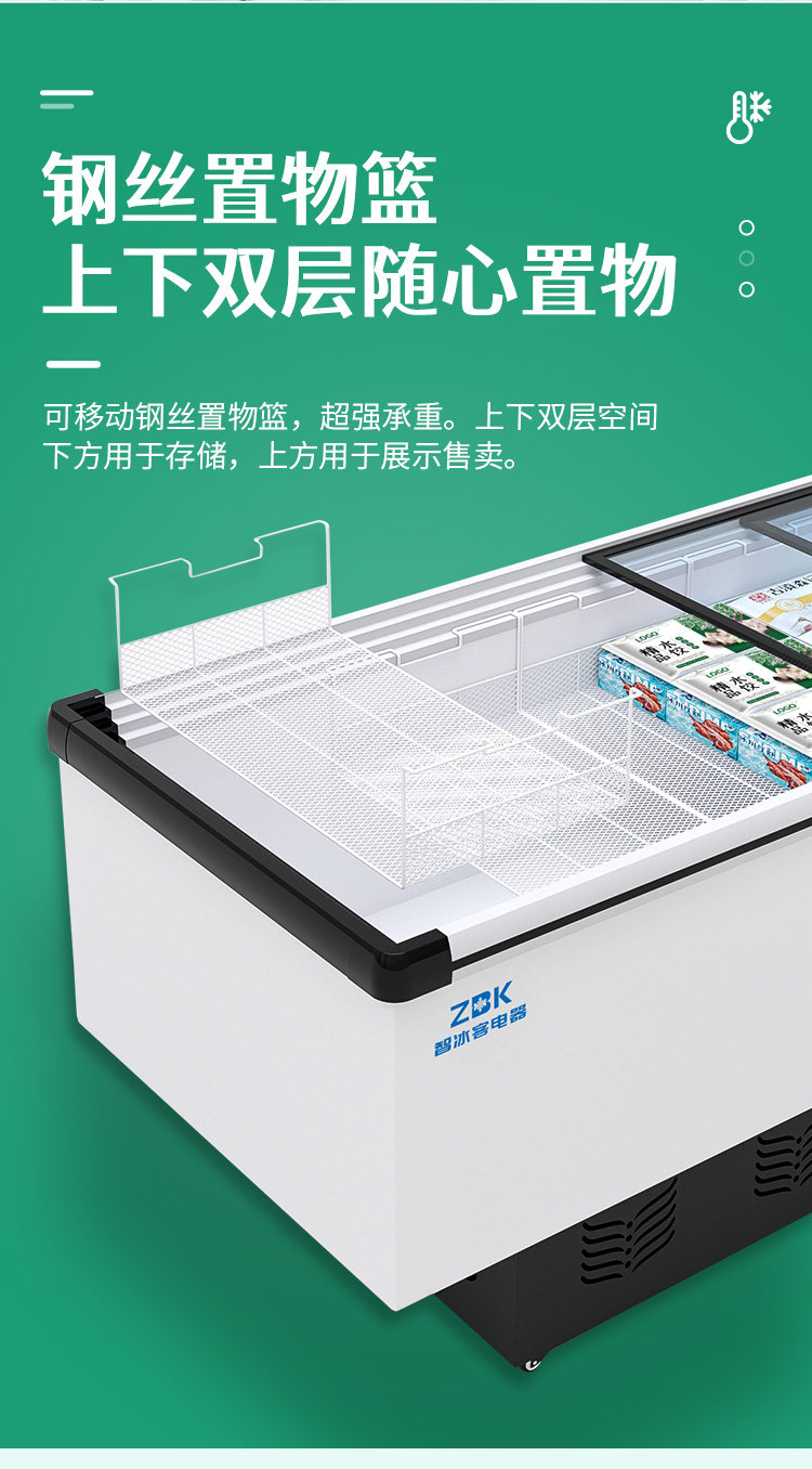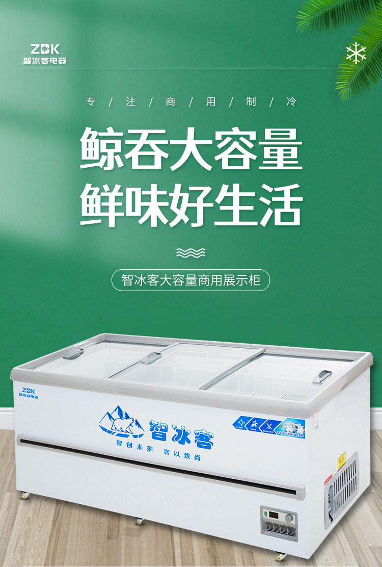 Zhi Bingke Commercial Horizontal Island Freezer Supermarket Refrigerated Large-Capacity Freezer Display Cabinet Smart Glass Freezer Ice Cream Cabinet