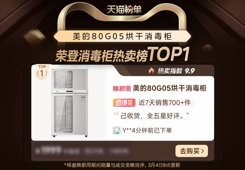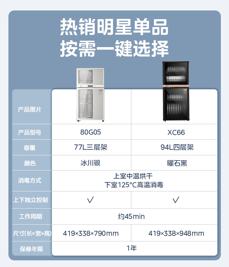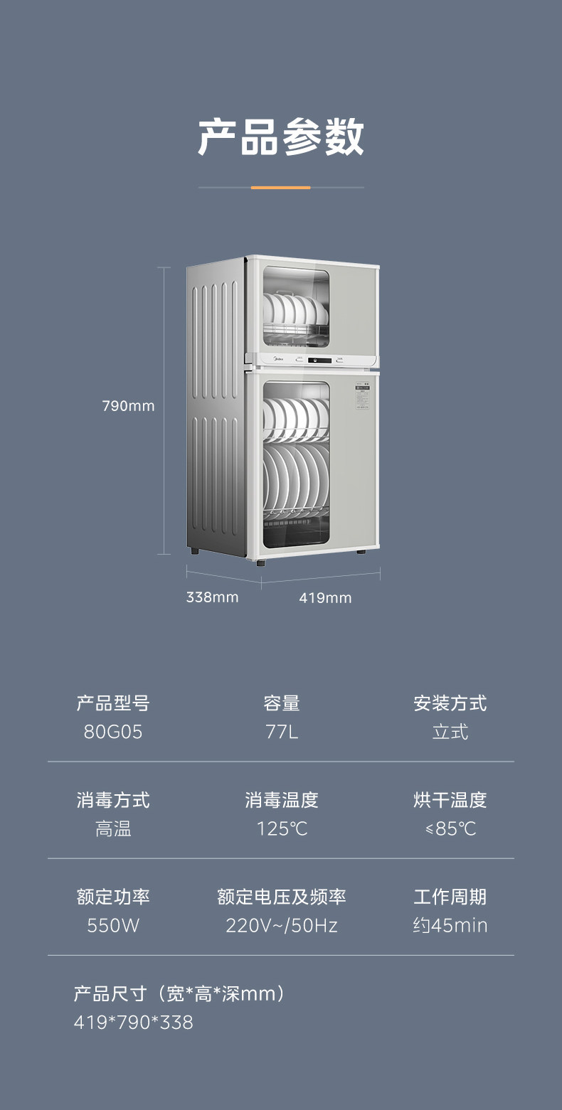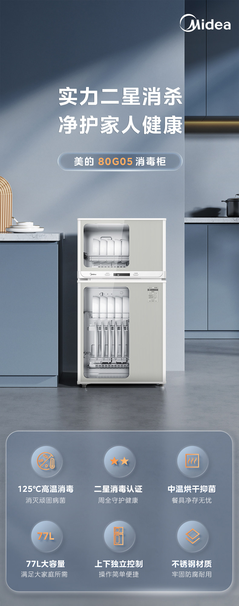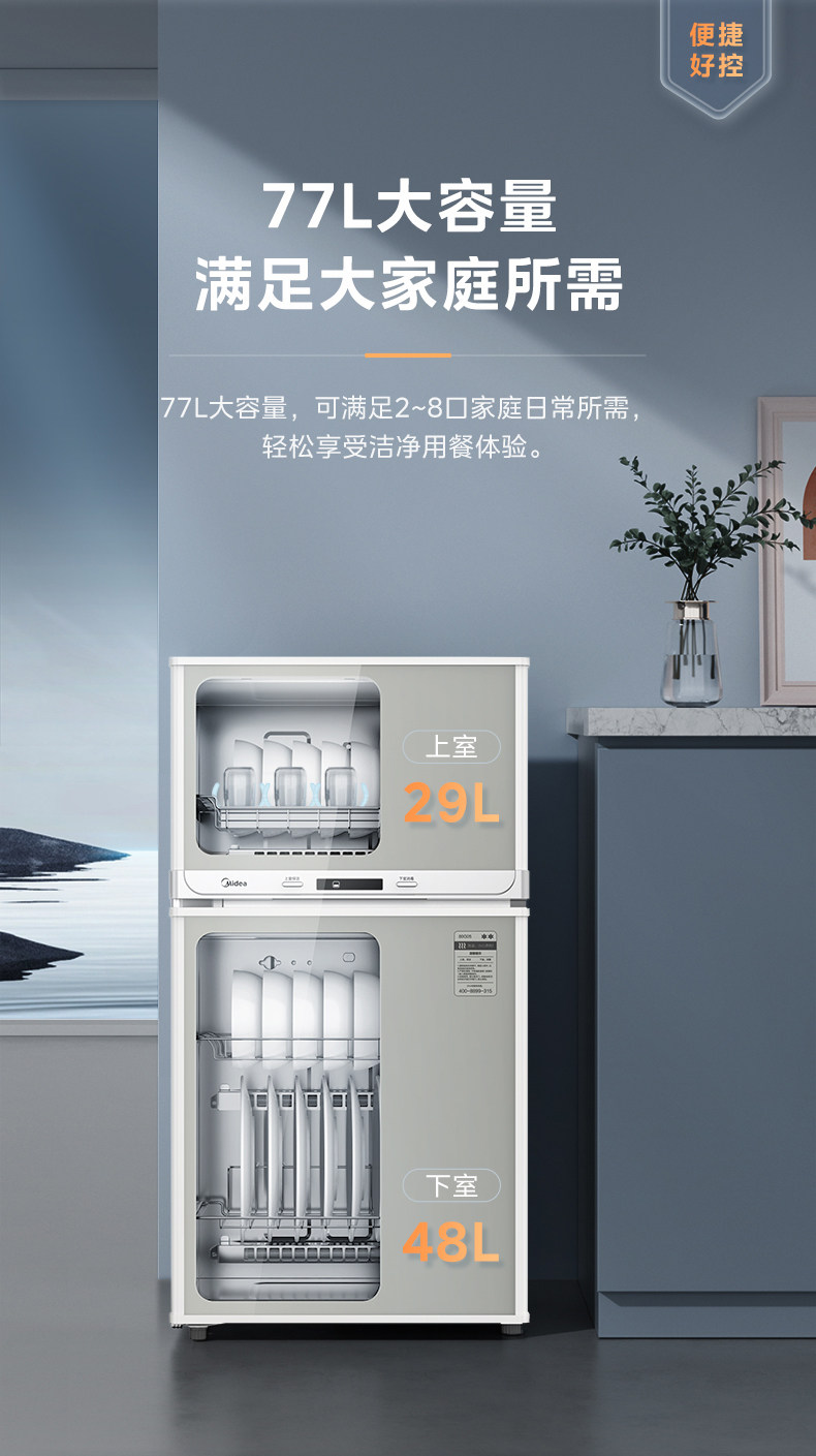 Midea Sterilization Cabinet and Dryer All-In-One Machine 80R05 Kitchen Household Vertical Desktop Commercial Small Dishware Cabinet New Model
