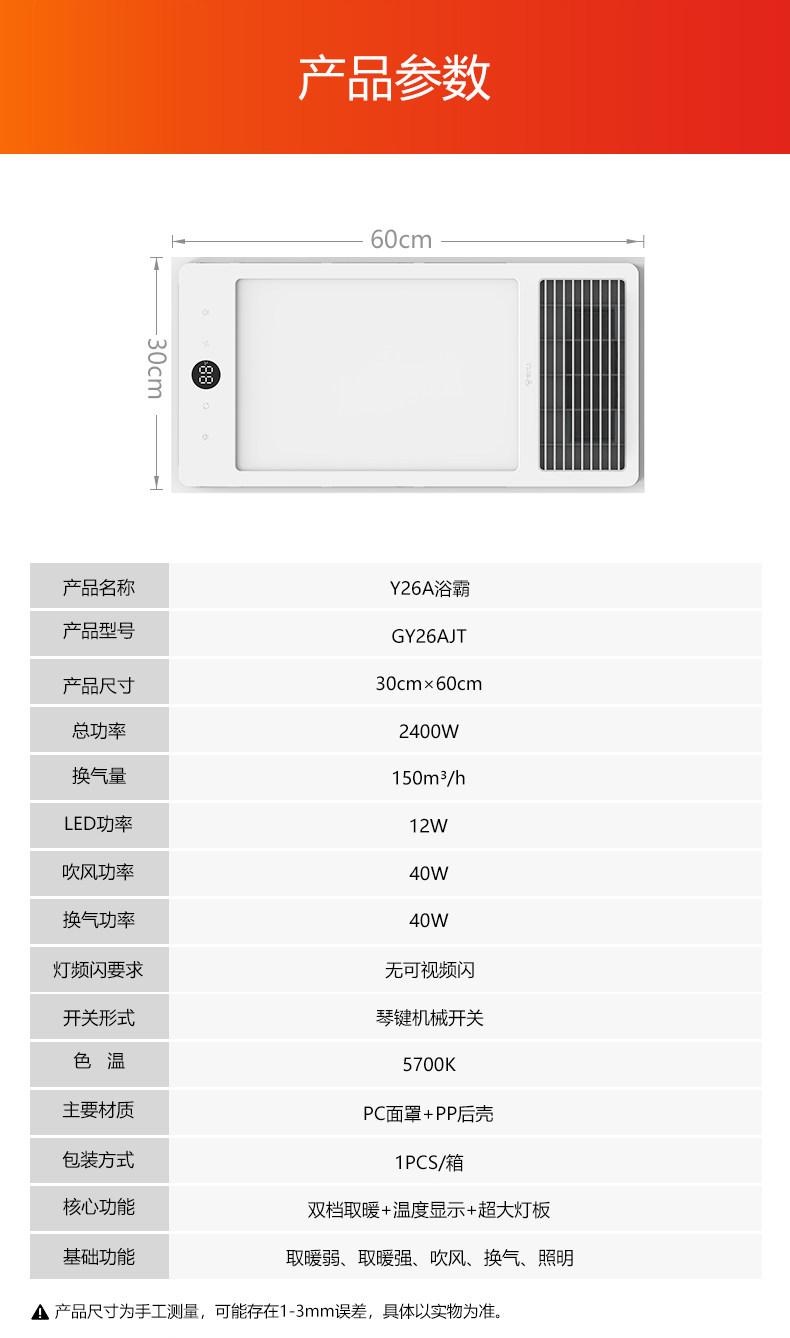 | Color Classification | Digital Display Model [Two Heat Settings] 2400W / Illumination + Digital Display + Air Blow + Ventilation,Special Offer [Three-In-One] 2200 Watts/Heating + Hair Dryer + Ventilation,❤Y25 New Launch❤2400W/8Cm Ultra-Thin Cabinet/4-Button Switch,Non-Integrated Ceiling Installation [Digital Display Model, Bath Heater + Conversion Frame],Non-Integrated Ceiling Installation [Special Price Bathroom Heater + Conversion Frame],Non-Integrated Ceiling【❤Y25 New Launch❤ Bath Heater + Conversion Box],【Installation Included】Digital Display Bathroom Heater + On-Site Installation,【Installation Service】Special Offer: Bathroom Heater + On-Site Installation,[Package Installation]❤Y25 New Launch❤ Bath Heater + Door-To-Door Installation,Non-Integrated Ceiling Mount [Includes Installation] Digital Display Model Bathroom Heater + Conversion Frame + On-Site Installation,Non-Collection Crane [Package Installation]❤Y25 New Launch❤ Bath Heater + Conversion Box + Door-To-Door Installation,【No Wiring, No Demolition】Digital Display / Dehumidifying & Drying / Two-Level Heating + Air Blow + Lighting + Exhaust Fan - 6-in-1,【No Wiring, No Demolition】Digital Display / Dehumidifying & Drying / Two-Level Heating + Blower + Lighting + Exhaust Fan - 6-in-1,【No Wiring, No Demolition】Dehumidifying & Drying / Two-Level Heating + Lighting + Ventilation + Air Blow Five-In-One,【No Wiring, No Wall Demolition】Sterilization/Graphene Rapid Heating/120°Six-In-One Oscillating Fan with Wireless Dual Control,【No Wiring, No Wall Demolition】Wechat Mini Program / Night Light / Sterilization / Graphene Rapid Heating / 120°Seven-In-One Oscillating Fan with Wireless Dual Control,【No Wiring, No Demolition】Heat, Ventilation, and Dehumidification All in One: Two Heat Settings + Lighting + Ventilation + Air Blow – Six-In-One Functionality.,【No Wiring, No Demolition】Digital Display / Dehumidifying & Drying / Two-Level Heating + Fan + Lighting + Exhaust Fan - 6-in-1,【No Wiring, No Demolition】Dehumidifying & Drying / Two-Level Heating + Lighting + Ventilation + Air Blow - 5-in-1,【No Wiring, No Wall Demolition】Sterilization/Graphene Rapid Heating/120°Six-In-One Oscillating Fan with Wireless Dual Control,【No Wiring, No Wall Demolition】Wechat Mini Program / Night Light / Sterilization / Graphene Rapid Heating / 120°Seven-In-One Oscillating Fan with Wireless Dual Control,【No Wiring, No Demolition】Heat, Ventilation, and Dehumidification All in One: Two Heat Settings + Lighting + Ventilation + Fan – Six-In-One System,【No Wiring, No Demolition】 Digital Display / Dehumidifying & Drying / Two-Level Heating + Fan + Lighting + Exhaust Fan - 6-in-1,【No Wiring, No Demolition】 Dehumidifying & Drying / Two-Level Heating + Lighting + Ventilation + Air Blow - 5-in-1,【No Wiring, No Demolition】7-In-1 Dehumidifying Dryer: Drying & Dehumidification / Two Heat Settings + Fan + Lighting + Ventilation,[No Wiring Required, No Need to Break the Wall] Sterilization/Graphene Rapid Heating/120°Six-In-One Oscillating Fan with Wireless Dual Control,【No Wiring, No Drilling】 Wechat Mini Program / Night Light / Sterilization / Graphene Rapid Heating / 120°Seven-In-One Oscillating Fan with Wireless Dual Control |