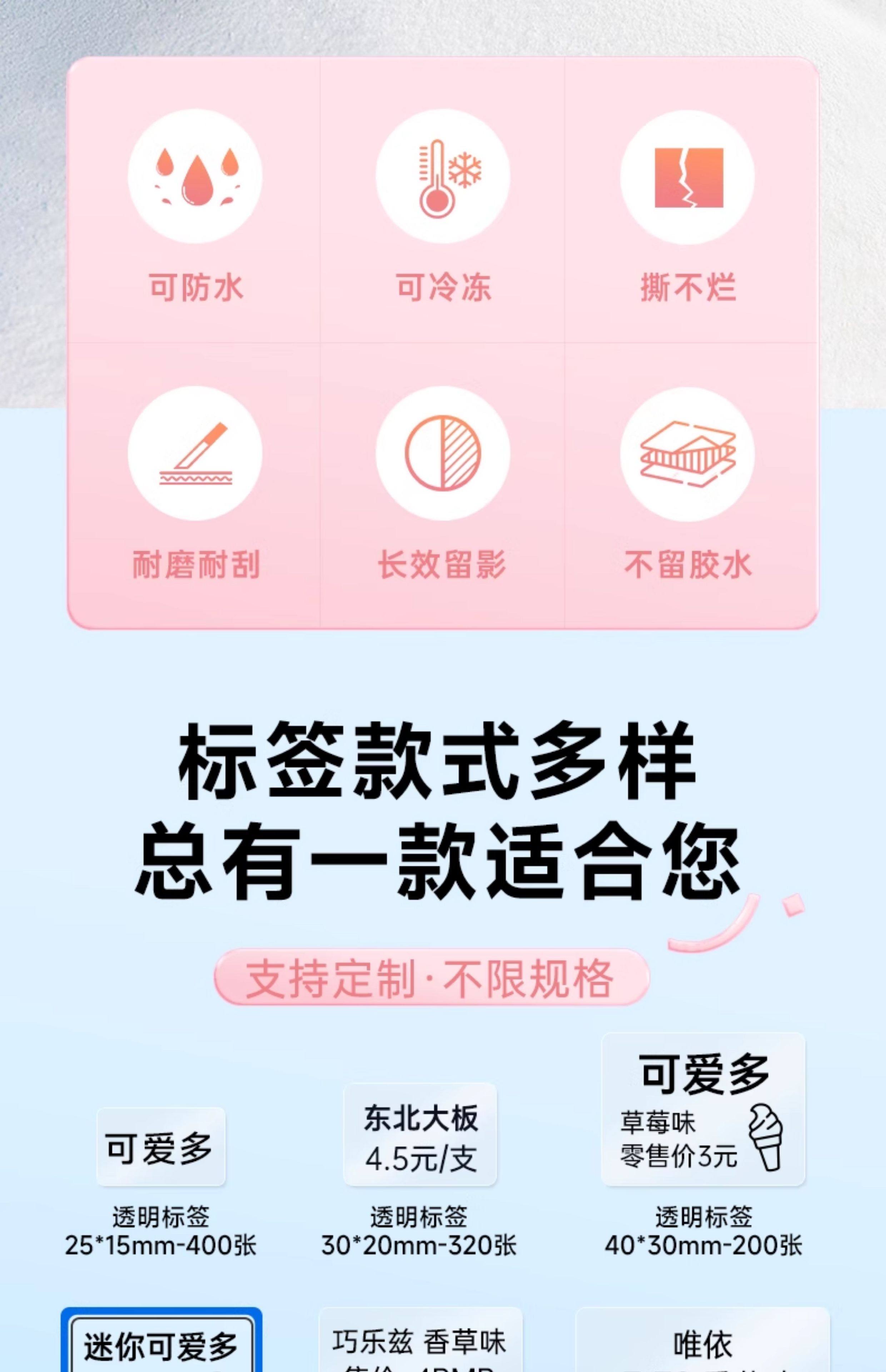 | Color Classification | New High-Definition 300-Point Dp27P Label Machine (1 Roll of 40*30 White Labels Included),Dp27P (Free 1 Roll of 40*30 Transparent Labels),Dp27+ (Free 1 Roll of 40*30mm Color Frame Transparent Label),Dp27P+3 Rolls of Transparent Labels (Waterproof, Tear-Proof and Freezable),Dp27P+3 Rolls of White Labels (Waterproof, Tear-Proof and Freezable),Dp27P+5 Rolls of White Labels (Waterproof, Tear-Proof and Freezable),Dp27P+5 Rolls of Transparent Labels (Waterproof, Tear-Proof and Freezable),Dp27P+1 Roll of White+1 Roll of Color Waterproof Label,Dp27P+1 Roll of Transparent+1 Roll of White+1 Roll of Color Waterproof Label,Dp27P+5 Rolls Special Price 30*15 White Label,Dp27P+5 Rolls Special Price 40*30 White Label,Dp27P+5 Rolls Special Price 40*60 White Label,Dp27P+5 Rolls Special Price 50*30 White Label |