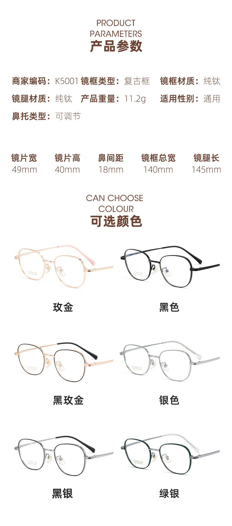 | Frame Material | Pure Titanium |