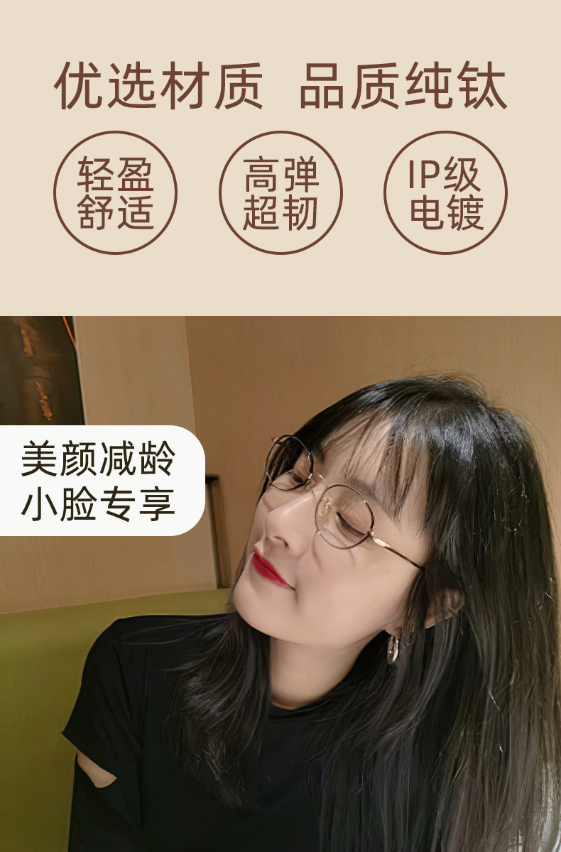 Ultra-Light Pure Titanium Glasses for Women with High Myopia, Prescription Lenses, Small Frame, Small Face, Retro Round Frame, Metal Eyeglass Frame