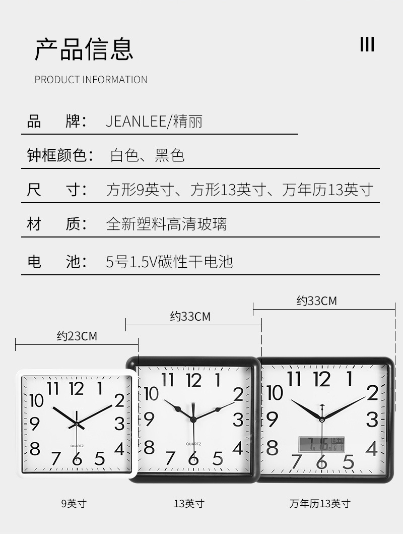 Clocks, Wall Clocks, Living Room Electronic Clocks, Silent Quartz Clocks, Wall-Mounted Clocks, Square Home Bedroom Clocks, Simple Modern Creative