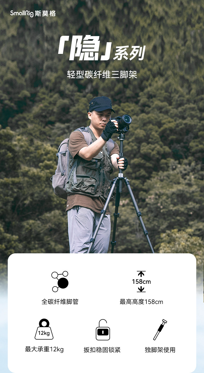 Smog Carbon Fiber Tripod Camera Dslr Photography Tripod Head Set Travel Lightweight Portable Camera Stand Hidden Series Tripod