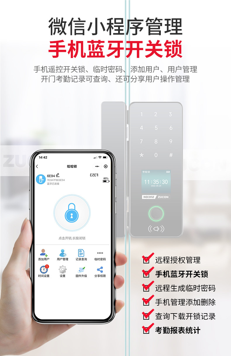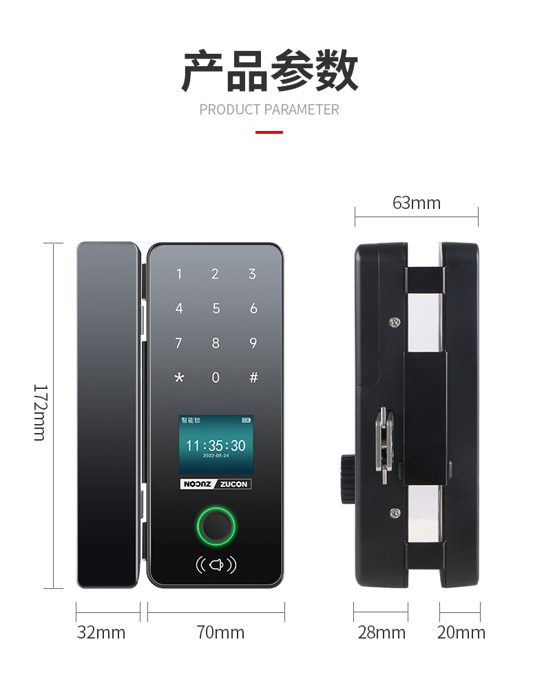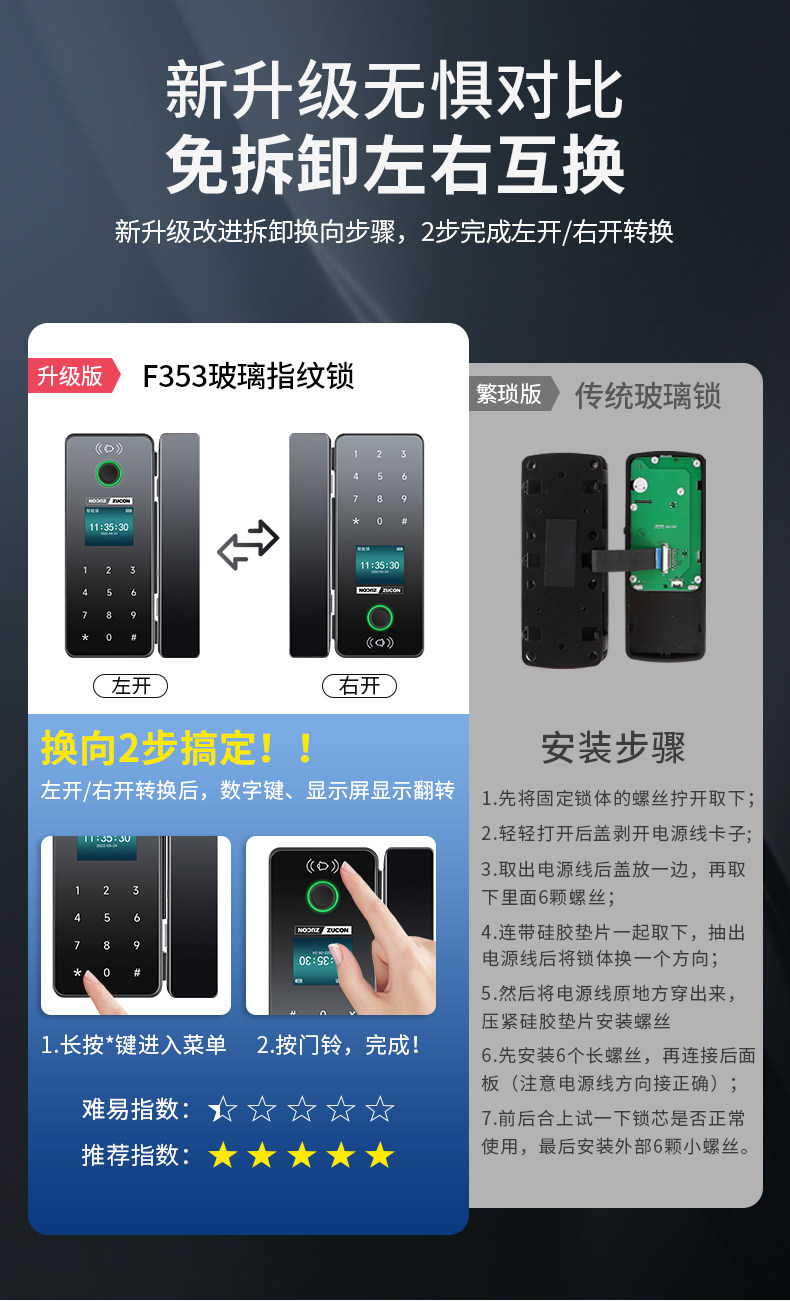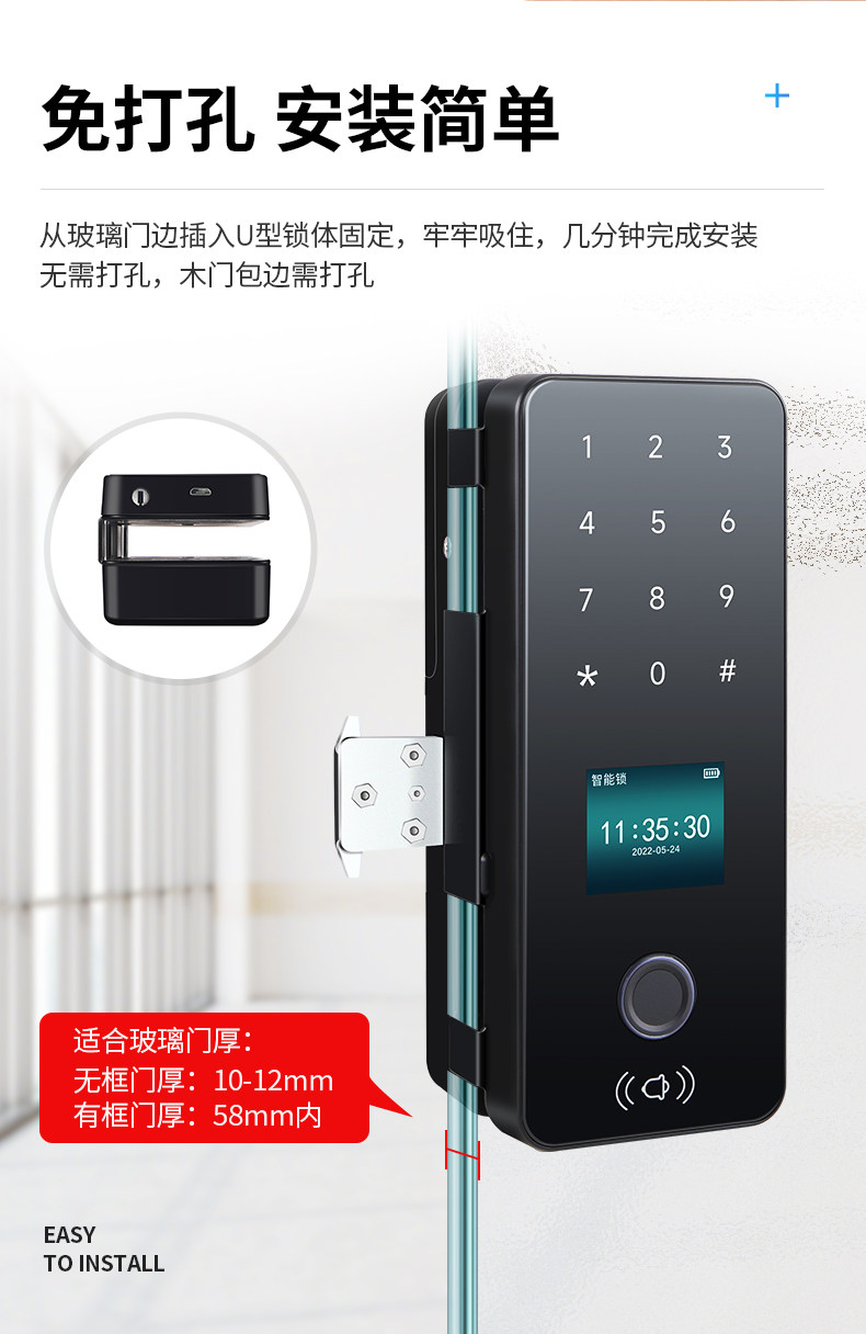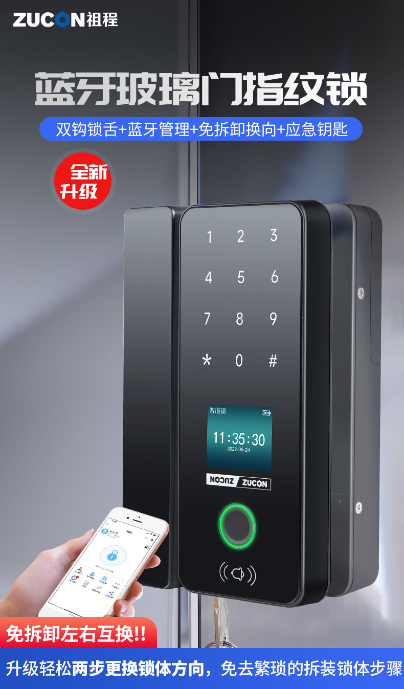 Zucon Zucheng Overlord Hook Glass Door Fingerprint Password Lock Card Key Unlocking No Drilling No Disassembly Interchangeable