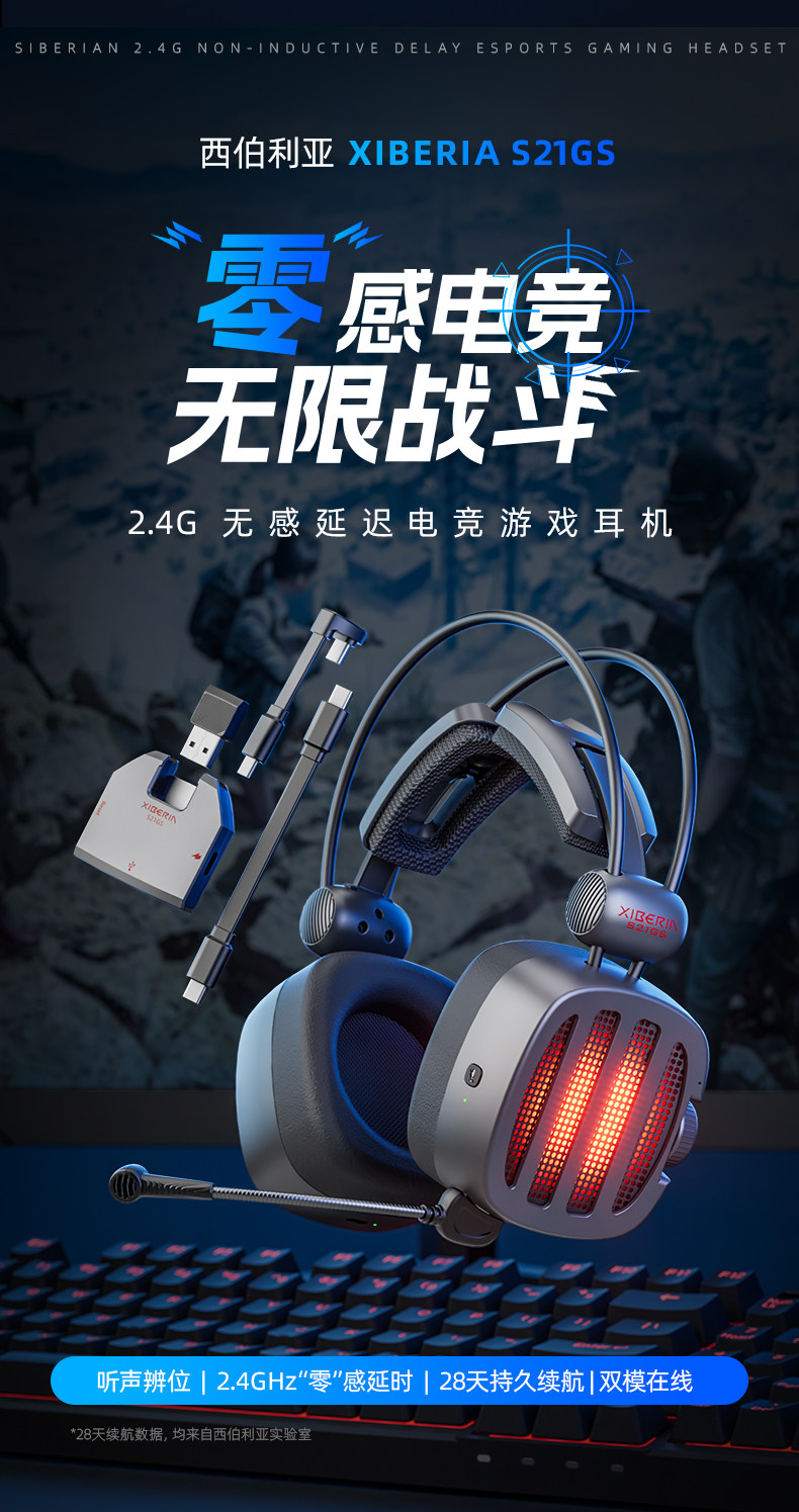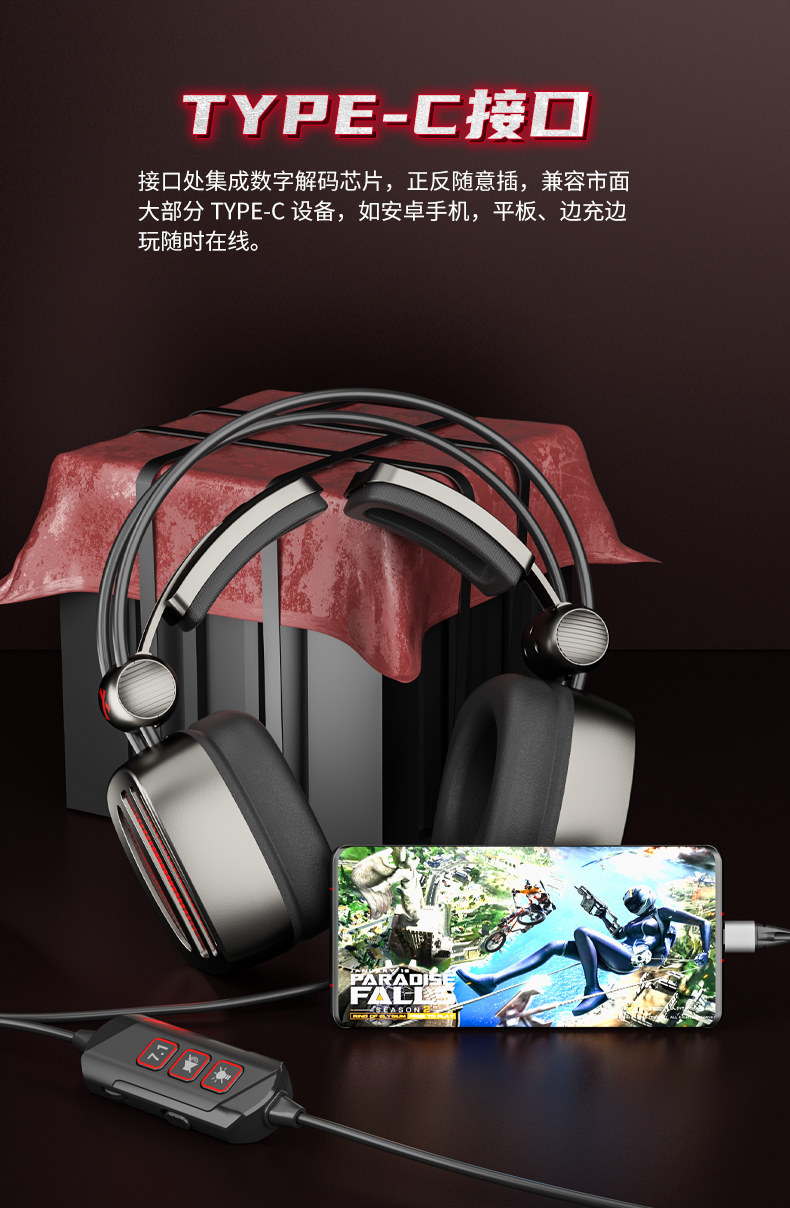 Siberia S21Dcpro Gaming Headset Over-Ear Type-C Version for Mobile Phones and Tablets, Sound Positioning 7.1