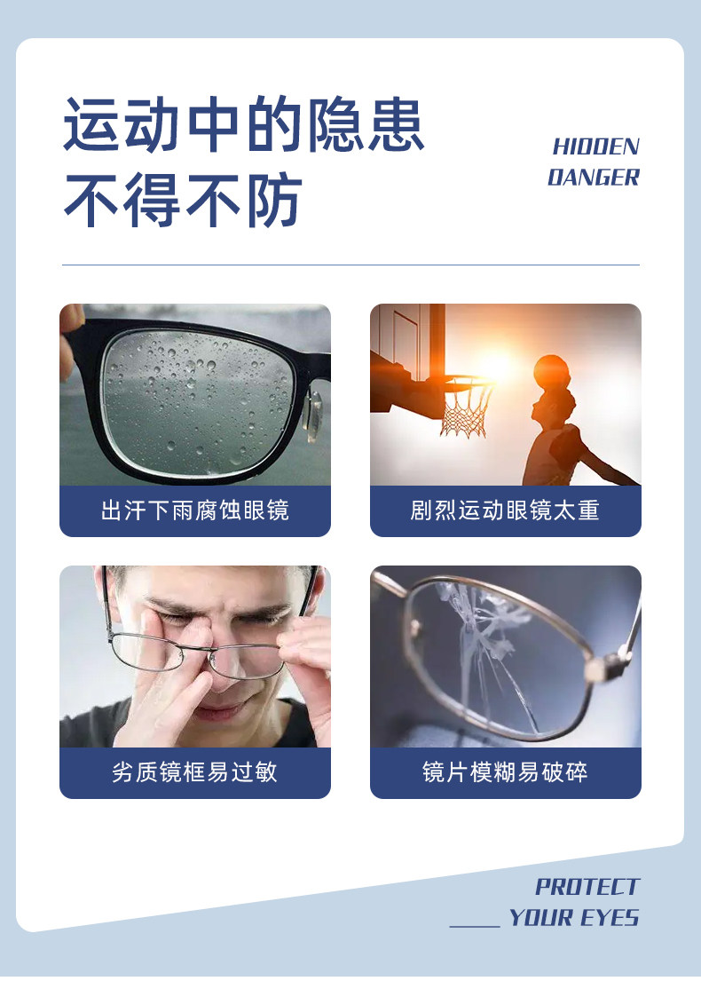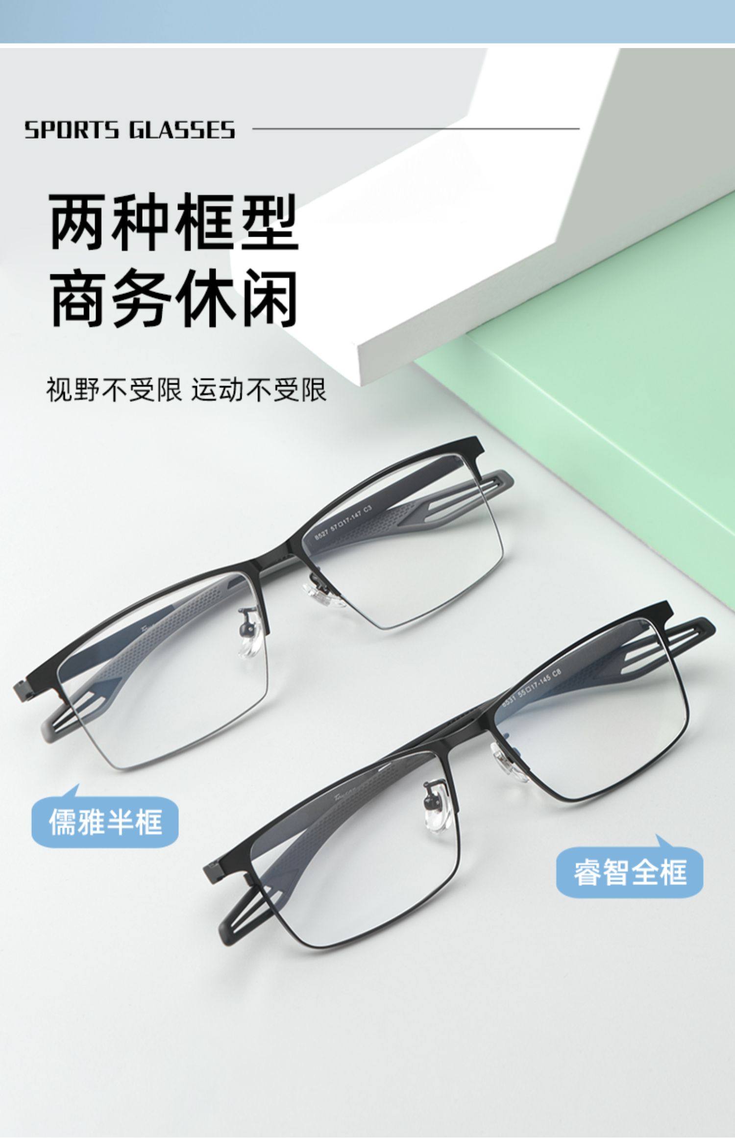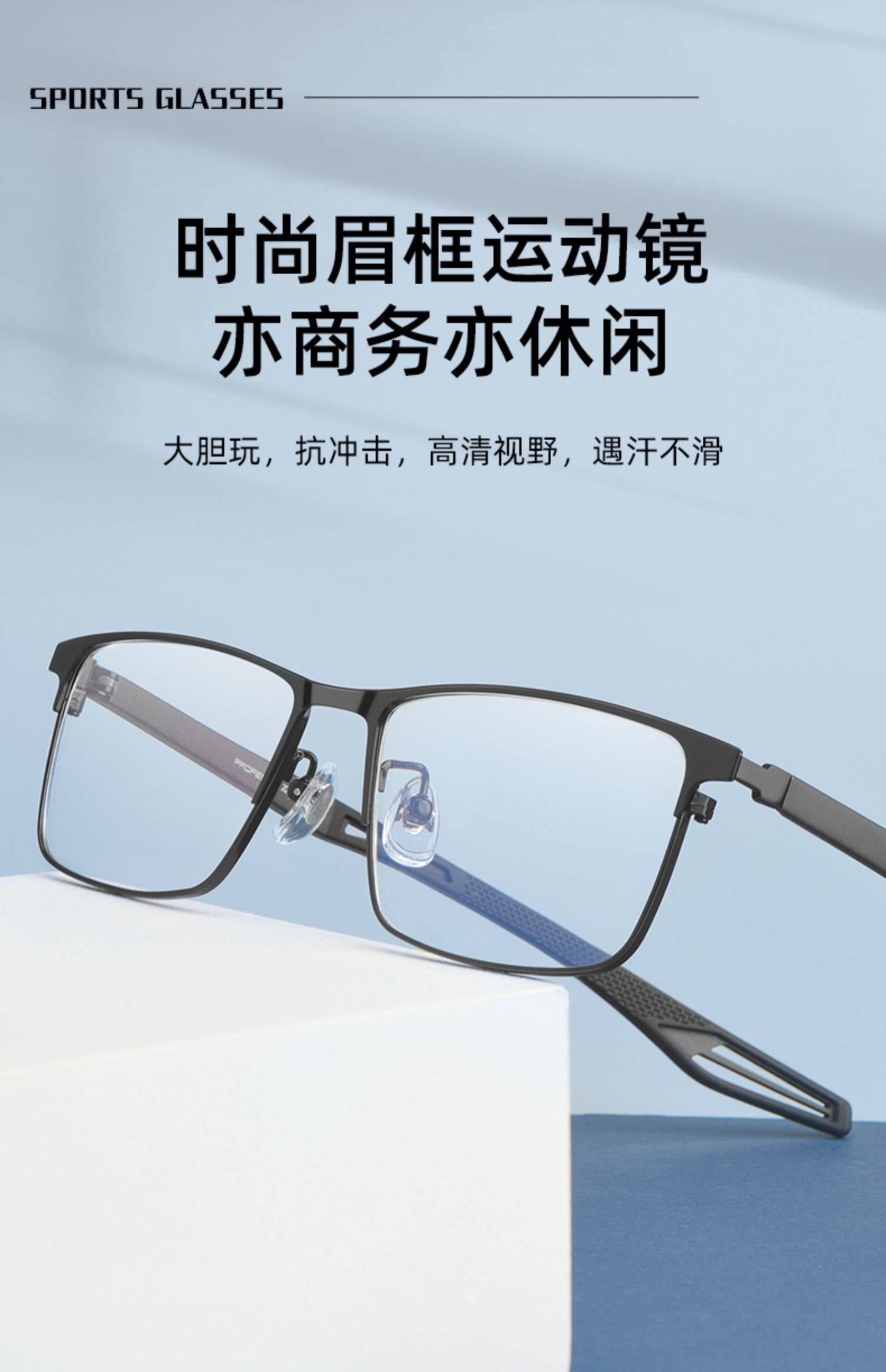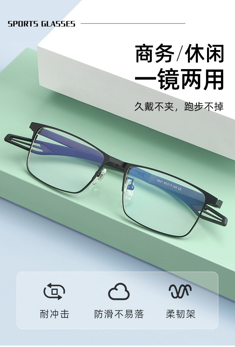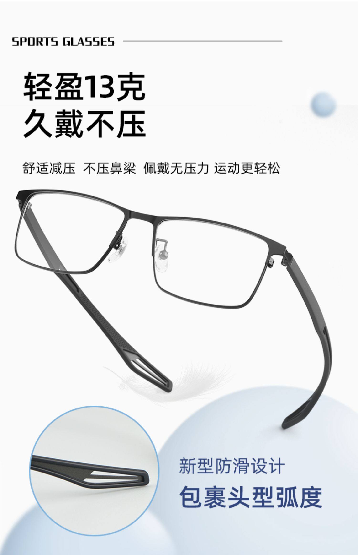 Sports Myopia Glasses for Playing Football, Basketball, and Running, Non-Slip, Can Be Equipped with Prescription Lenses, Ultra-Light Glasses Frame, Men's Style