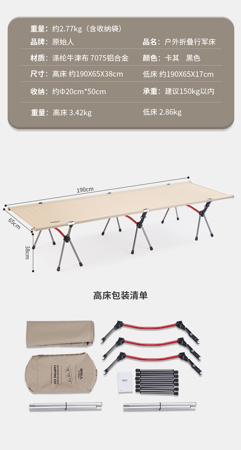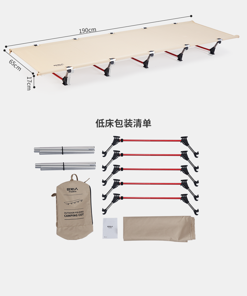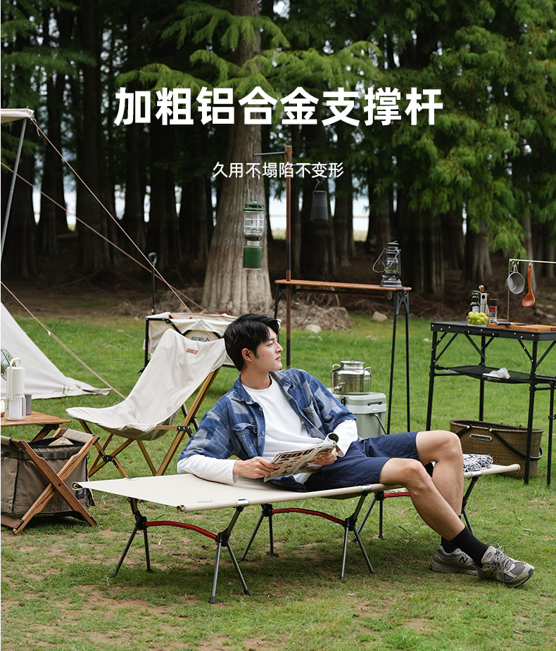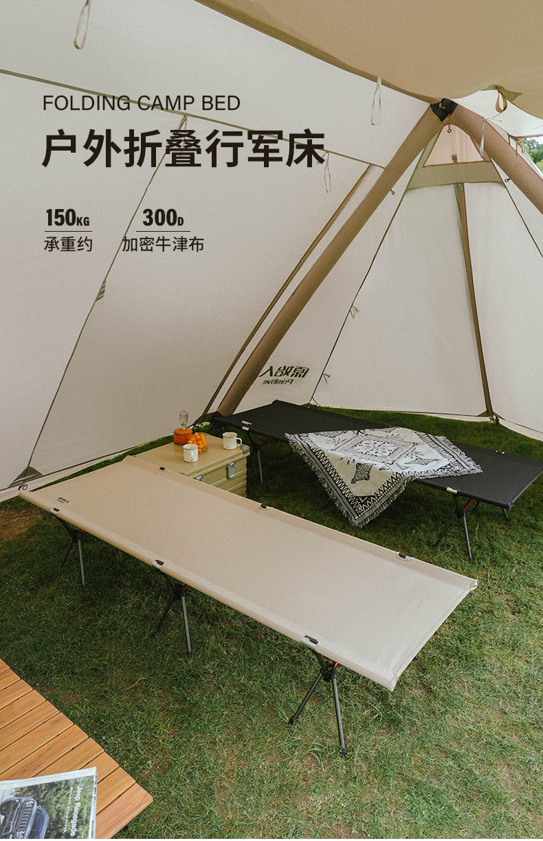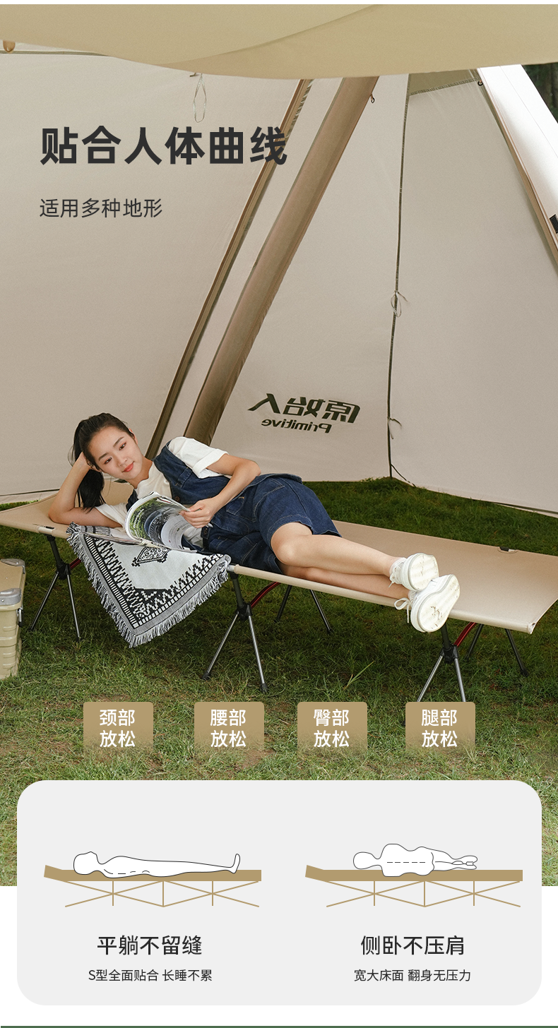 Primitive Outdoor Folding Camp Bed, Portable and Lightweight, Single-Person Camping Nap Bed, Ultra-Light Folding Bed, Office Essential
