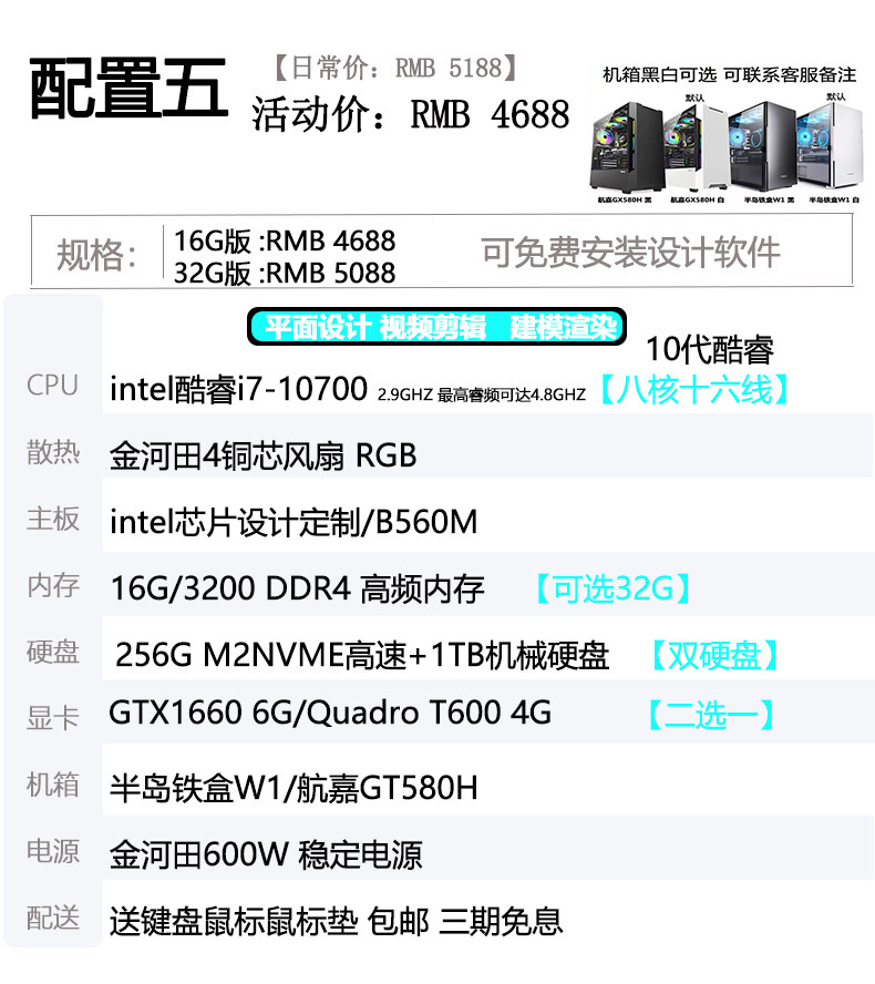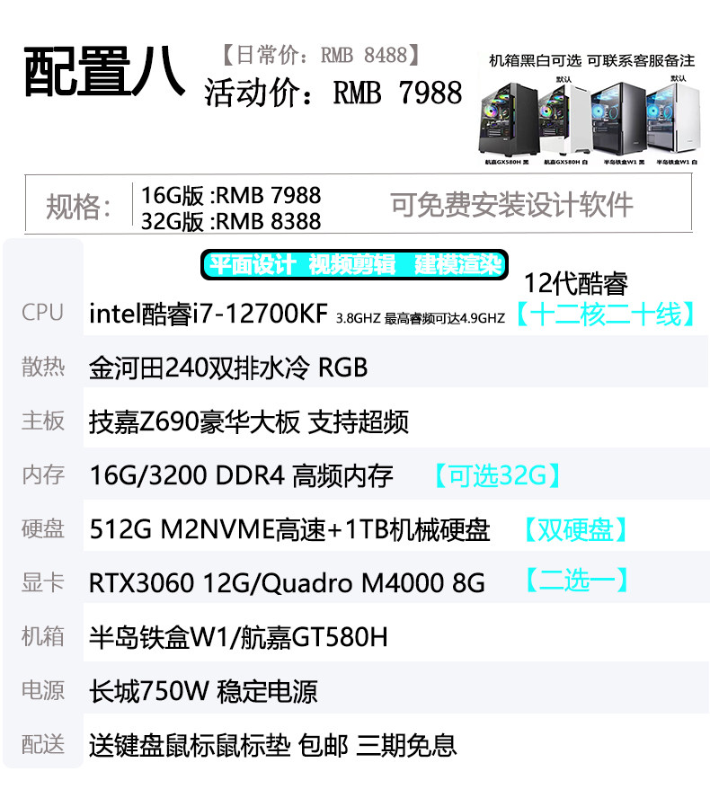 Designer's Dedicated Computer Desktop with Core I7 Graphics Workstation for Drawing, Video Editing, 3D Rendering, and Water Cooling