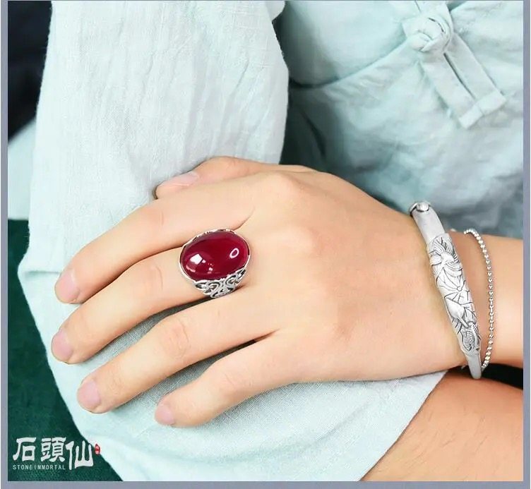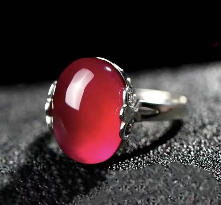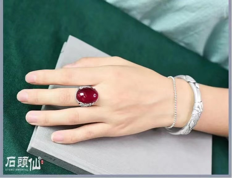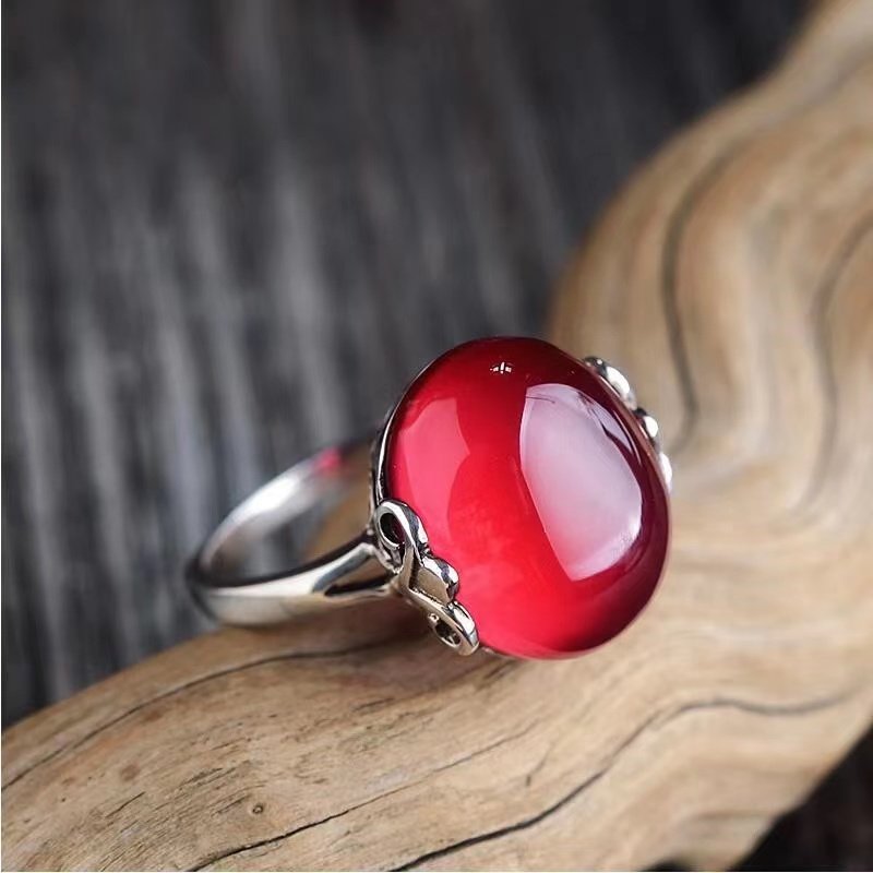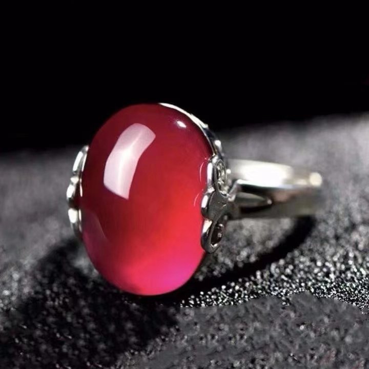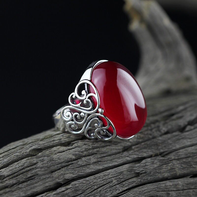 Red Agate Chalcedony Gemstone 925 Vintage Ring for Women, Crown Style, Adjustable Diamond Ring, Gift for Girlfriend or Mother