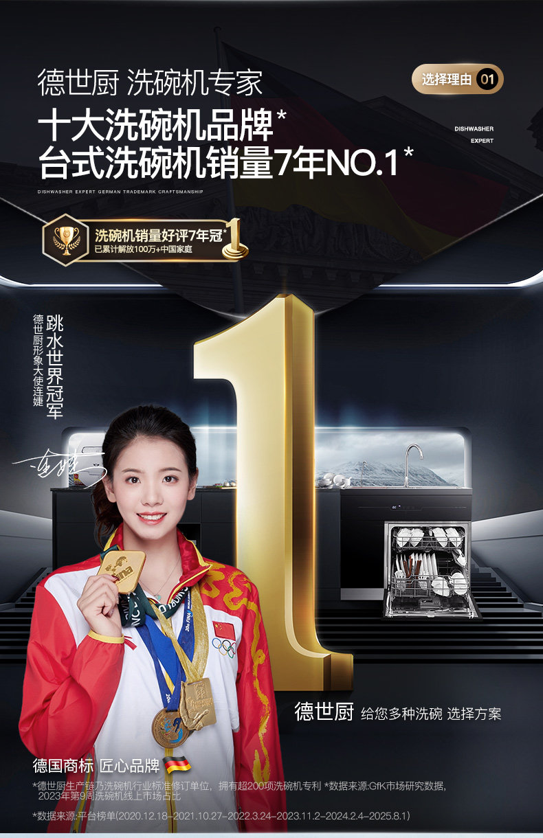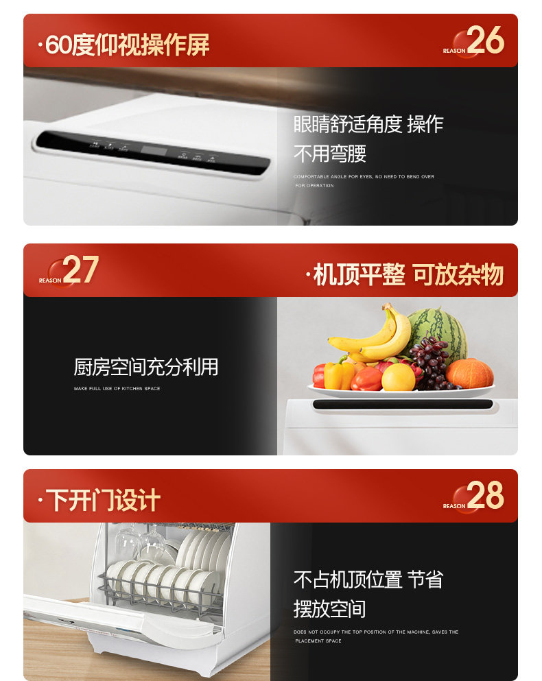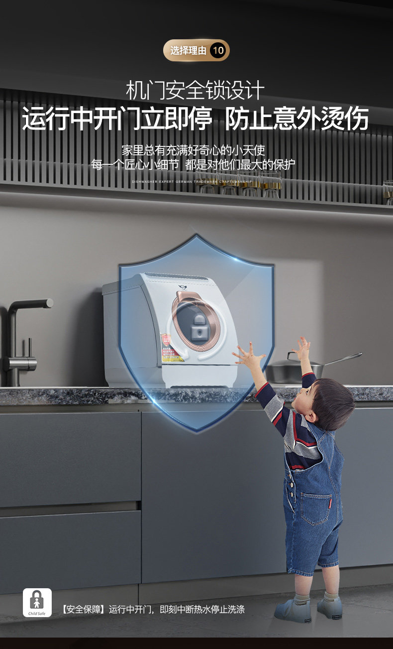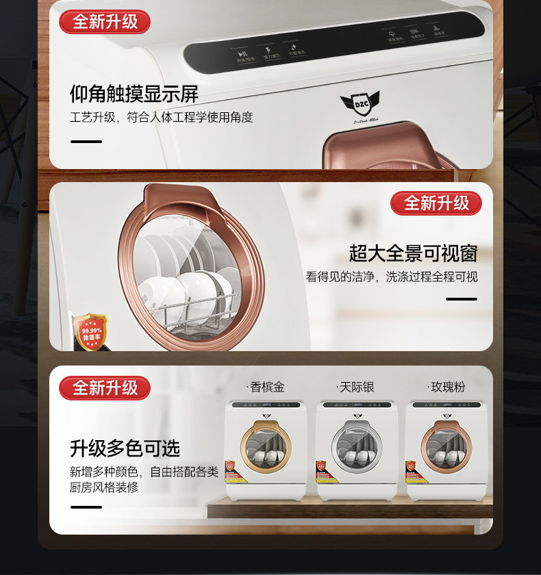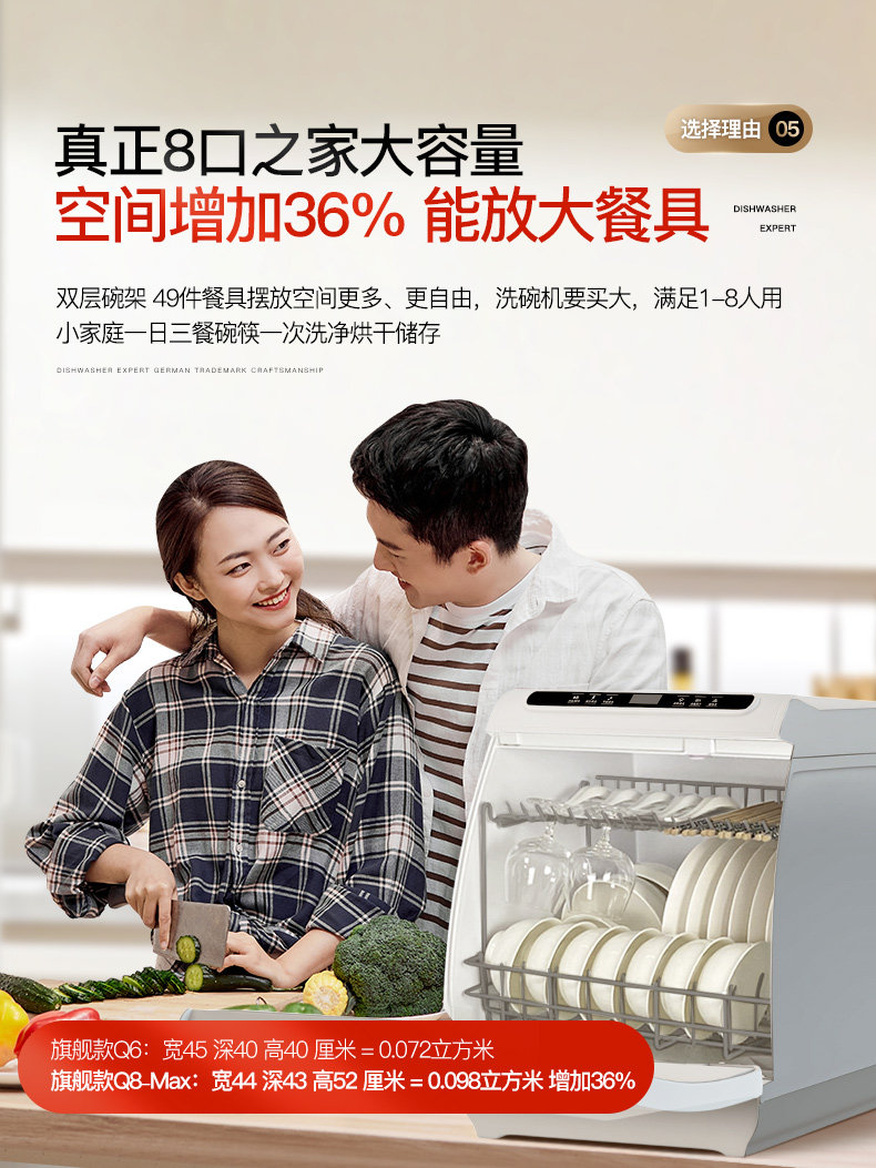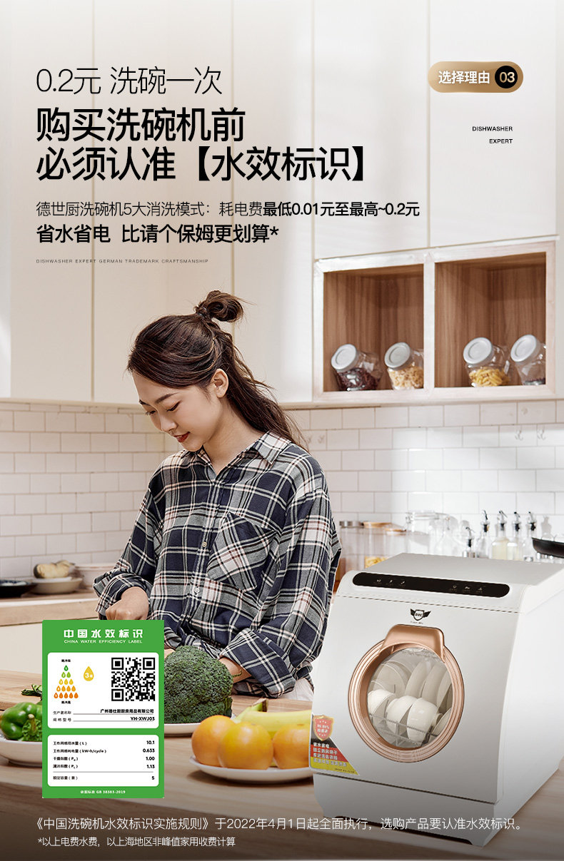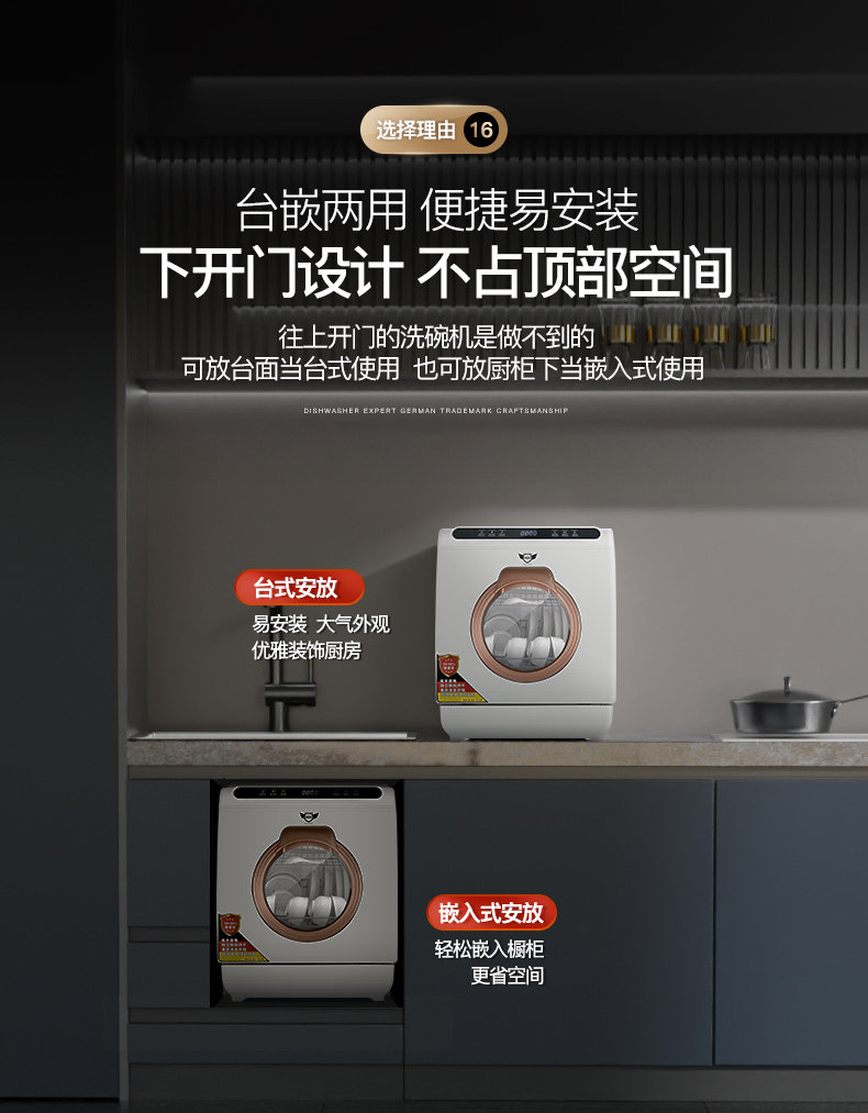 New Deshi Kitchen Dishwasher 8-Person Set with Upper and Lower Spray, Small Household Fully Automatic Countertop Smart Drying and Disinfection