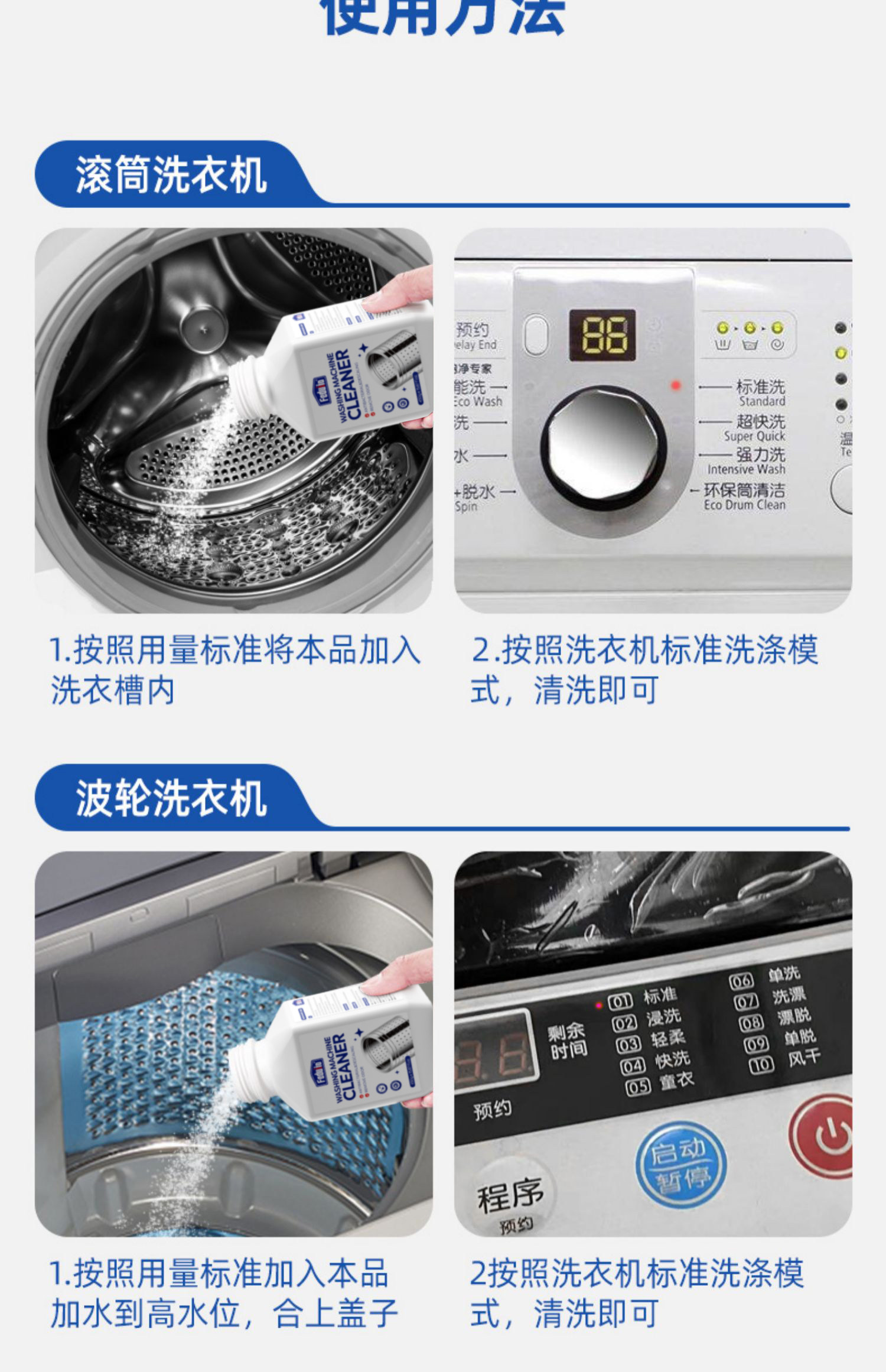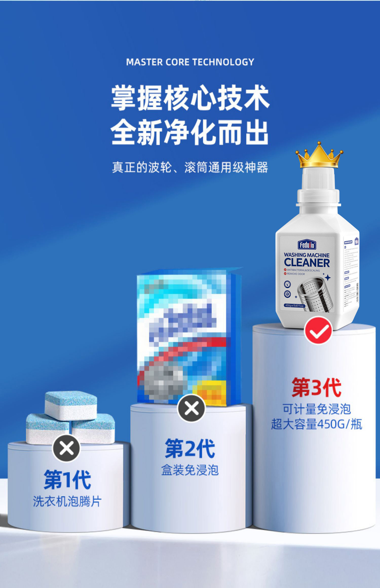 Washing Machine Drum Cleaner, Special Cleaning Agent for Drum-Type Machines, Powerful Stain Removal, Sterilization, Descaling, and Cleaning Agent
