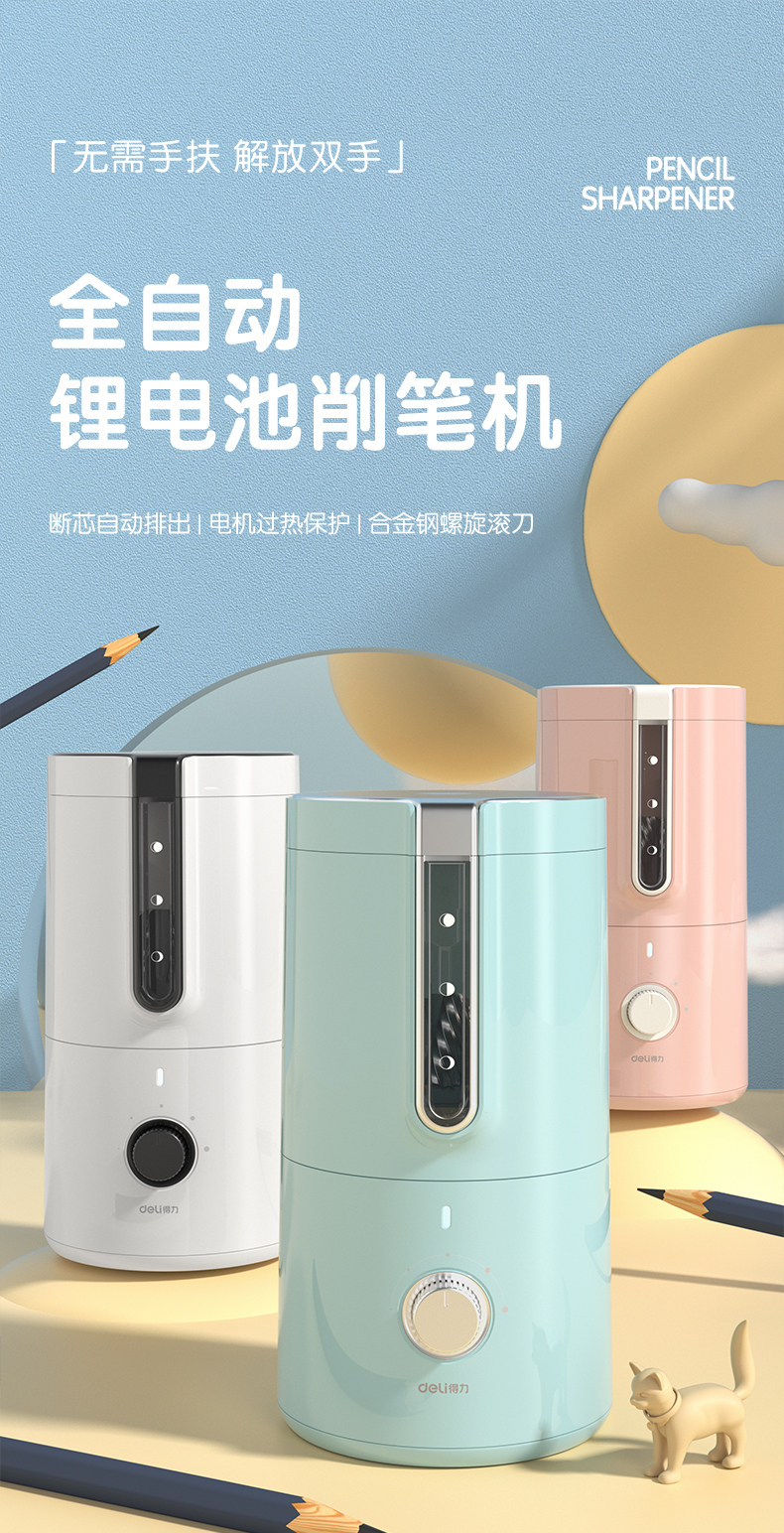 Deli Fully Automatic Electric Pencil Sharpener for Elementary School Students, Pencil Sharpener, Pencil Cutter, Kindergarten Pencil Sharpener, Children's Stationery Gift Box, Automatic Pencil Sharpener, Pencil Cutter