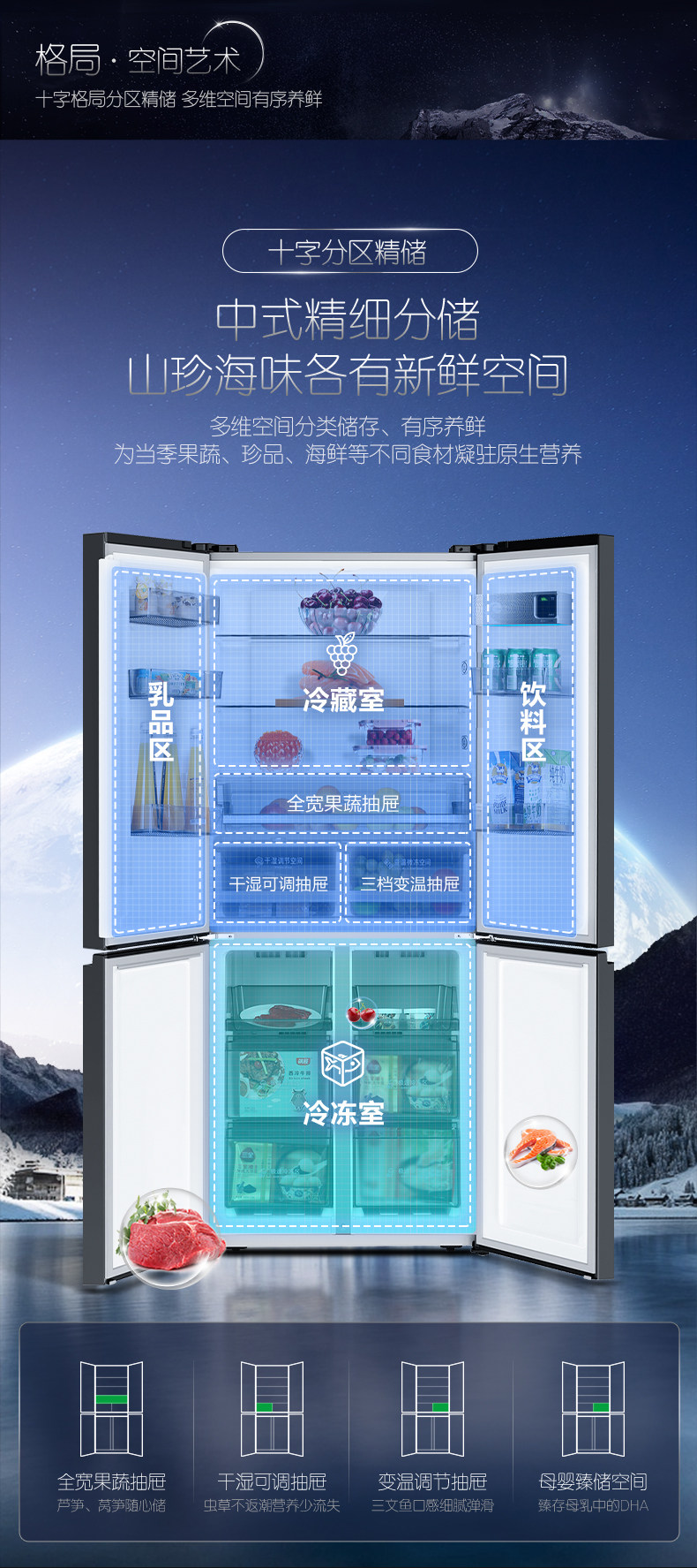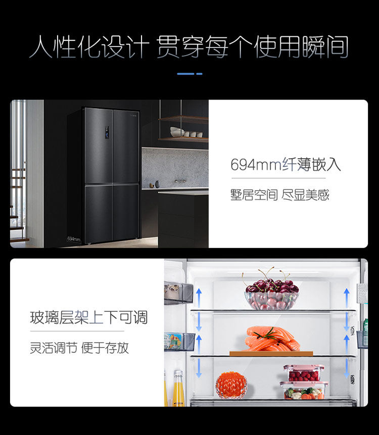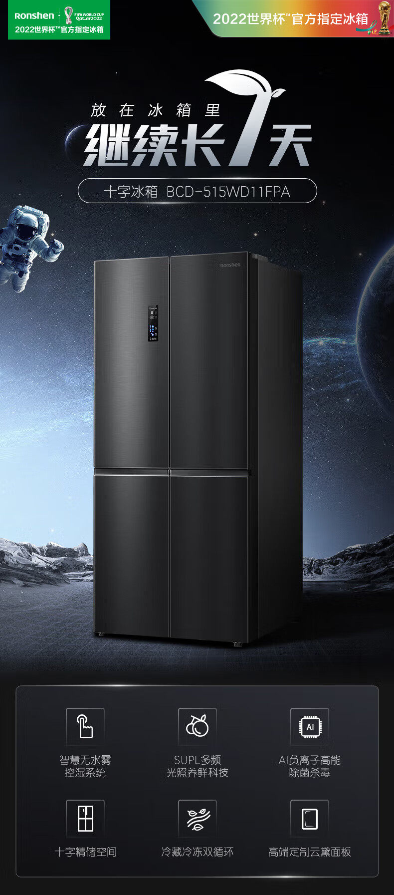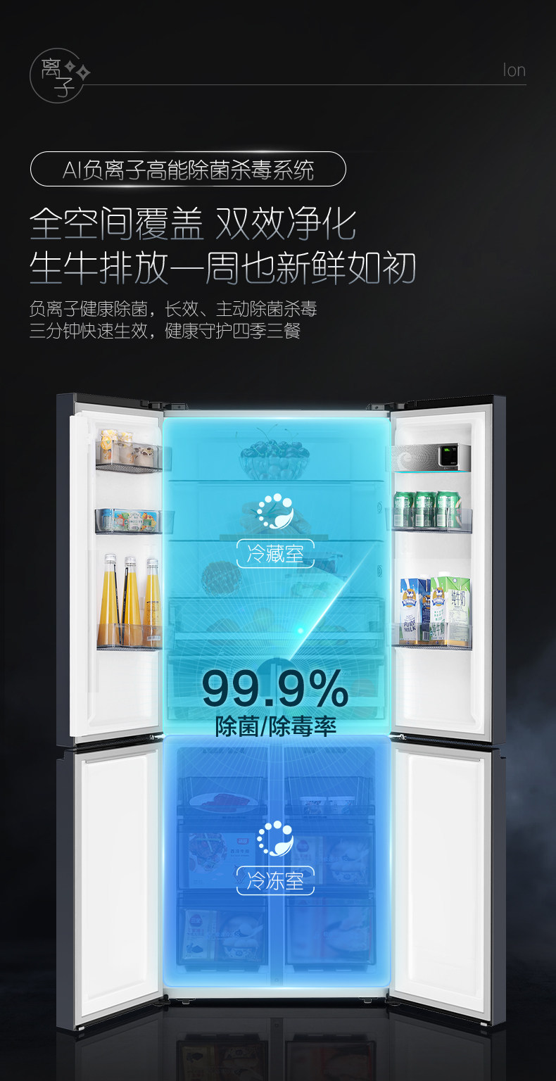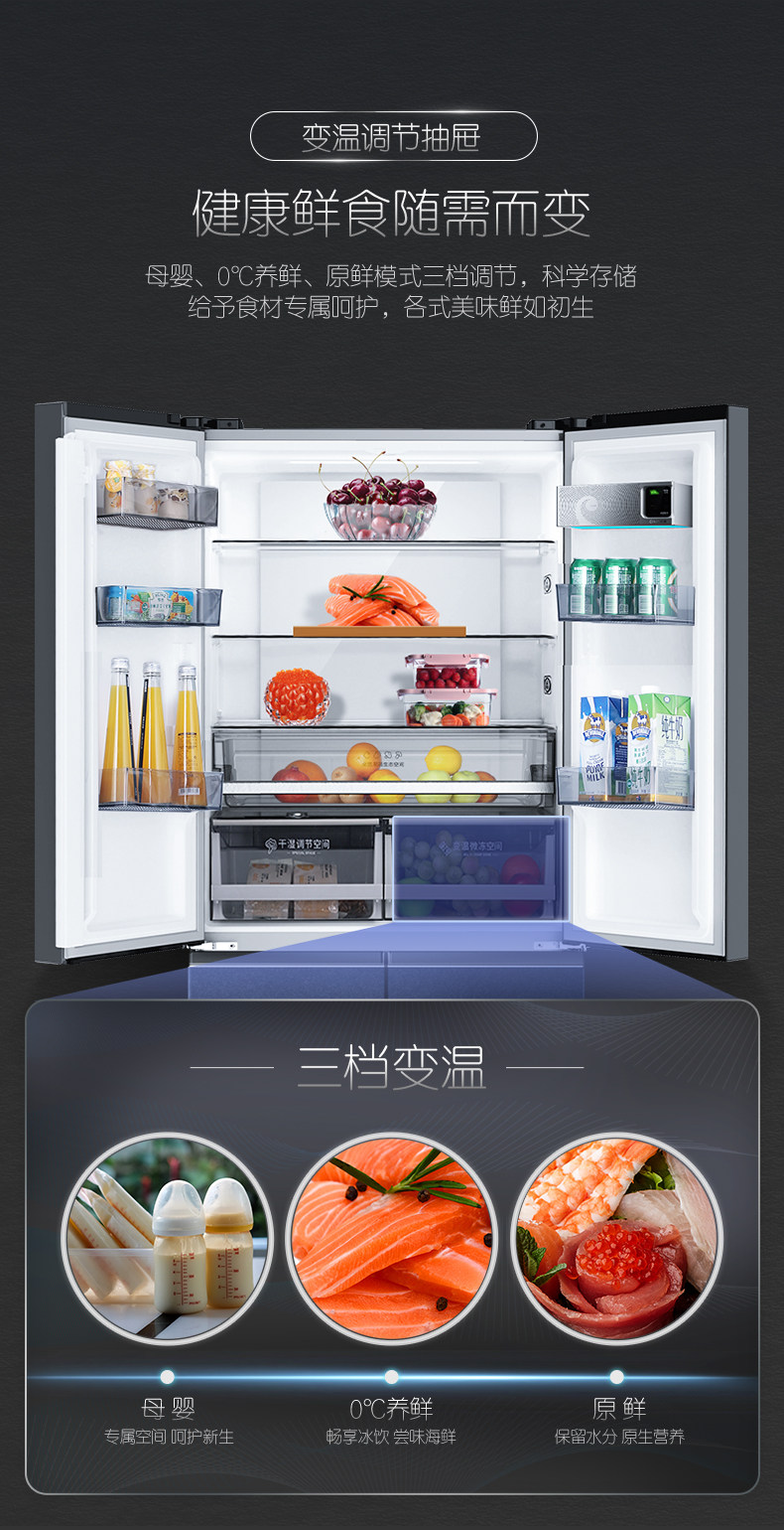Rongsheng Refrigerator Cross-Door Four-Door First-Level Frequency Conversion Frost-Free Sterilization and Odor Removal Bcd-515Wd11Fpa