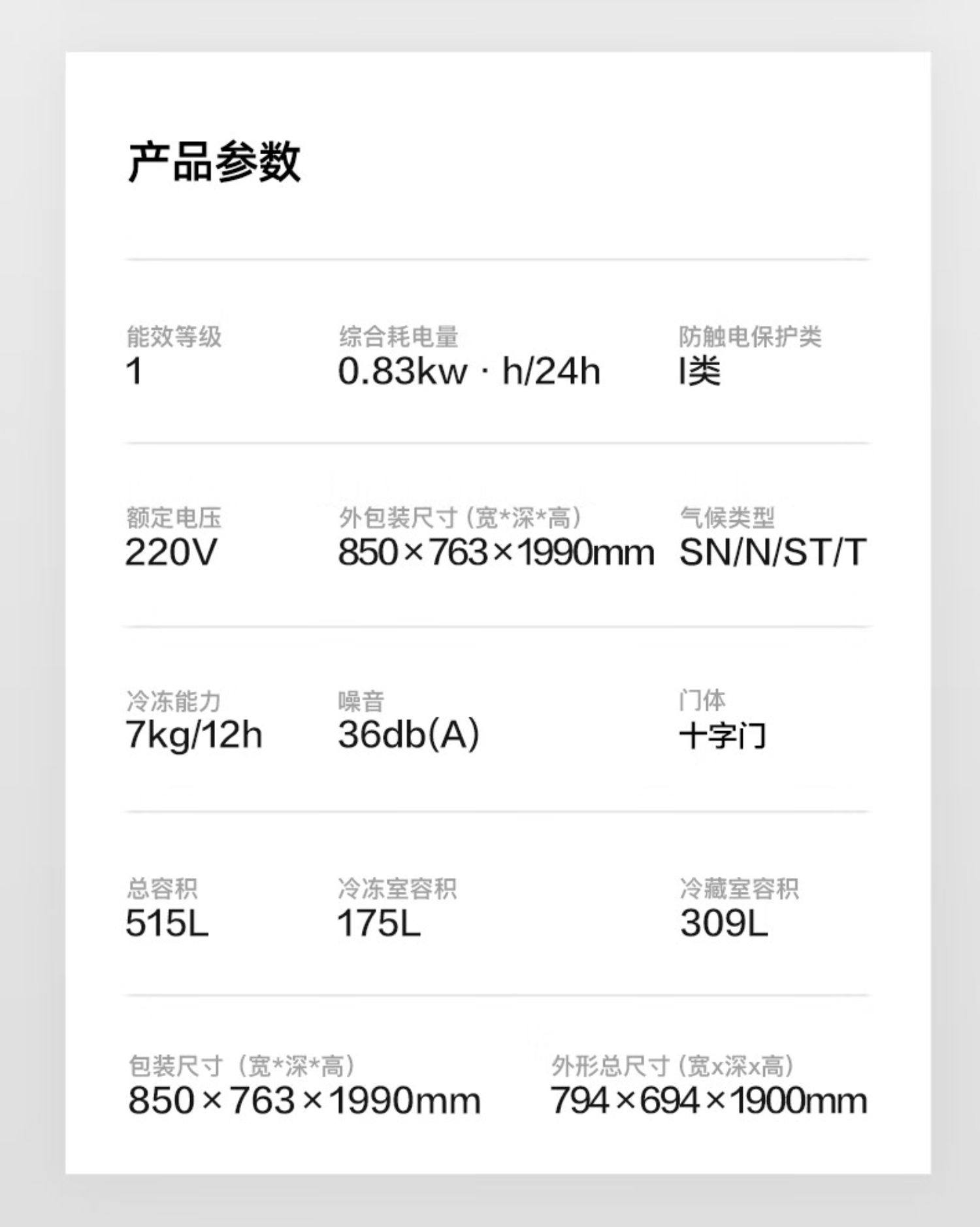 | Total Capacity | 515L |