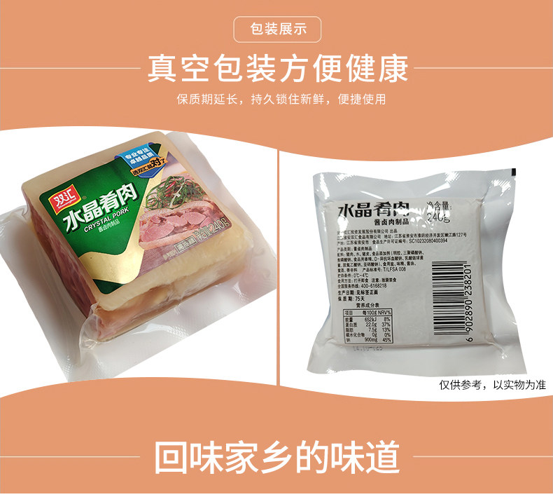 | Taste | Crystal Pork 240g*2 Pack,Crystal Pork 240g*3 Packs,Crystal Pork 240g*5 Packs,Crystal Pork 240g*15 Packs,Jinzhou 220g*2 Pieces,Jinzhou 220g*3 Pieces,Jinzhou 220g*5 Pieces,Jinzhi 220g*20 Pieces [Full Box Discount Wholesale Price],Braised Pork Head Meat 420g*1 Bag,Braised Pork Head Meat 420g*3 Bags,Braised Pork Head Meat 420g*4 Bags,Braised Pork Head Meat 420g*10 Bags [Full Box Discount Wholesale Price],Jin Elbow/Roast Meat/1 Piece Each [Actual Hair 2-Piece Combination Pack],Jinzhou/Roast Meat/Pork Head Meat [Real Hair 3-Piece Set] |