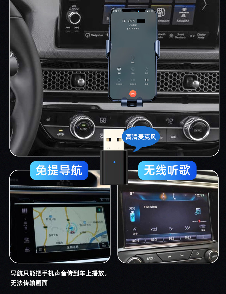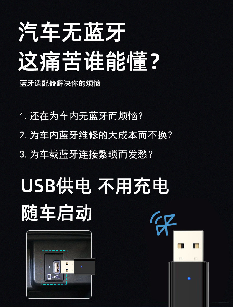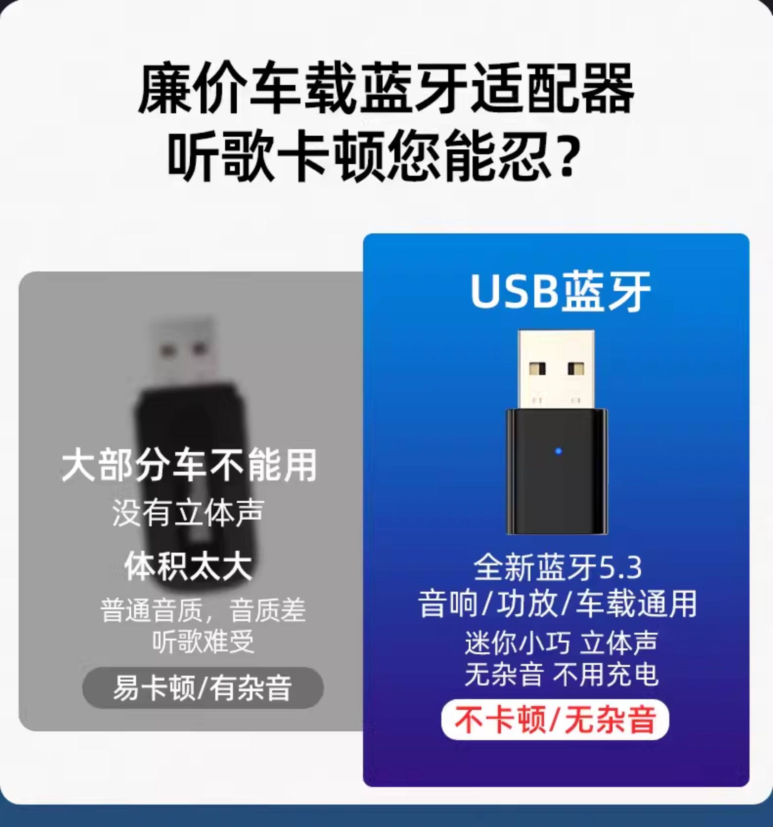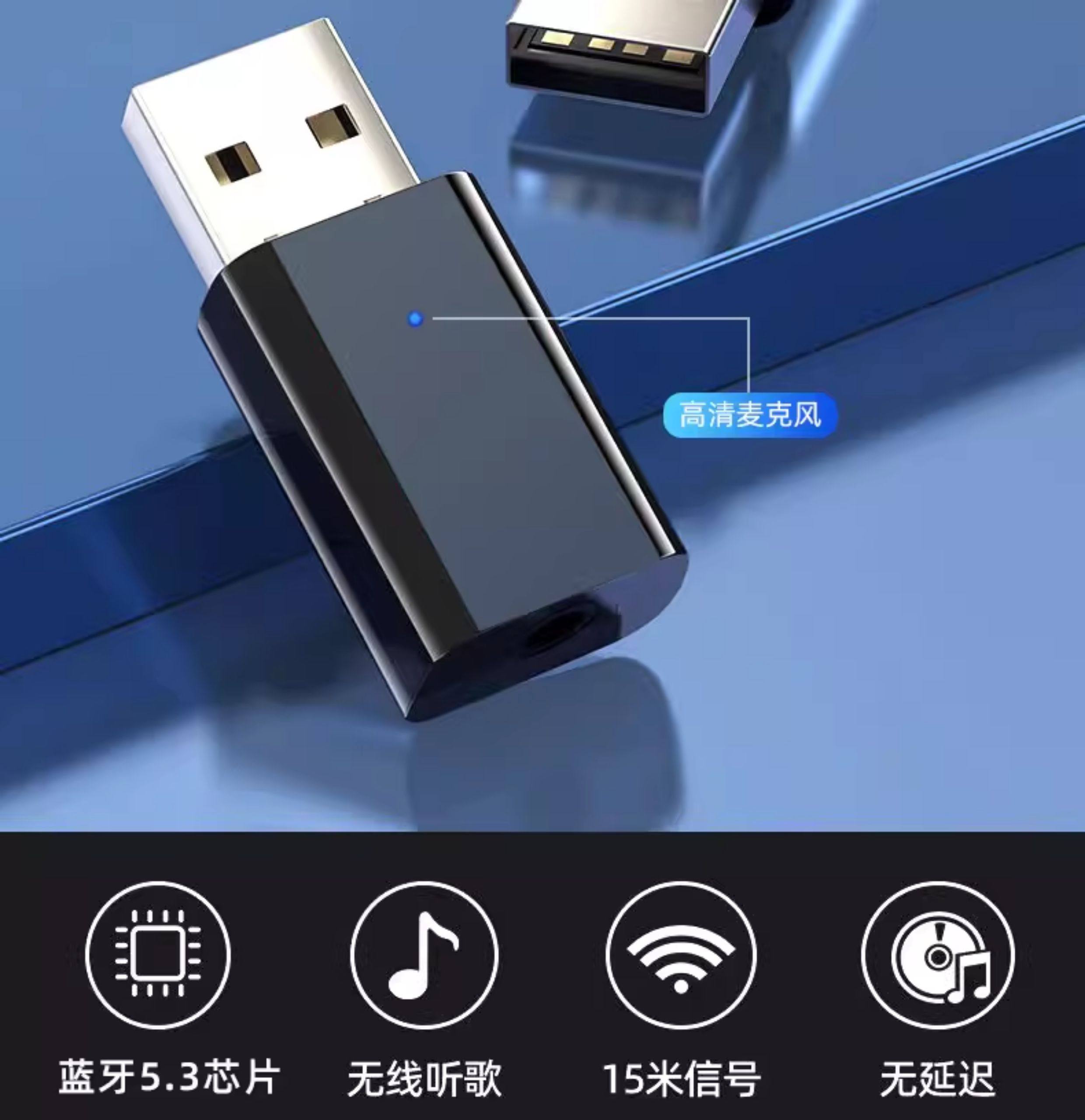 USB Bluetooth Receiver Car-Mounted 5.3 Lossless Music Call Stereo Home Audio Amplifier Wireless Adapter
