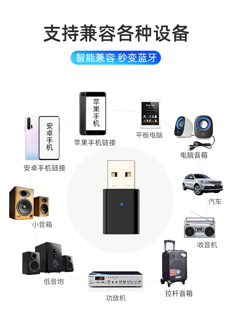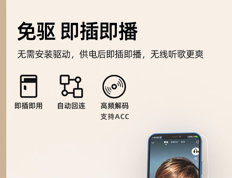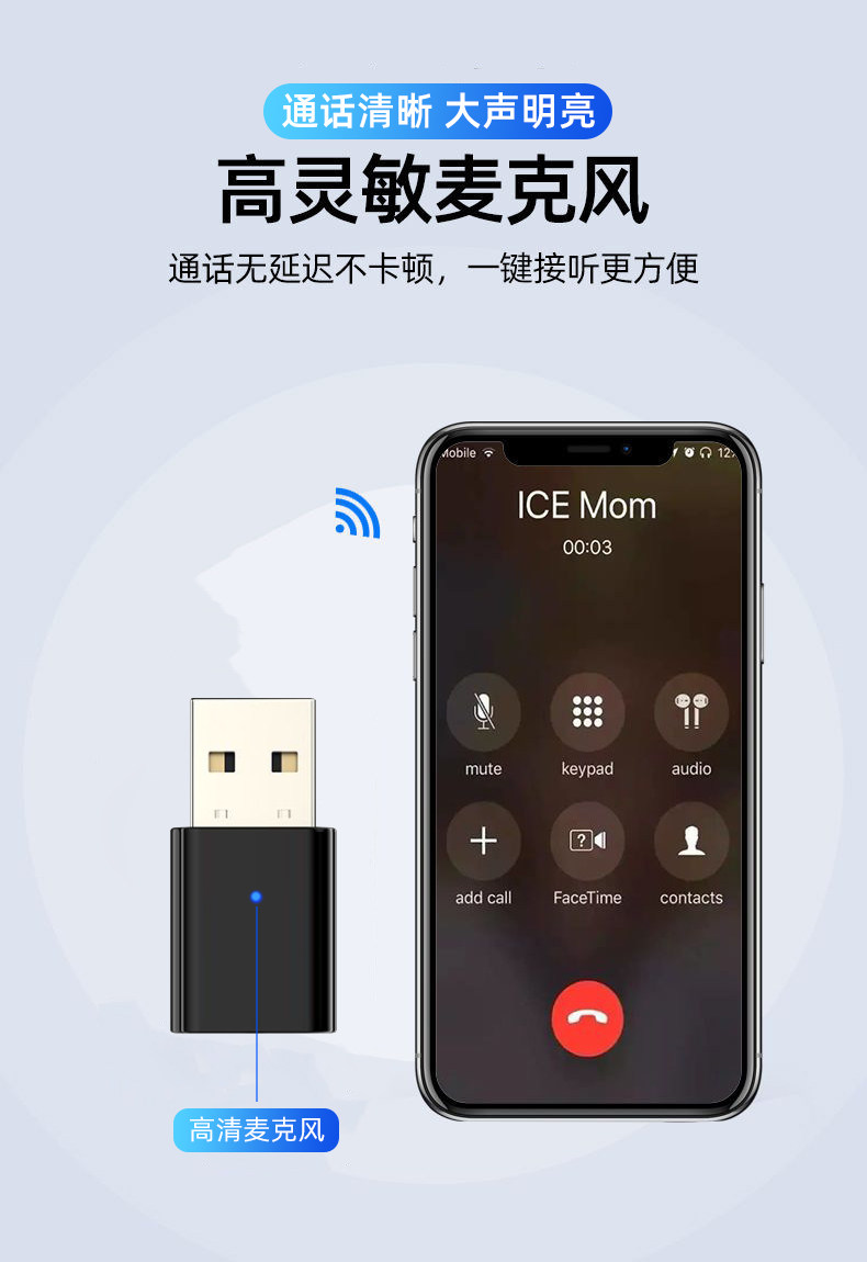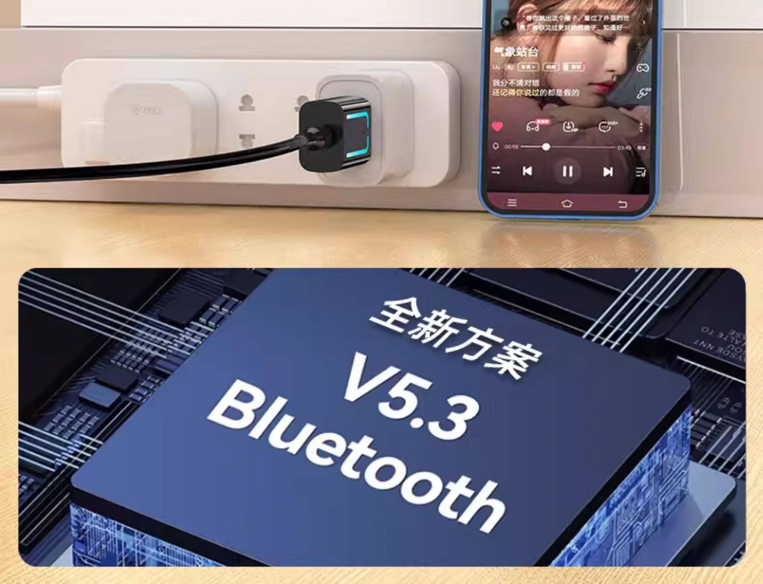 USB Bluetooth Receiver Car-Mounted 5.3 Lossless Music Call Stereo Home Audio Amplifier Wireless Adapter