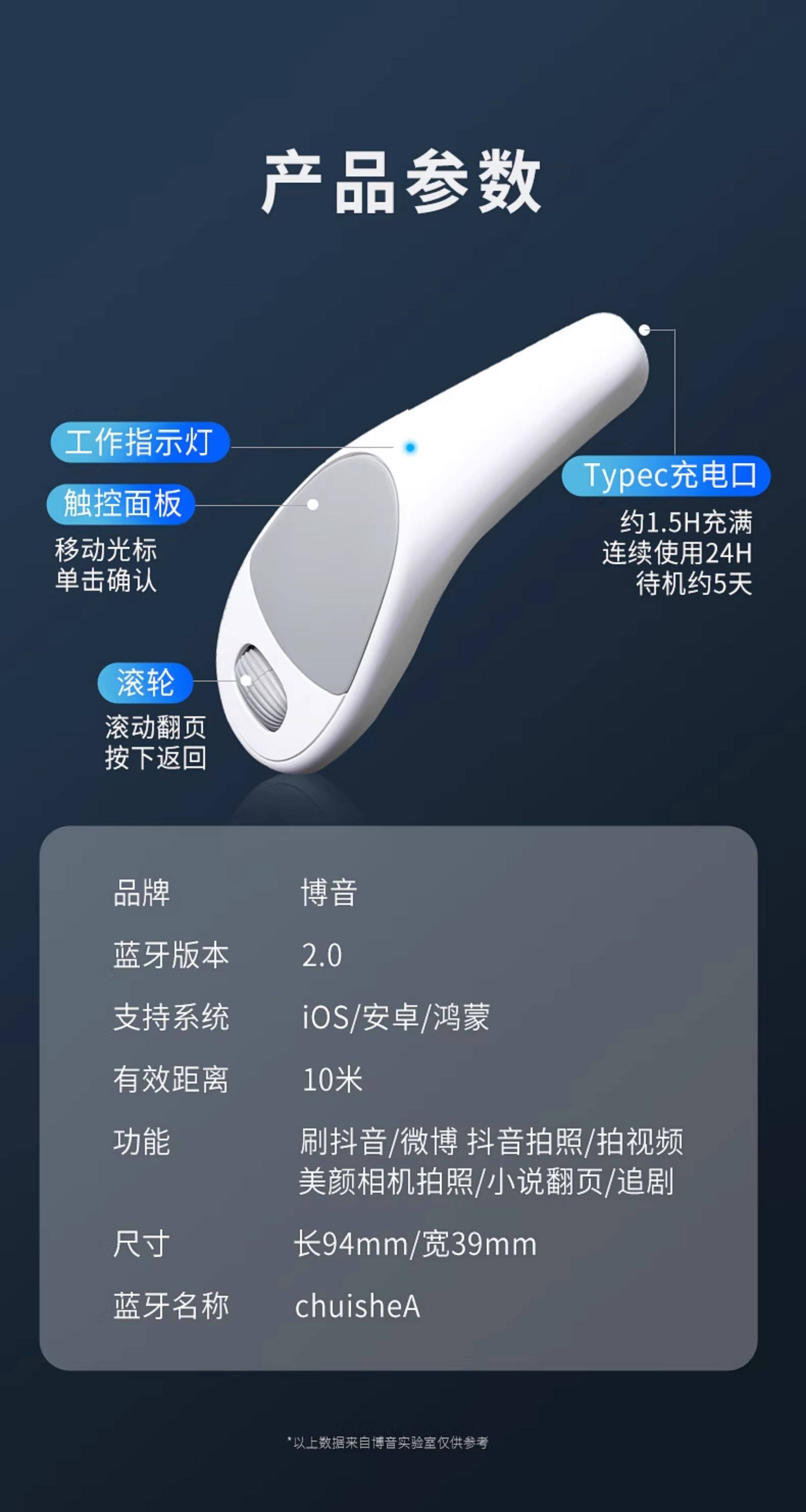 Boyin Is Suitable for Apple Phones, iPad Remote Control, Mouse, Bluetooth Controller, Photo-Taking, Tiktok Tool, Novel Reading Page-Turner, Multi-Functional Lazy Phone Video Browsing Button, Selfie Shutter