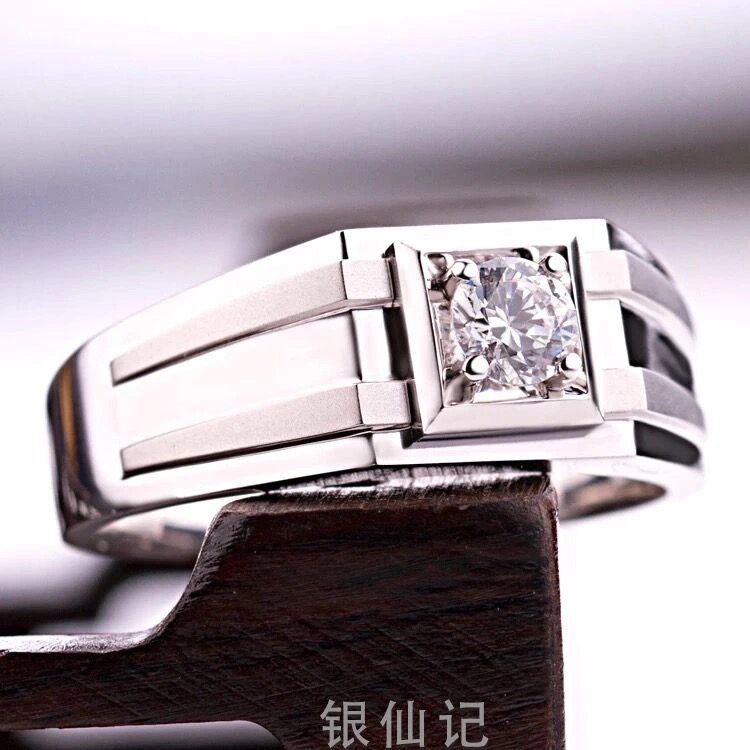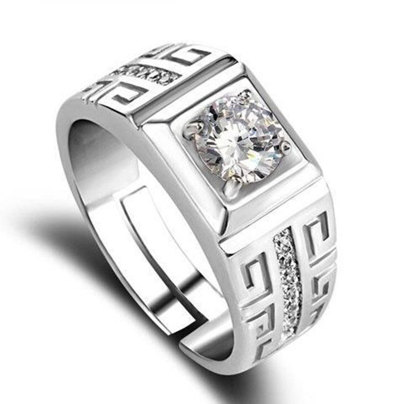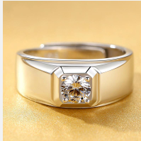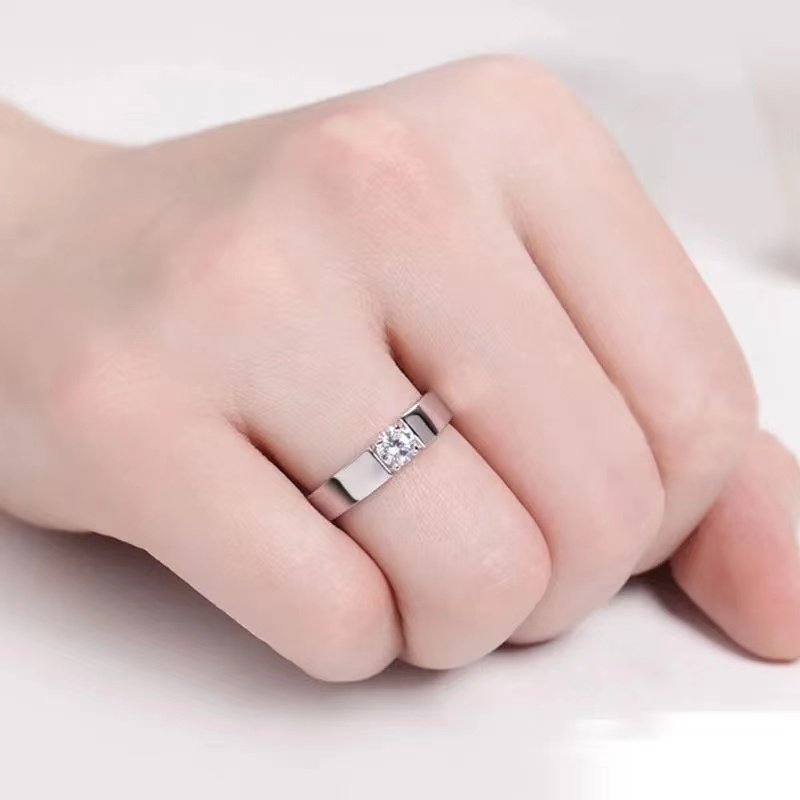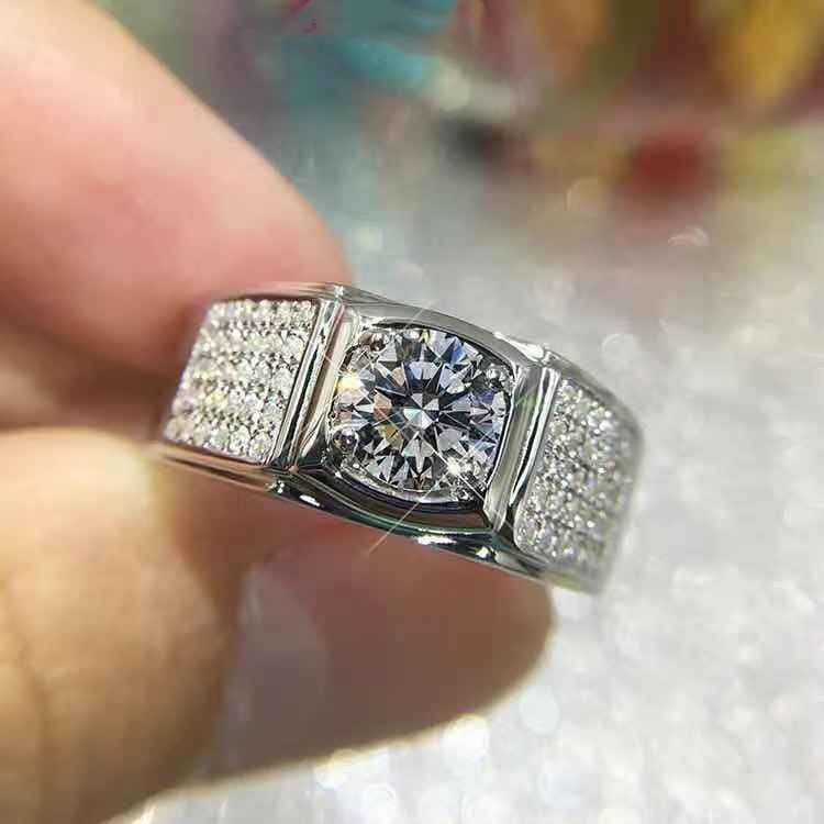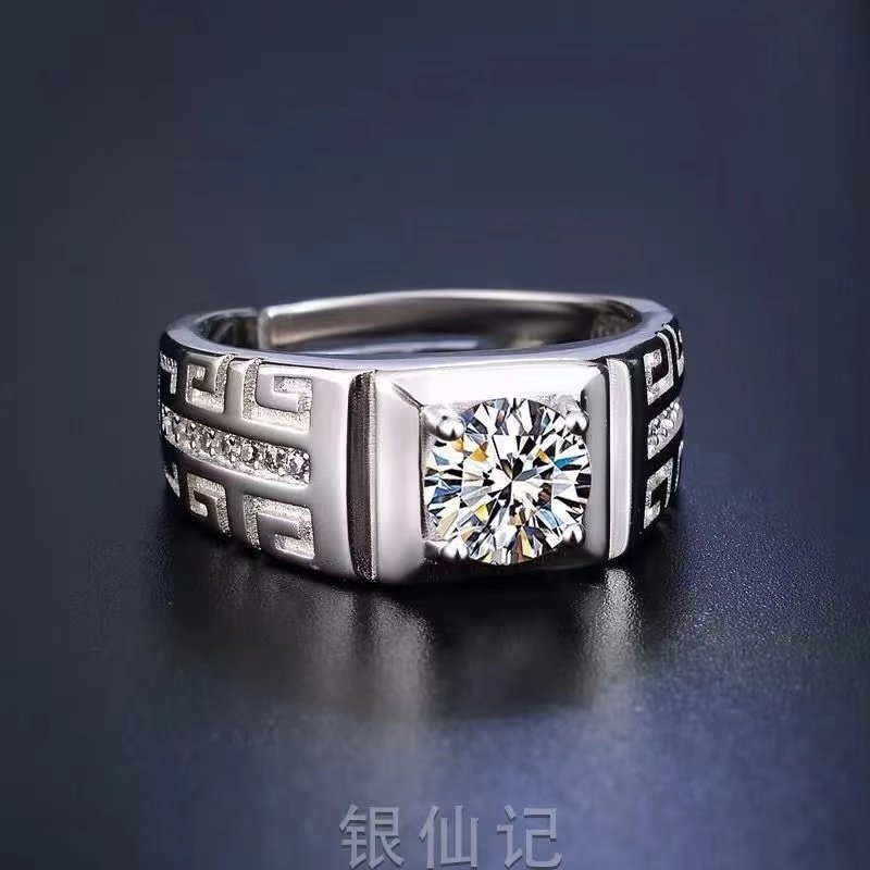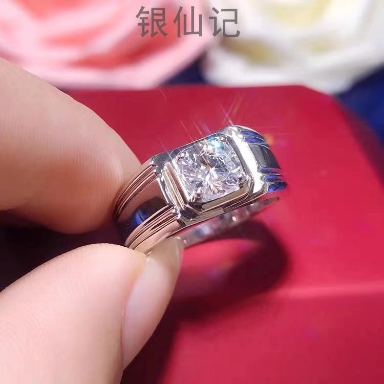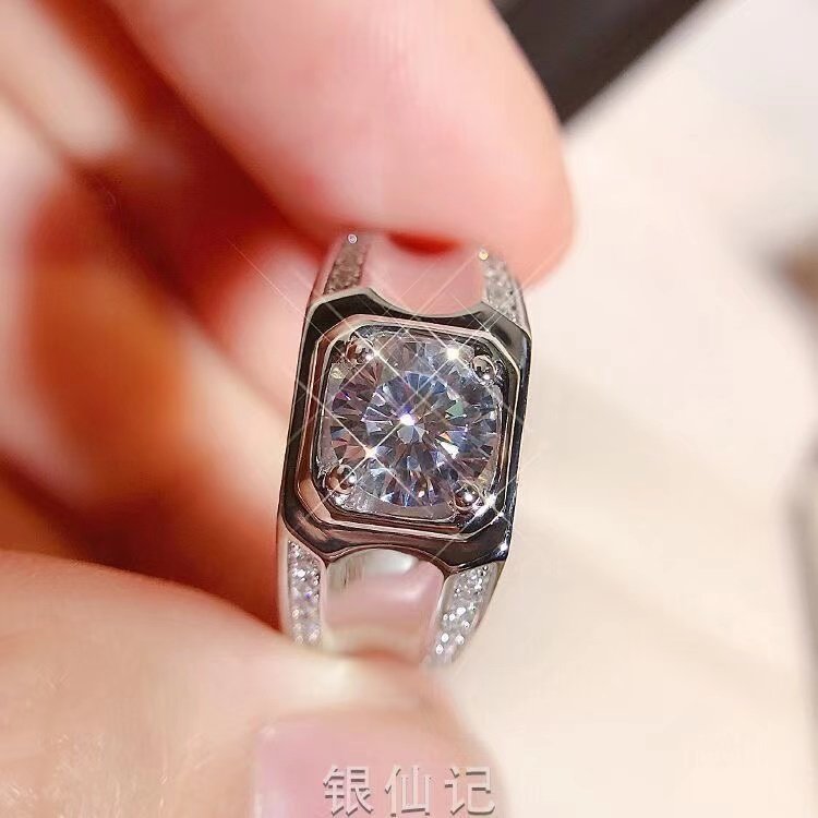 [Ten Times Compensation for Any Counterfeit]1 Carat Imitation Moissanite Ring 925 Men's Bold Diamond Ring Korean Style Adjustable Ring Trendy