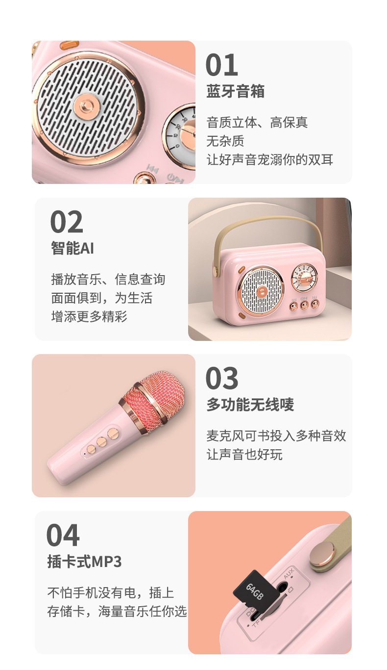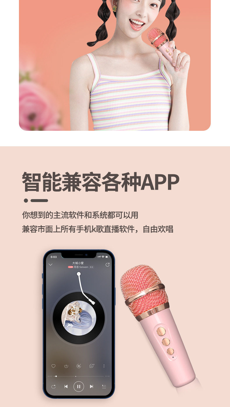 | Color Classification | Sakura Powder[Wireless Microphone/Bluetooth/6 Voice Changing Modes/Card],Mint Green[Wireless Microphone/Bluetooth/6 Voice Changing Modes/Card] |