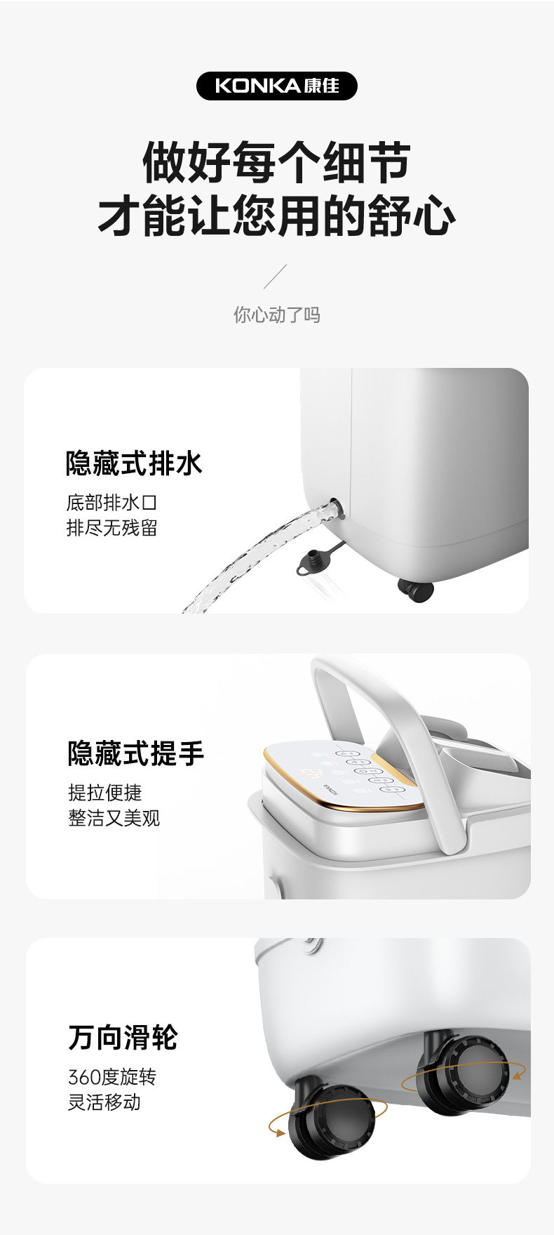| Color Classification | [Konka Fully Equipped with Deep Bucket] 7 Massage Areas + Circulating Heating + Deep Bucket + 4 Intelligent Modes + Acupressure Massage Beads + Intelligent Temperature Control + 12D Bionic Massage + Free Foot Bath Bag,【Top-Of-The-Line Huawei Hilink Ecosystem Product】Mobile App Interconnectivity / 4 Smart Modes + 12D Massage + 7 Massage Programs + Circulating Heating + Medicine Tray + Wireless Temperature Control + Complete Foot Bath Gift Set,[Blue·Sterilization|Surf Fountain|【Premium Foot Spa Pro】7 Massage Zones + Circulating Heating + 4 Smart Modes + Acupressure Massage Beads with Smart Temperature Control + 12D Bionic Massage + Medicine Tray + Free Foot Soak Pack,[White·Sterilization|Surf Fountain|【Premium Foot Spa Pro】7 Massage Zones + Circulating Heating + 4 Smart Modes + Acupressure Massage Beads with Smart Temperature Control + 12D Bionic Massage + Medicine Tray + Free Foot Soak Pack,Upgrade [Fountain Shower Sterilization Top Model/Blue]✅Uv Light (99.99% Sterilization Rate) + Extra-Large & Widened Tub + 4 Health & Wellness Modes + 6 Sets of Tai Chi Massage + 7 Massage Roller Plates + Smart Constant Temperature Control + Circulating Heating + Wireless Remote Control,Upgrade [Fountain Shower Sterilization Top Model/White]✅Uv Light (99.99% Sterilization Rate) + Extra-Large & Widened Tub + 4 Health & Wellness Modes + 6 Sets of Tai Chi Massage + 7 Massage Roller Plates + Smart Constant Temperature Control + Circulating Heating + Wireless Remote Control,[Konka Beauty Steaming Model] 45cm High Depth + Fountain Foot Bath + Circulating Heating + Frequency Conversion Power Saving + Tai Chi Massage Wheel + Intelligent Temperature Control + Foot Bath Gift Pack,[Konka Deep Sleep Model] 48cm Deep + Fountain Foot Bath + Circulating Heating + Frequency Conversion Power Saving + Tai Chi Massage Wheel + Intelligent Temperature Control + Foot Bath Gift Pack,Enjoy [Sterilizing Fumigation Bucket]❤️Upgraded Uv Purple Light Sterilization + Automatic Massage and Relaxation + Touch Panel + Medicine Box Design + Circulating Heating + Tai Chi Massage Wheel + Intelligent Temperature Control + Foot Bath Gift Pack,. |