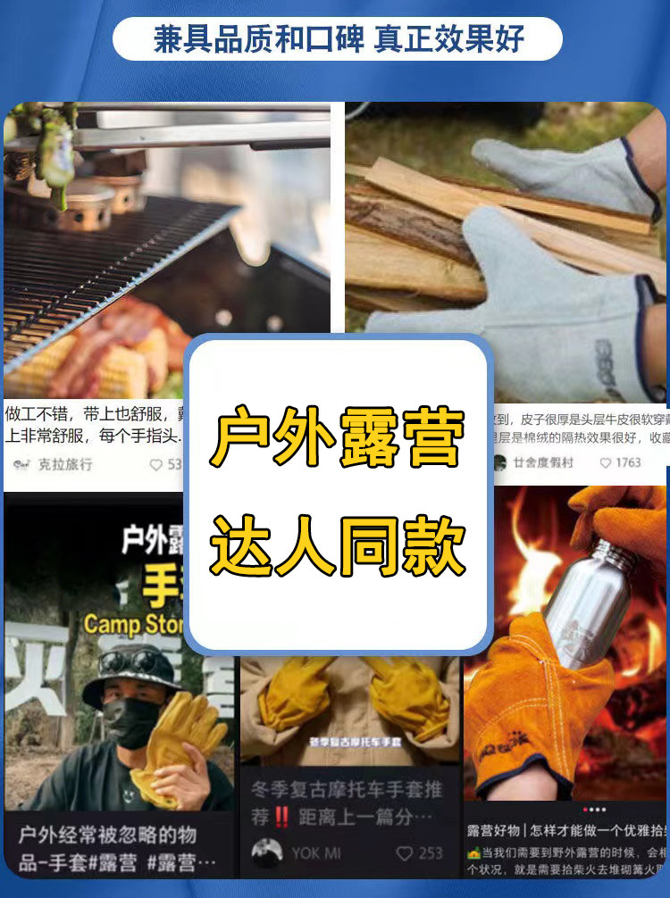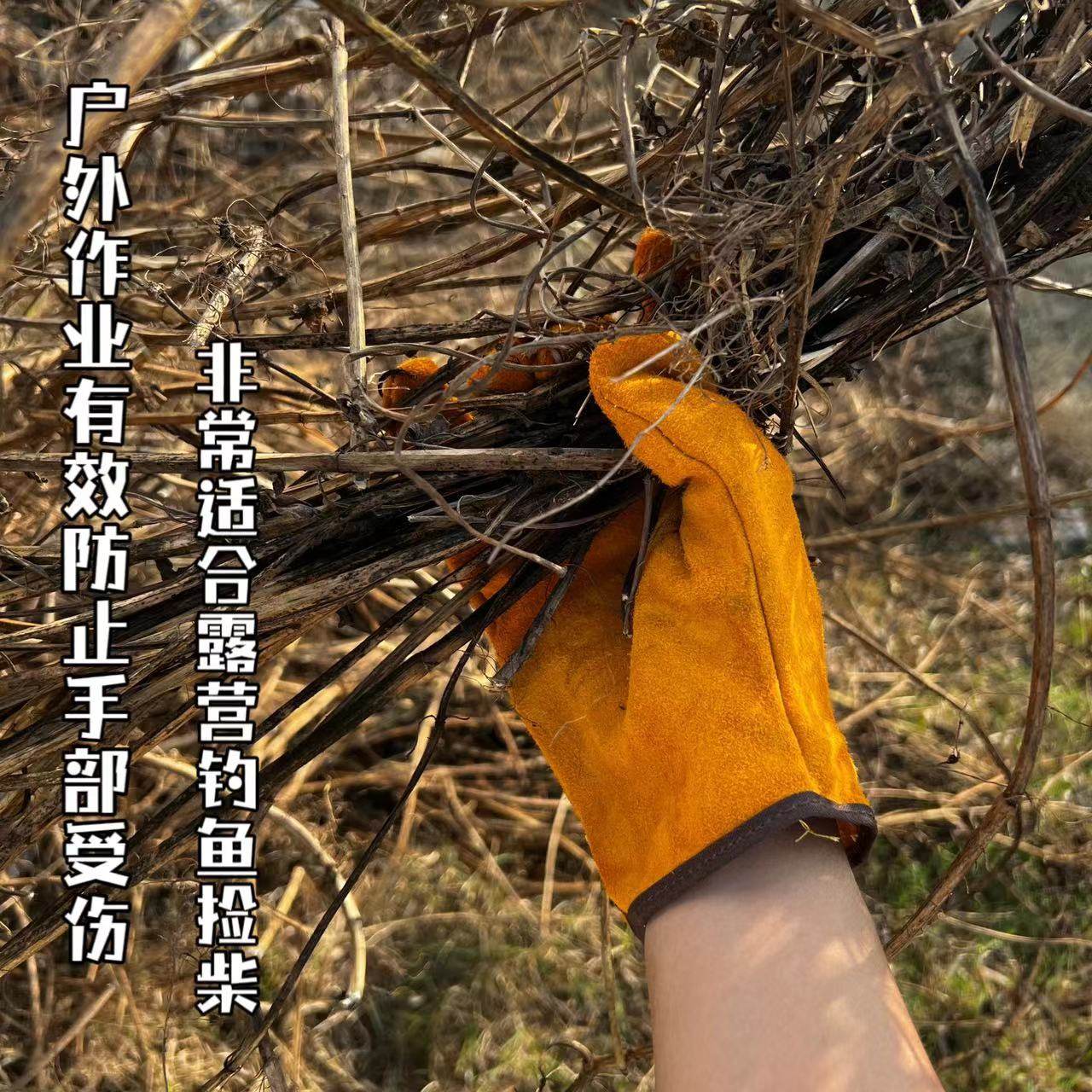 Thickened Cowhide Outdoor Protective Gloves, Heat-Insulating Gloves, Outdoor Gloves, Camping Barbecue Labor Protection Gloves, Wear-Resistant and Anti-Scalding