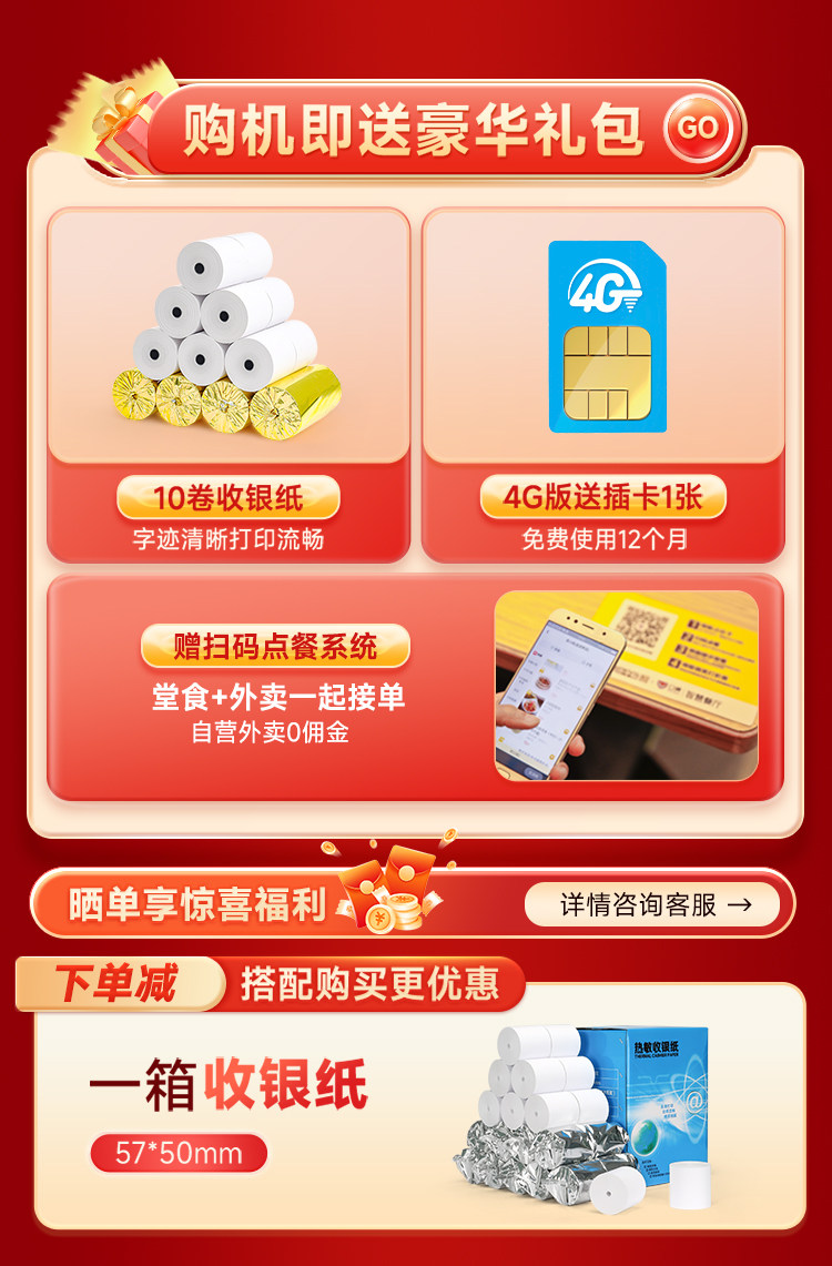 | Color Classification | ✅Applicable to Meituan, Ele.Me, Jd Takeaway, Douyin Takeaway, Douyin Hourly Delivery, Meituan Group Buying, Kuaituantuan, Collect Money, Yinbao, Youzan and Other Mini Programs,✅"Golden Duo! Classic Takeout Printer – Orders Rolling in Like a Boss!",T58H [Dual-Band Wifi+Bluetooth+Usb+Real Voice+Hand-Torn Paper],T58H [4G+Usb+Real Voice+Hand-Torn Paper],T58H [4G+Bluetooth+Usb+Real Voice+Hand-Torn Paper],T58H [4g + Dual-Band Wifi + Bluetooth + USB + Real-Person Voice Prompts + Manual Tear-Off],T58H [4g + Dual-Band Wifi + USB + Real-Person Voice Prompts + Manual Tear-Off],C58H [Dual-Band Wifi+Bluetooth+Usb+Real Voice+Automatic Paper Cutting],C58H [4G+Usb+Real Voice+Automatic Paper Cutting],C58H [4g + Dual-Band Wifi + USB + Real-Person Voice Guidance + Automatic Paper Cutting],C58H [4g + Dual-Band Wifi + Bluetooth + USB + Real-Person Voice Guidance + Automatic Paper Cutting],(Special Offer) 58Iint [Dual-Band Wifi + USB + Didi Ai Voice Control + Manual Tear-Off],(Hot-Selling Model) 58Iint [Dual-Band Wifi+Usb+Real Voice+Hand-Torn Paper],58Iint [4G+Usb+Real Voice+Hand-Torn Paper],❤️❤️❤️↓↓↓The Red Model Is Newly Launched! Make Your Takeout Business so Popular That You Can’T Negotiate↓↓↓,T58H Red Edition [Dual-Band Wifi + Bluetooth + USB + Real-Person Voice Prompts + Manual Tear-Off],T58H Red Edition [4g + Bluetooth + USB + Real-Person Voice + Manual Tear-Off],T58H Red Edition [4g + Dual-Band Wifi + Bluetooth + USB + Real-Person Voice Prompts + Manual Tear-Off],C58H Red Model [Dual-Band Wifi+Bluetooth+Usb+Real Voice+Automatic Paper Cutting],C58H Red Model [4G+Dual-Band Wifi+Bluetooth+Usb+Real Voice+Automatic Paper Cutting],✅↓↓↓ (Supports Jd.Com Takeout) Order-Taking/Meal Delivery All-In-One Machine, You Can Immediately Deliver Meals after Receiving the Order "Quickly" ↓↓↓,T503 [Dual-Band Wifi+Bluetooth+Usb+Real Voice] Takeout Order/Delivery,T503 [4G+Bluetooth+Usb+Real Voice] Takeaway Order+Meal Delivery,C503 [Dual-Band Wifi + Bluetooth + USB + Real Voice + Automatic Paper Cutting] Takeout Order + Meal Delivery,C503 [4g + Bluetooth + USB + Live Voice Guidance + Automatic Paper Dispensing] Takeout Order Acceptance + Food Dispatch,✅ Buy a Machine and Get 10 Rolls of Paper Towels + a Qr Code Ordering App – Perfect for Both Dine-In and Takeout! |