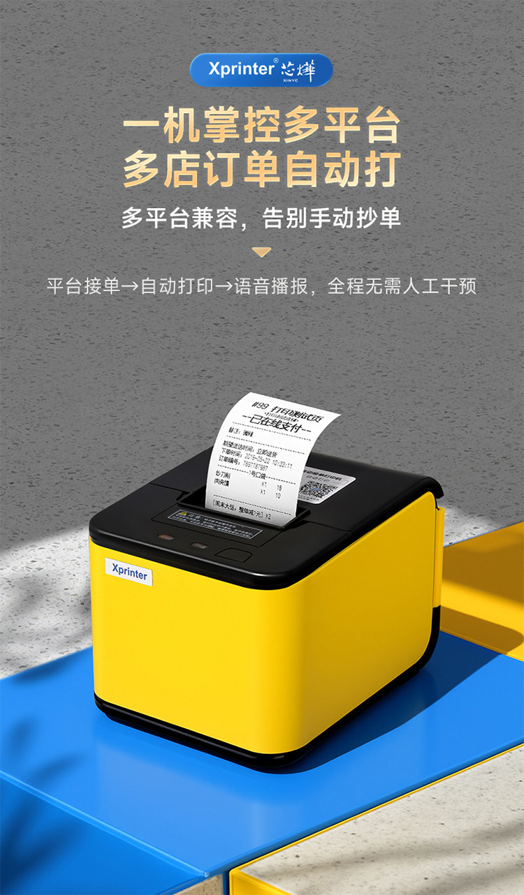 Xinye Jingdong Delivery Printer Is Suitable for Meituan, Ele.Me, and Douyin Mini Programs, Fully Automatic Order-Taking and Printing Machine, Thermal, Wifi, Bluetooth, Automatic Paper Cutting, Dedicated for Restaurant Receipts, All-In-One