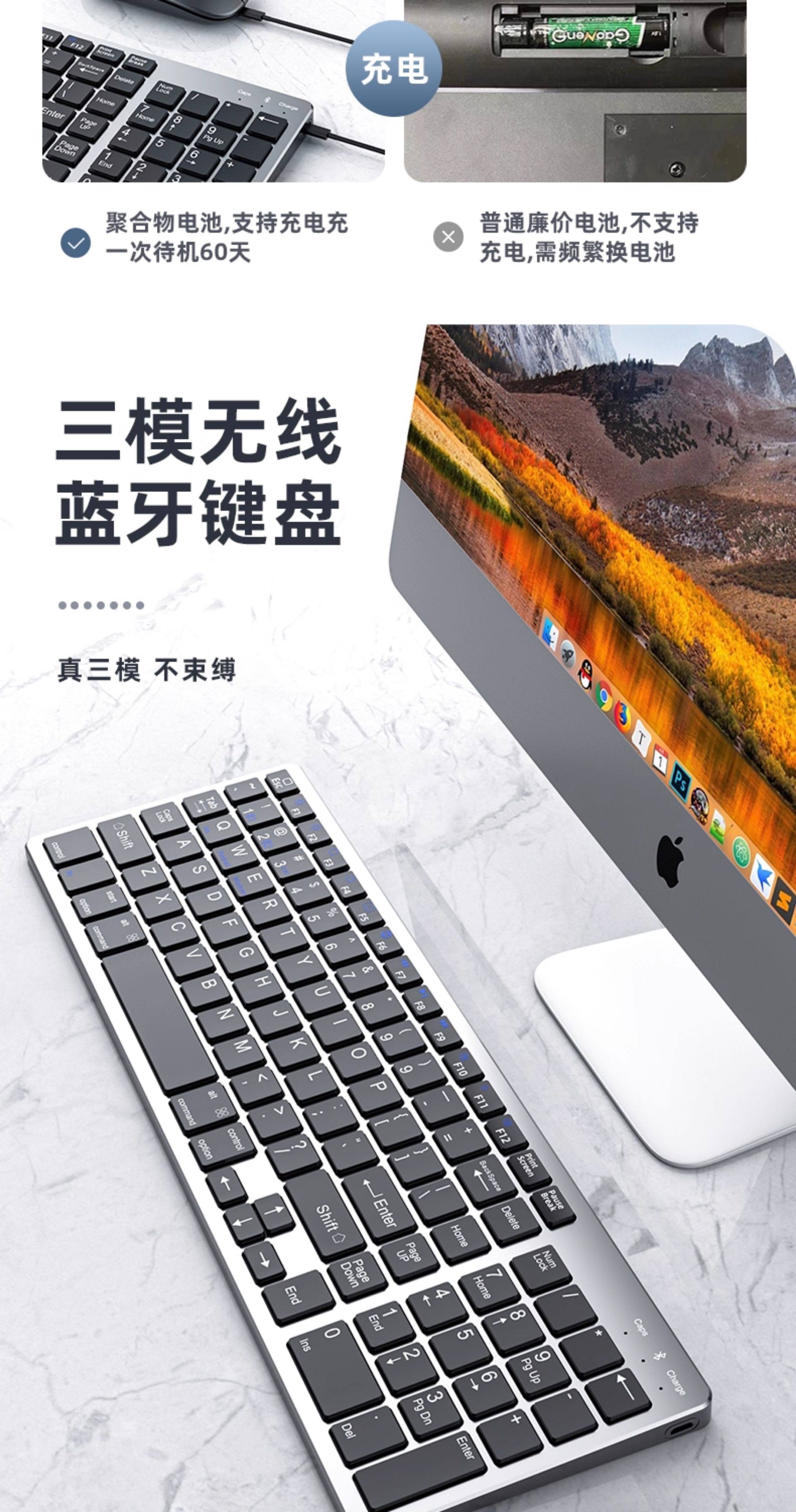 | Color Classification | Space Gray[Smart Three-Mode Single Keyboard]Rechargeable Button Mute,Metallic Silver[Smart Three-Mode Single Keyboard]Rechargeable Button Mute,Space Gray[Smart Three-Mode Keyboard and Mouse Set]Rechargeable Button Mute,Metallic Silver[Smart Three-Mode Keyboard and Mouse Set]Rechargeable Button Mute |