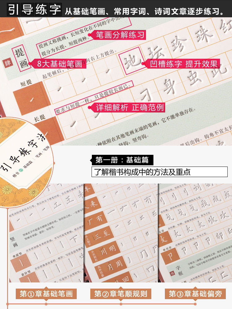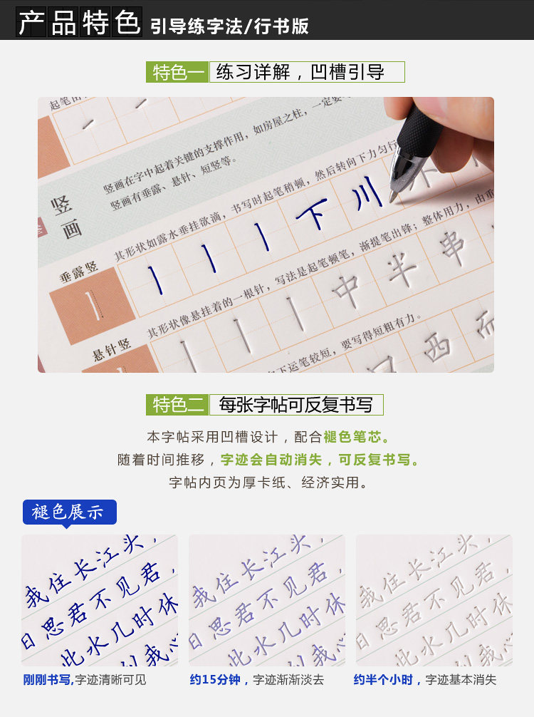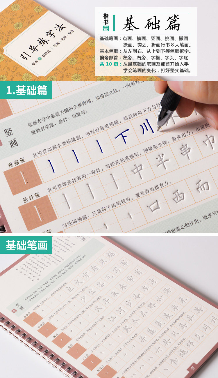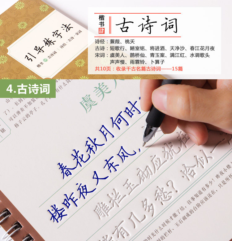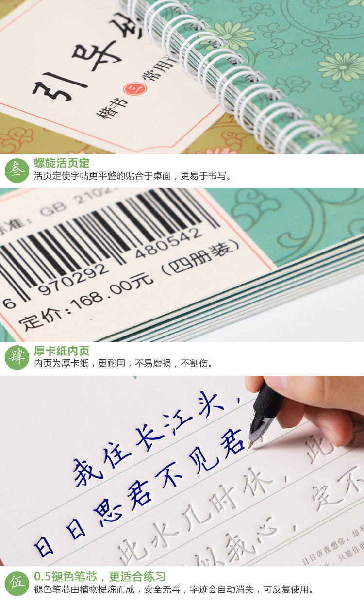 Light Luxury Mo Pin Calligraphy Practice Guide: Regular Script Set, Regular Script Font Copybook, Groove-Type Quick Calligraphy Practice Book, Automatically Disappearing Writing, Reusable