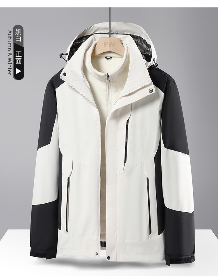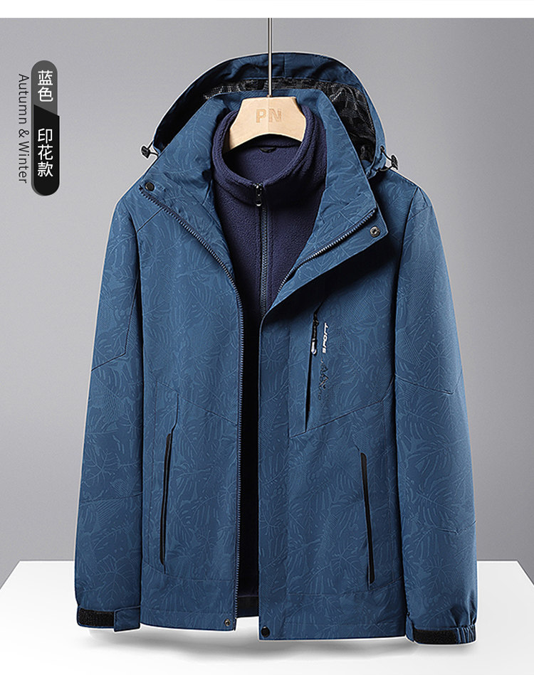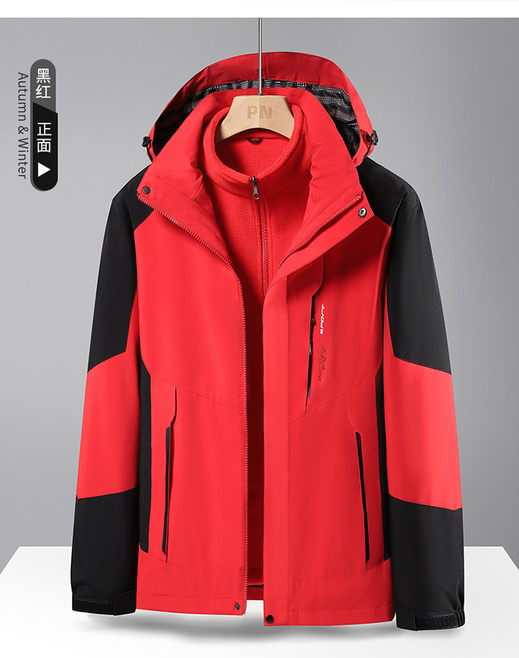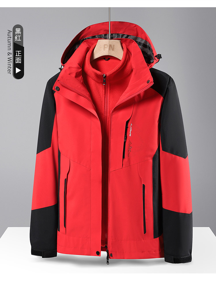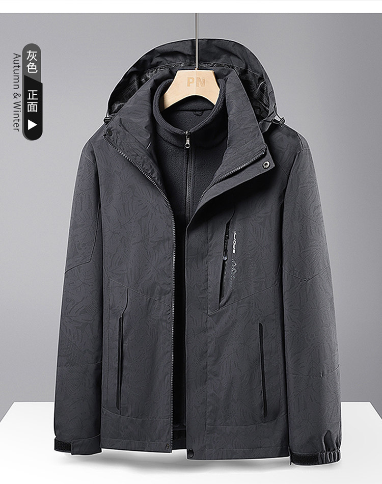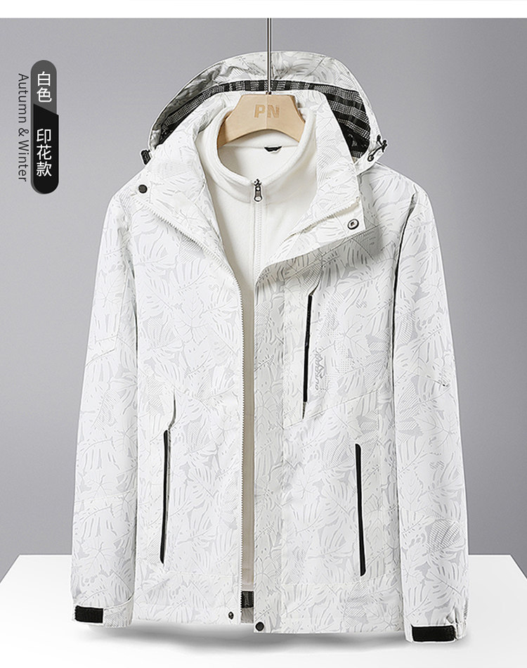 Three-In-One Jacket for Men and Women, Detachable Autumn and Winter New Velvet Thick Trendy Brand Jacket, Maple Leaf Two-Piece Mountaineering Jacket