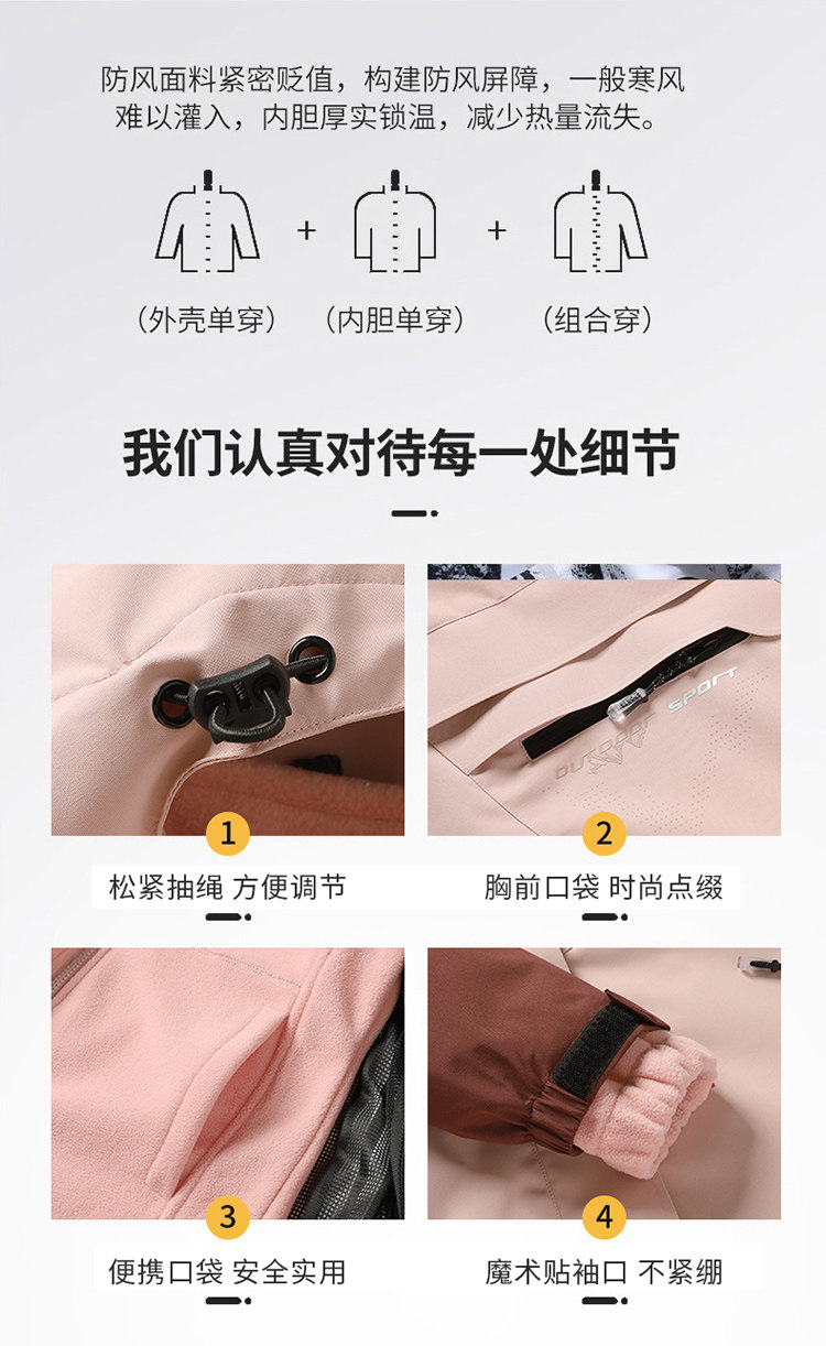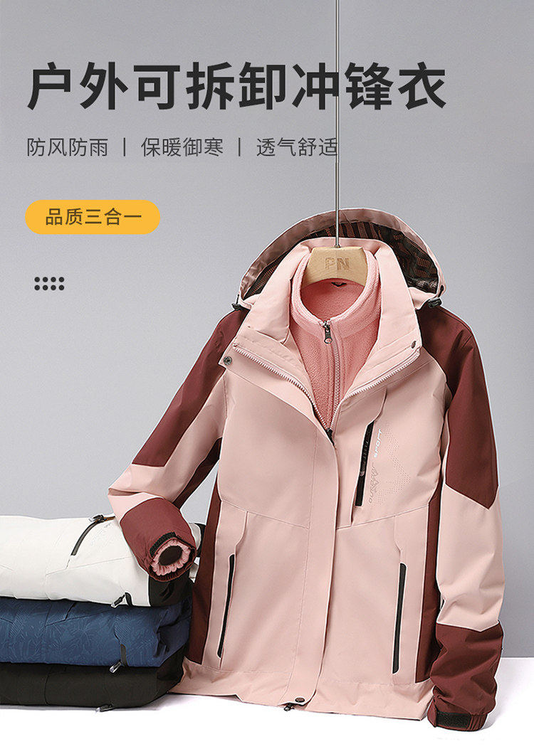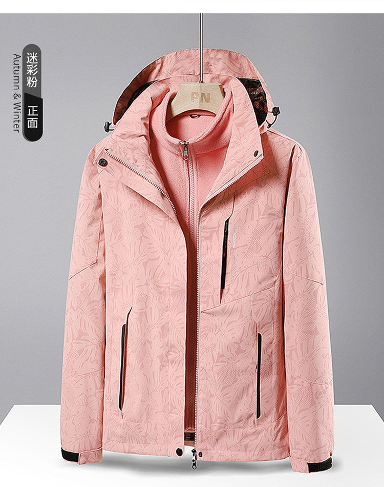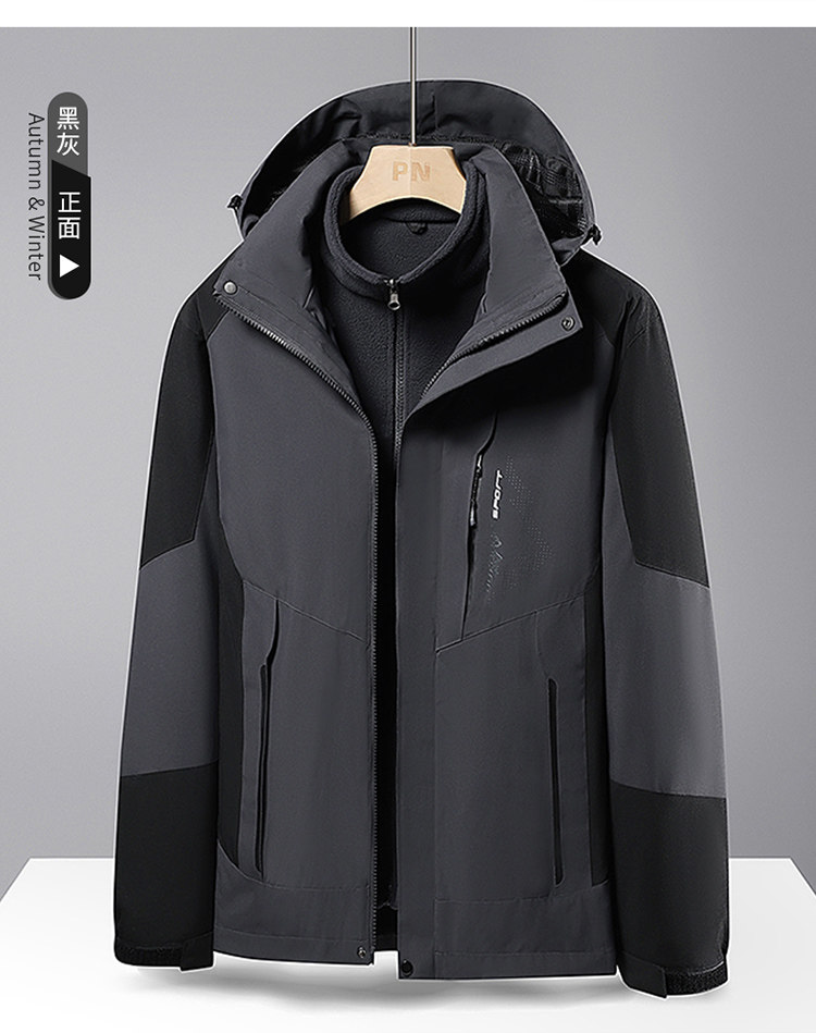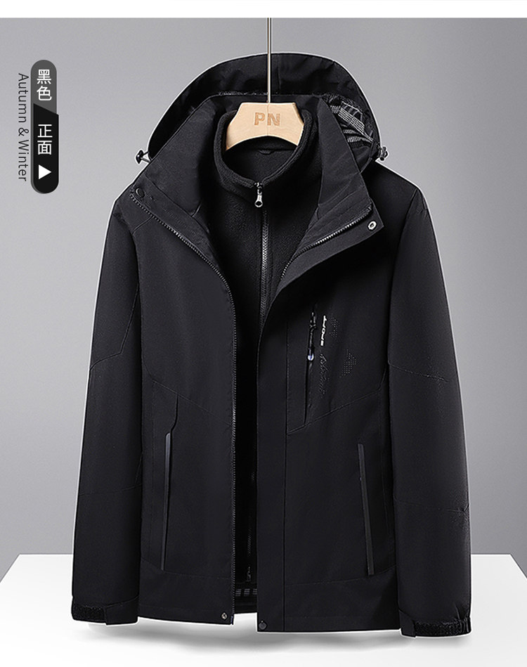 Three-In-One Jacket for Men and Women, Detachable Autumn and Winter New Velvet Thick Trendy Brand Jacket, Maple Leaf Two-Piece Mountaineering Jacket