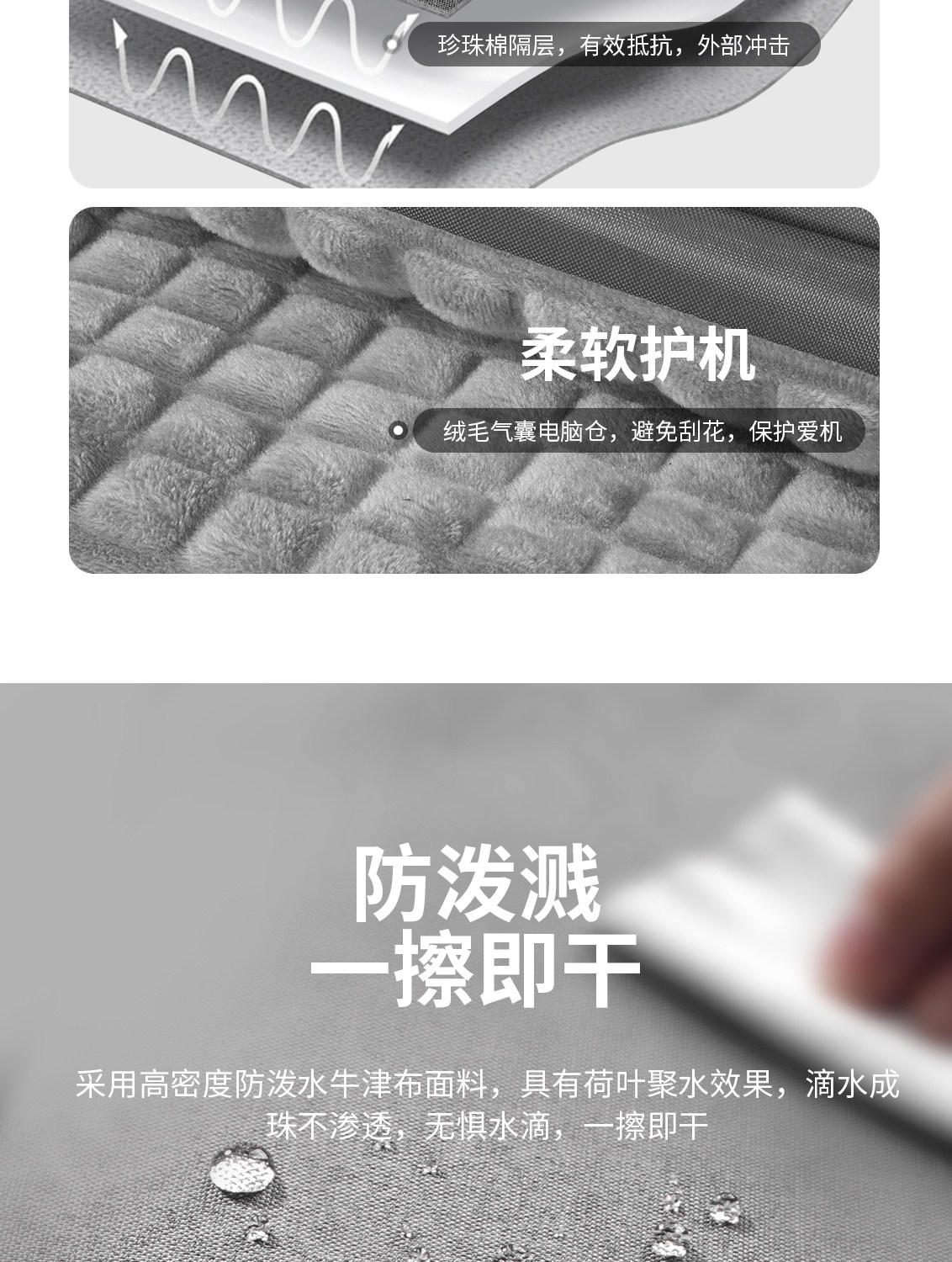 | Color Classification | Double Zipper Large Capacity "Standard Style" - Elegant Black (Thick Shockproof Cotton Lining),Double Zipper Large Capacity "Standard Style" - Gentleman Gray (Thick Shock-Proof Cotton Lining),Double Zipper Large Capacity "Standard Model" - Space Gray (Thick Shock-Proof Cotton Lining),Double Zipper Large Capacity "Standard Style" - Cherry Blossom Pink (Thick Shock-Proof Cotton Lining),Double Zipper Large Capacity "Upgraded Version" - Elegant Black (Double-Sided Plush Ball Shock-Proof Lining),Double Zipper Large Capacity "Upgraded Version" - Gentleman Gray (Double-Sided Plush Ball Shock-Proof Lining),Double Zipper Large Capacity "Upgraded Version" - Deep Space Gray (Double-Sided Plush Ball Shock-Proof Lining),Double Zipper Large Capacity "Upgraded Version" - Sakura Pink (Double-Sided Plush Ball Shock-Proof Lining),Double Zipper Large Capacity "Flagship Edition" - Elegant Black (Five-Wrapped Plush Ball Shock-Proof Lining),Double Zipper Large Capacity "Flagship Edition" - Gentleman Gray (Five-Sided Plush Ball Shock-Proof Lining),Double Zipper Large Capacity "Flagship Edition" - Deep Space Gray (Five-Sided Plush Ball Shock-Proof Lining),Double Zipper Large Capacity "Flagship Edition" - Sakura Pink (Five-Sided Plush Ball Shock-Proof Lining) |