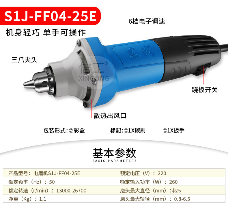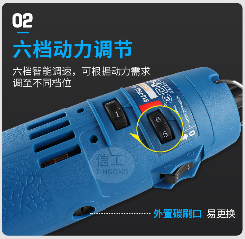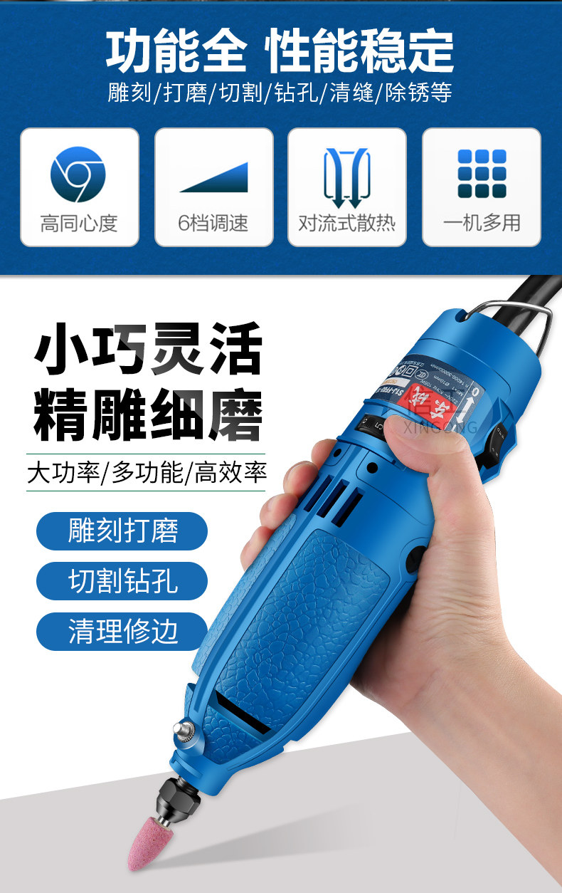 6-Speed Adjustable Electric Grinder, Electric Polishing Machine, 6mm Multi-Functional Handheld Grinder, Industrial-Grade Plug-In 3mm