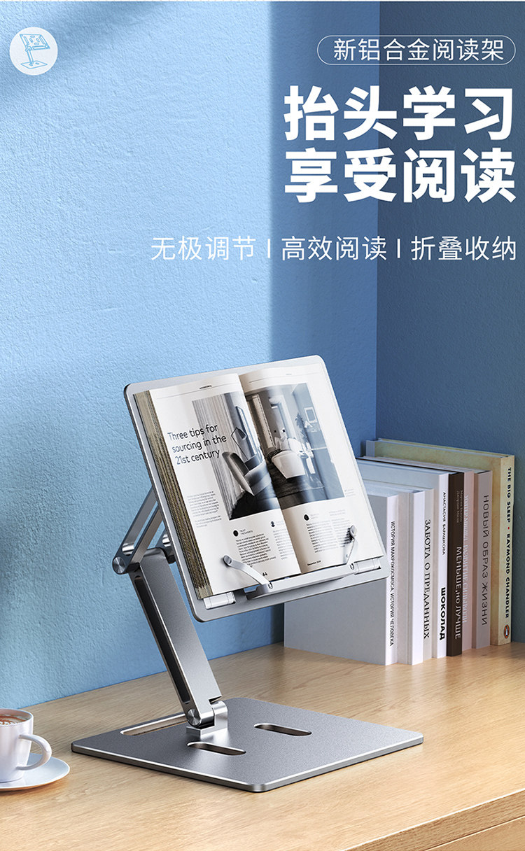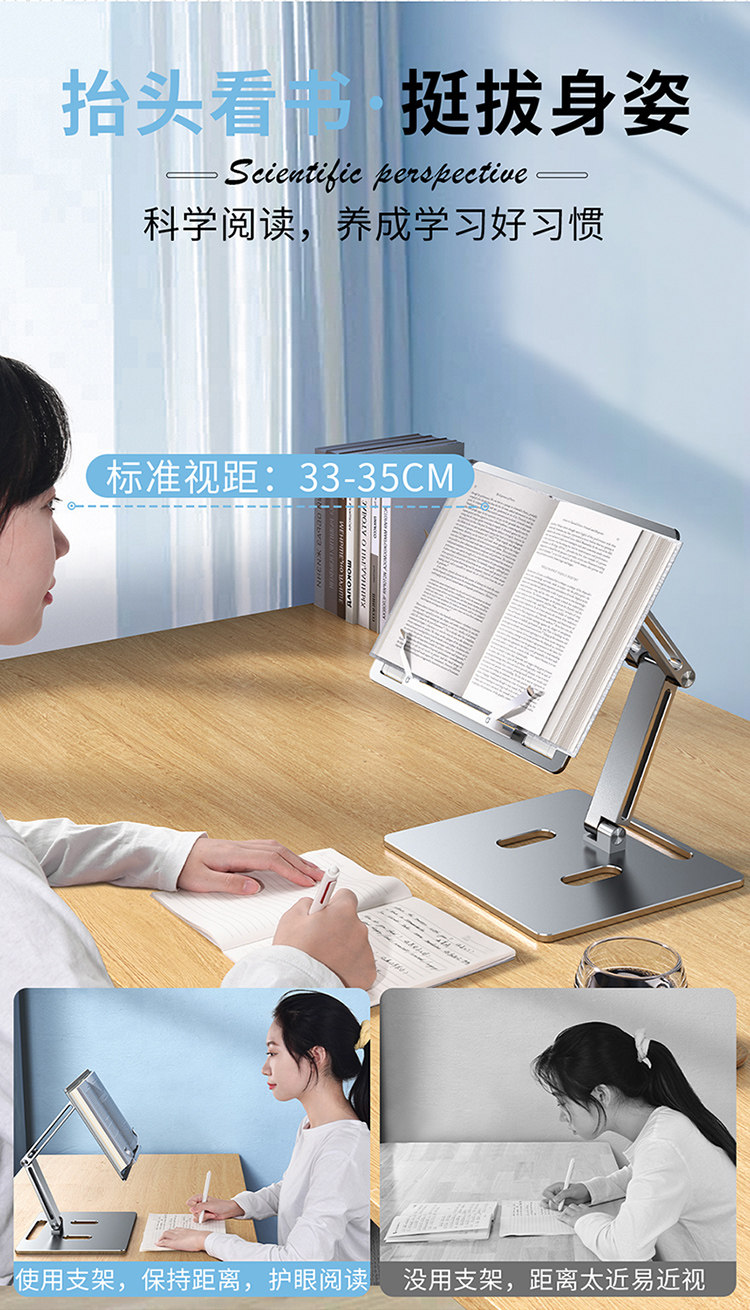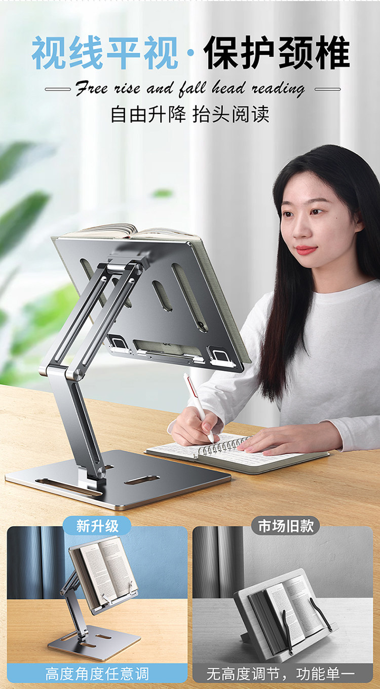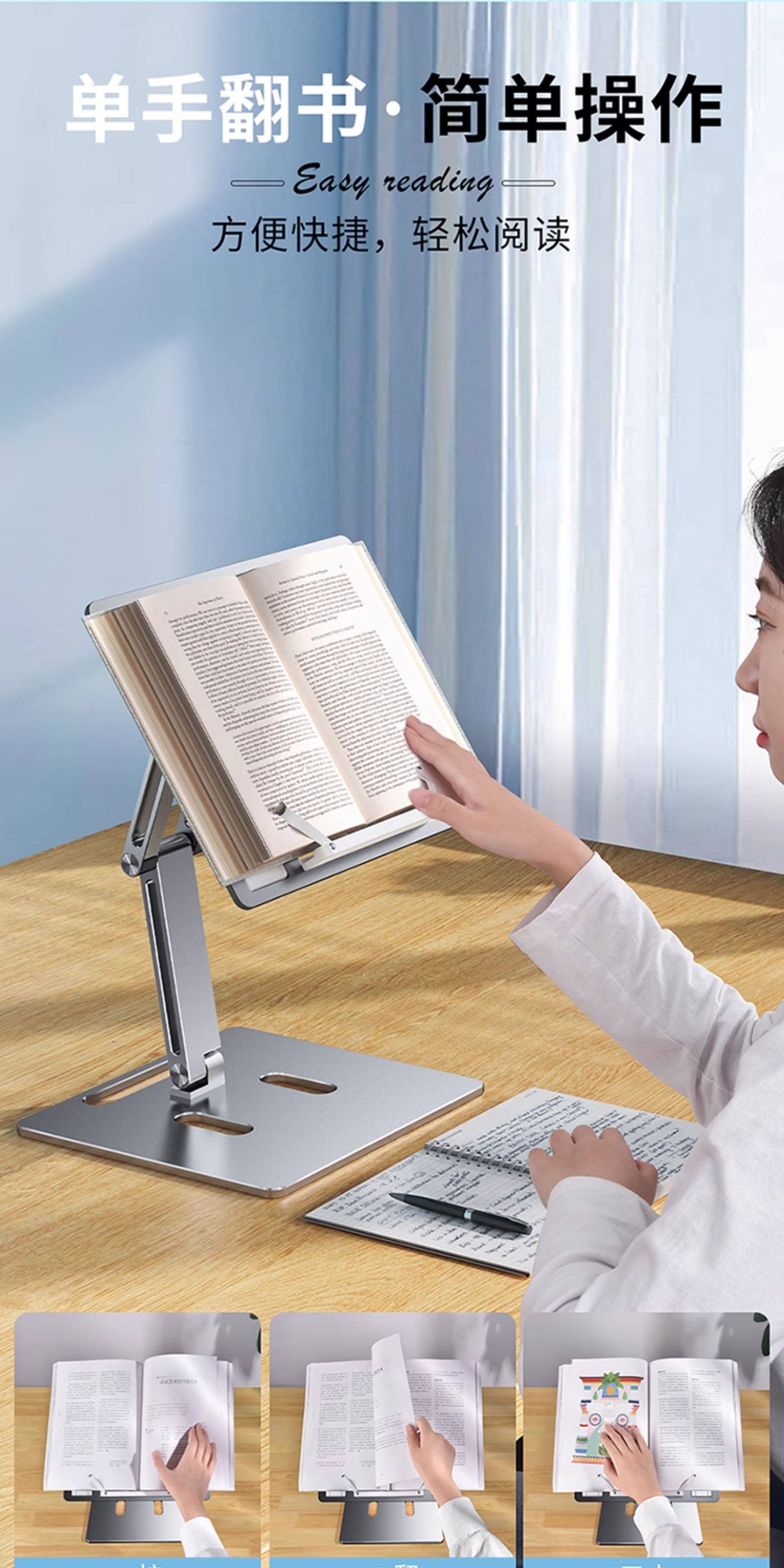 Aluminum Alloy Reading Stand for Adults, Bed Reading Stand, Adjustable and Foldable Desktop Children's Reading Stand, Student Book Stand