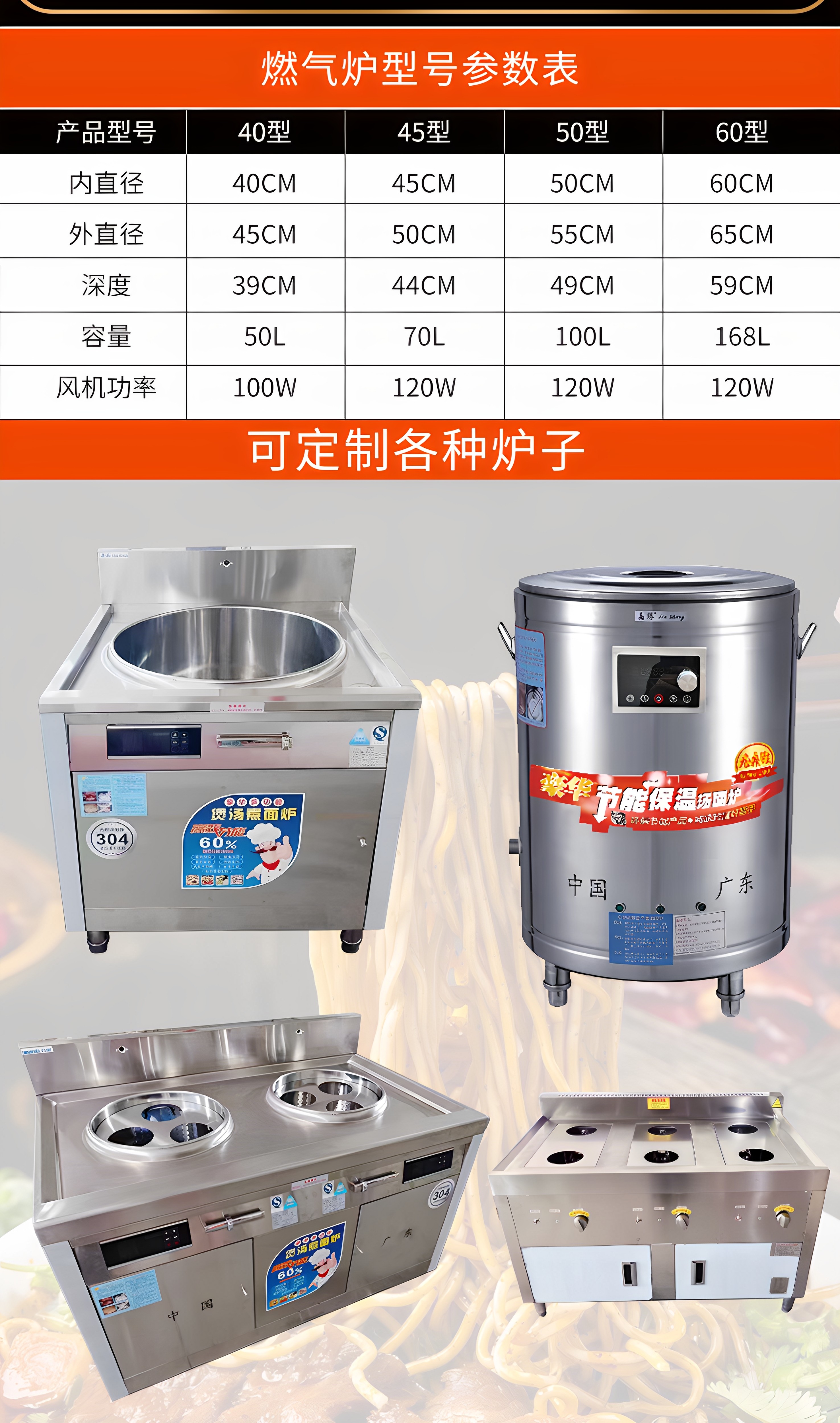 | Color Classification | Liquefied Gas 40#50L Flat Bottom + Fan Noodle Cooker,Liquefied Gas 45#70L Flat Bottom + Fan Noodle Cooker,Liquefied Gas 50#100L Flat Bottom + Fan Noodle Cooker,Liquefied Gas 60#168L Flat Bottom + Fan Noodle Cooker,Liquefied Gas 40 # 50L Round Tube + Fan Noodle Cooker,Liquefied Gas 45#70L Round Tube + Fan Noodle Cooker,Liquefied Gas 50#100L Round Tube + Fan Noodle Cooker,Liquefied Gas 60#168L Round Tube + Fan Noodle Cooker,Liquefied Gas 40#50L Square Tube + Fan Noodle Cooker,Liquefied Gas 45#70L Square Tube + Fan Noodle Cooker,Liquefied Gas 50#100L Square Tube + Fan Noodle Cooker,Liquefied Gas 60#168L Square Tube + Fan Noodle Cooker,Natural Gas 40#50L Flat Bottom + Fan Noodle Cooker,Natural Gas 45#70L Flat Bottom + Fan Noodle Cooker,Natural Gas 50#100L Flat Bottom + Fan Noodle Cooker,Natural Gas 60#168L Flat Bottom + Fan Noodle Cooker,Natural Gas 40#50L Round Tube + Fan Noodle Cooker,Natural Gas 45#70L Round Tube + Fan Noodle Cooker,Natural Gas 50#100L Round Tube + Fan Noodle Cooker,Natural Gas 60#168L Round Tube + Fan Noodle Cooker,Natural Gas 40#50L Square Tube + Fan Noodle Cooker,Natural Gas 45#70L Square Tube + Fan Noodle Cooker,Natural Gas 50#100L Square Tube + Fan Noodle Cooker,Natural Gas 60#168L Square Tube + Fan Noodle Cooker,Electric Heating Model 40#50L Flat Bottom Noodle Cooker,Electric Heating Model 45#70L Flat Bottom Noodle Cooker,Electric Heating Model 50#100L Flat Bottom Noodle Cooker,Electric Heating Model 60#168L Flat Bottom Soup Stove,Electric Smart Soup Stove Type 40 50L220-380-6Kw,Electric Smart Soup Stove Type 45 70L220-380-9Kw,Electric Smart Soup Stove 50 Type 100L220-380-9Kw,Electric Smart Soup Stove Type 60 168L220-380-9Kw,40 Electric Heating Tube,45 Electric Heating Tube,50 Electric Heating Tube,60 Electric Heating Tube |