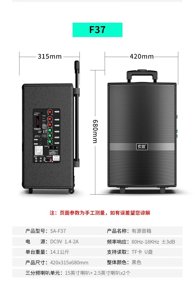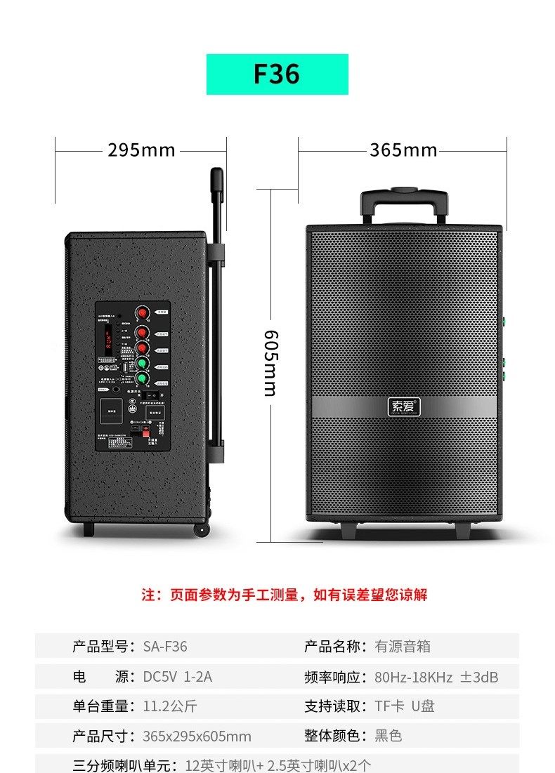| Color Classification | 300 Watts 10inch with Sound Card + Three-Way Sound Effect + Single Wireless Microphone,300 Watts 10inch with Sound Card + Three-Way Sound Effect + Dual Wireless Microphones,300 Watts 10inch with Sound Card + Three-Way Sound Effect + Single Wireless Headset,300 Watts 10inch with Sound Card + Three-Way Sound Effect + No Microphone,14inch Three-Speaker Wooden Speaker [Cannot Adjust High and Low Frequencies],14inch Three-Speaker Wooden Speaker [Cannot Adjust High and Low Tones] + Single Wireless Microphone,14inch Three-Speaker Wooden Speaker [Cannot Adjust High and Low Tones] + Dual Wireless Microphones,400 Watts 17inch Three-Way Speaker [Adjustable Treble and Bass],400-Watt 17inch Three-Way Speaker [Adjustable Treble and Bass] + 16g USB Flash Drive [Comes with Songs],400-Watt 17inch Three-Way Speaker [Adjustable Treble and Bass] + Single Wireless Microphone,400-Watt 17inch Three-Way Speaker [Adjustable Treble and Bass] + Single Wireless Microphone + 16g USB Flash Drive [Comes with Songs],400-Watt 17inch Three-Way Speaker [Adjustable Treble and Bass] + Dual Wireless Microphones,400-Watt 17inch Three-Way Speaker [Adjustable Treble and Bass] + Dual Wireless Microphones + 16g USB Flash Drive [Comes with Songs],600-Watt 20-Inch 3-Way Speaker [Adjustable Treble and Bass],600-Watt 20-Inch 3-Way Speaker [Adjustable Treble and Bass] + Single Wireless Microphone,600W 20-Inch 3-Way Speaker [Adjustable Treble and Bass] + Single Wireless Microphone + 16g USB Flash Drive [Comes with Songs],600-Watt 20-Inch 3-Way Speaker [Adjustable Treble and Bass] + Dual Wireless Microphones,600W 20-Inch 3-Way Speaker [Adjustable Treble and Bass] + Dual Wireless Microphones + 16g USB Flash Drive [Comes with Songs],Classic Rolling Speaker with Adjustable Bass and Treble,[2Nd Generation] 300 Watts 10inch Wooden Speaker with Sound Card + Single Wireless Microphone,[2Nd Generation] 300 Watts 10inch Wooden Speaker with Sound Card + Dual Wireless Microphones,[2Nd Generation] 300 Watt 10inch Wooden Speaker with Sound Card - No Microphone,[2Nd Generation] 14-Inch 3-Speaker Wooden Speaker [Cannot Adjust High and Low Frequencies],[2Nd Generation] 14-Inch 3-Speaker Wooden Speaker [Cannot Adjust High and Low Frequencies] + Single Wireless Microphone,[2Nd Generation] 14-Inch 3-Speaker Wooden Speaker [Cannot Adjust High and Low Frequencies] + Dual Wireless Microphones,[2Nd Generation] 400-Watt 17inch Three-Way Speaker [Adjustable Treble and Bass],[2Nd Generation] 400-Watt 17inch Three-Way Speaker [Adjustable Treble and Bass] + 16g USB Flash Drive (with Songs),[2Nd Generation] 400-Watt 17inch Three-Way Speaker [Adjustable Treble and Bass] + Single Wireless Microphone,[2Nd Generation] 400-Watt 17inch Three-Way Speaker [Adjustable Treble and Bass] + Single Wireless Microphone + 16g USB Flash Drive (with Songs),[2Nd Generation] 400-Watt 17inch Three-Way Speaker [Adjustable Treble and Bass] + Dual Wireless Microphones,[2Nd Generation] 400-Watt 17inch Three-Way Speaker [Adjustable Treble and Bass] + Dual Wireless Microphones + 16g USB Flash Drive (with Songs),[2Nd Generation] 600-Watt 20-Inch 3-Way Speaker [Adjustable Treble and Bass],[2Nd Generation] 600-Watt 20-Inch 3-Way Speaker [Adjustable Treble and Bass] + 16g USB Flash Drive,【2Nd Generation】600W 20-Inch 3-Way Speaker System [Adjustable Treble & Bass] + Single Wireless Microphone,[2Nd Generation] 600-Watt 20-Inch 3-Way Speaker [Adjustable Treble and Bass] + Single Wireless Microphone + 16g USB Flash Drive,[2Nd Generation] 600-Watt 20-Inch 3-Way Speaker [Adjustable Treble and Bass] + Dual Wireless Microphones,【2Nd Generation】600W 20-Inch 3-Way Speaker System [Adjustable High & Low Frequencies] + Dual Wireless Microphones + 16Gb USB Drive,Classic Rolling Speaker with Pull Rod - Adjustable Bass and Treble,Classic Rolling Speaker with Pull Rod |